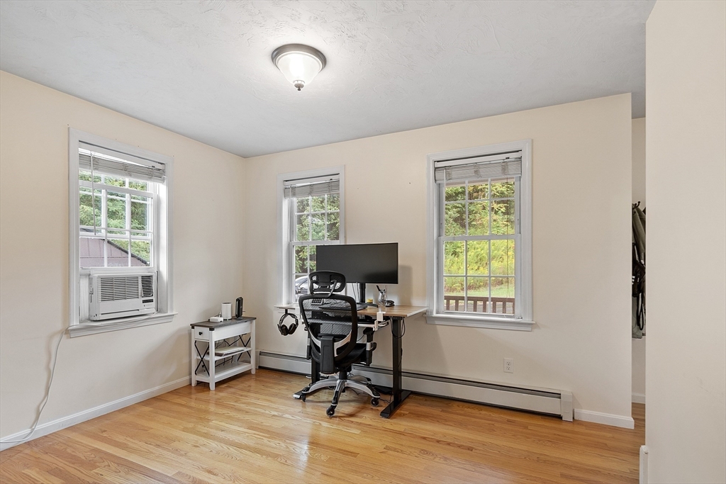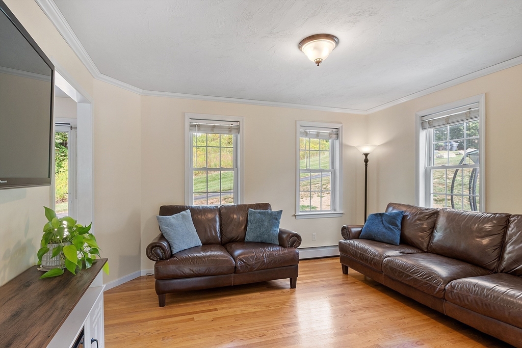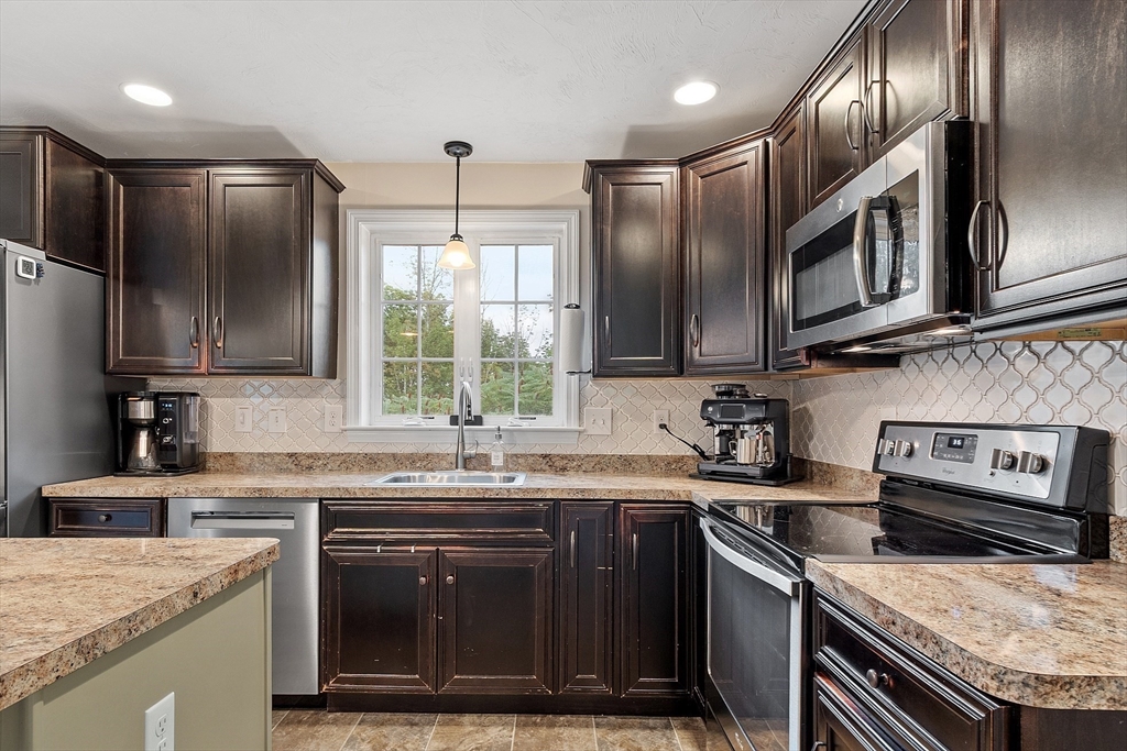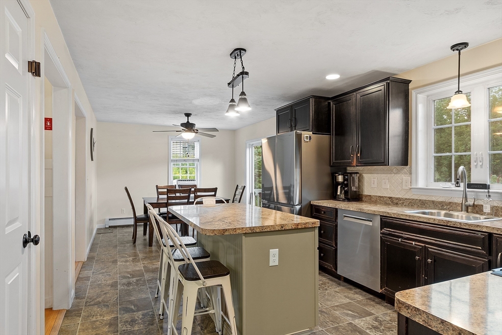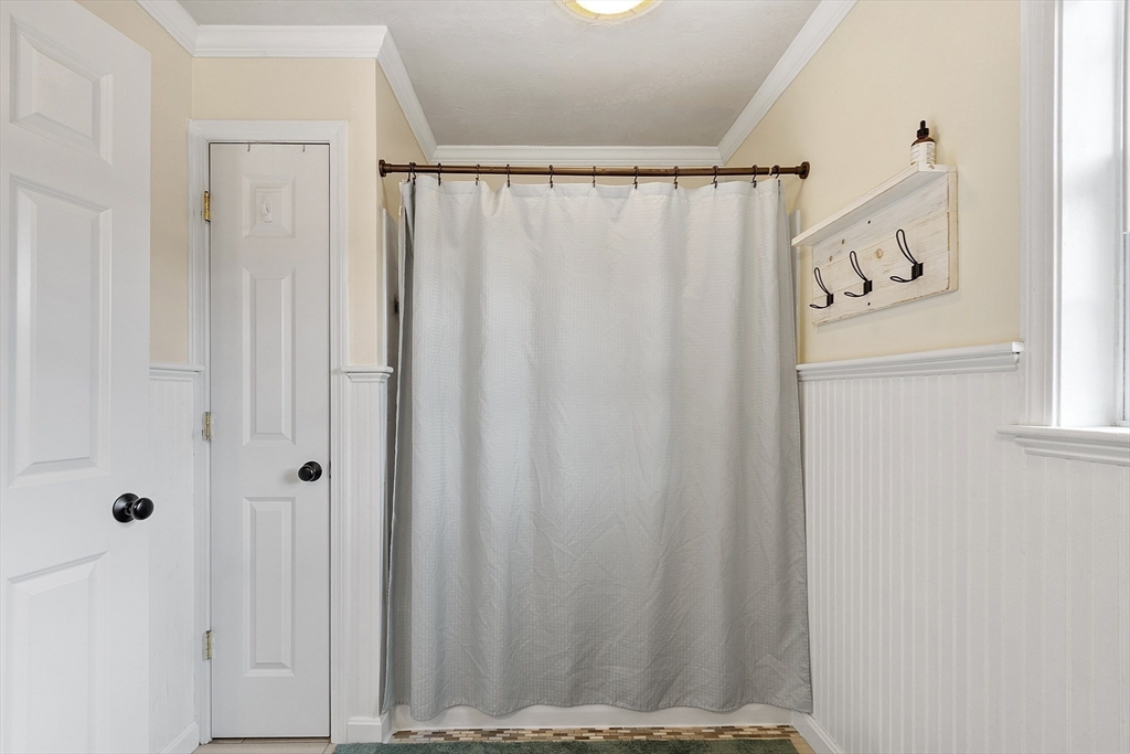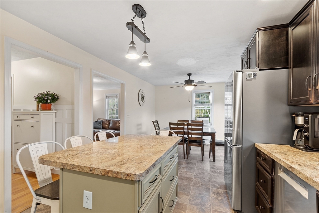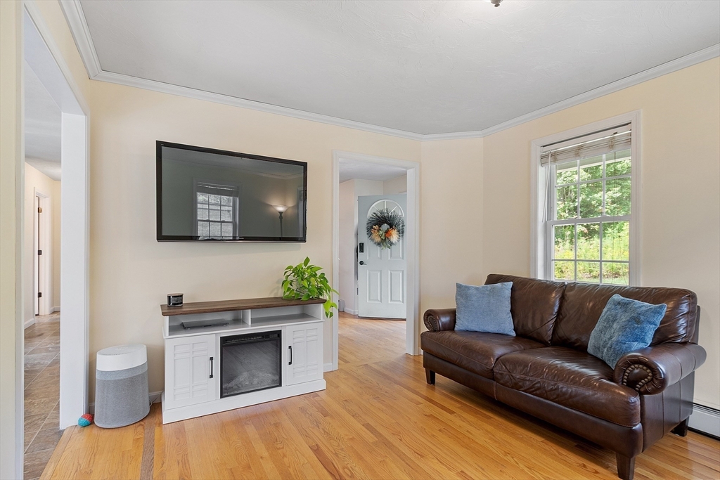 Welcome to this beautiful Federal Front Colonial, privately set back on a quiet, wooded lot in desirable neighborhood. This home offers the perfect blend of charm and function. A long paved driveway leads to a welcoming farmer’s porch and bright, sun-filled interior. The entryway, accented with wainscoting, opens to a spacious eat-in kitchen featuring a beadboard island, new stainless steel appliances, tile backsplash, crown molding, and gleaming hardwood floors. The first floor includes a versatile bonus room with closet—ideal for an office or playroom—plus a granite-appointed half bath with laundry. Upstairs, the oversized primary bedroom offers both a walk-in and second closet, along with two additional bedrooms and a full bath. The walk-out basement, framed with plumbing rough-in and full-size windows, provides excellent potential for expansion. A beautiful home in a peaceful setting, ready to welcome its new owners.