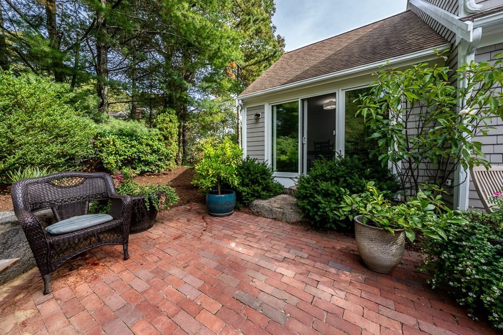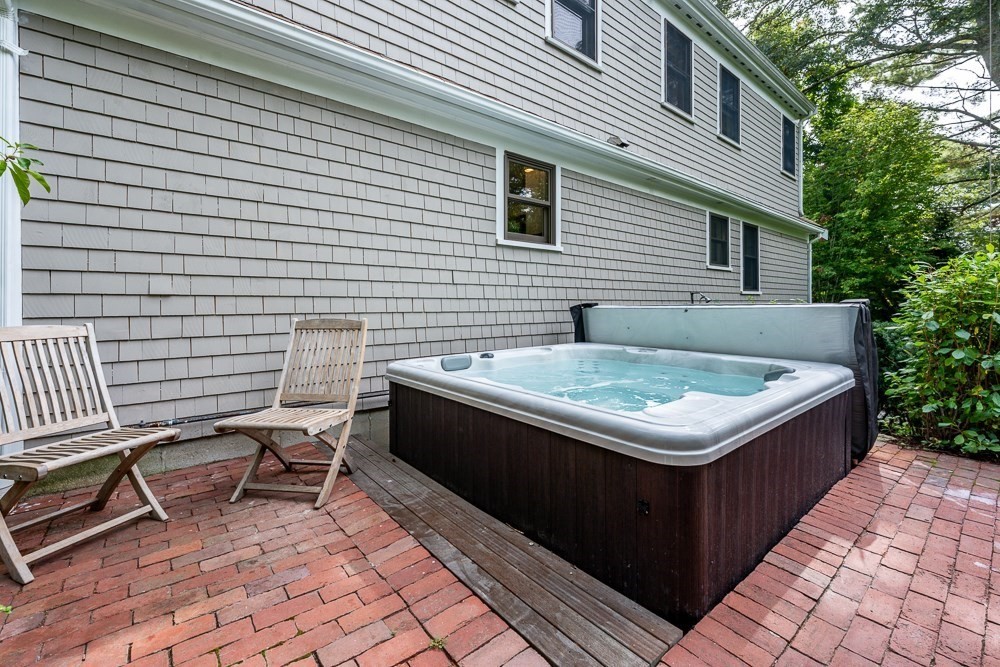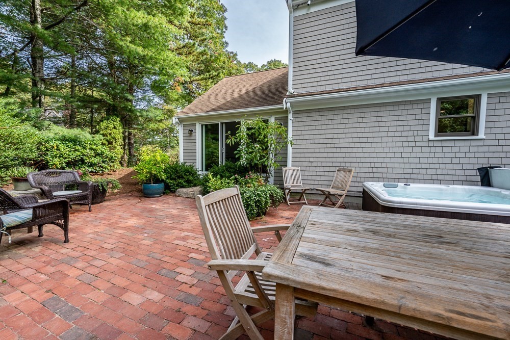 Spacious light filled Cape with expanded upper level suite and new custom kitchen. Perfectly perched on private oasis in the center of Osterville Heights with easy access to south side beaches and Osterville Village. Timeless historic granite hardscape with mature trees and gardens frame the ideal patio setting to unwind and relax with hot tub and outdoor shower. Flexible layout with vaulted ceiling in main floor living with 2 bedrooms and 2 baths. Walk out lower level entertainment space, guest room/den with natural light. Tankless high efficient boiler for heat and hot water. Rarely does a turn key home of this caliber come on the market in this price and location.