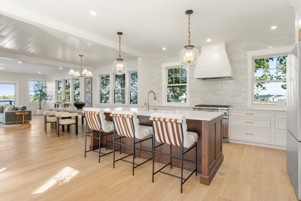 Discover coastal luxury at its finest in this new construction home at 81 Kimball Beach Road! The heart of the home is a show-stopping kitchen featuring custom inset cabinetry, Thermador appliances, quartz countertops and a walk-in pantry. The kitchen flows into a spacious dining / living area with a gas fireplace, bar area and access to an ample deck and yard. A private study, stylish powder room, custom mudroom, and attached 2-car garage complete the first floor. Upstairs offers 4 bedrooms, a laundry room and a serene primary suite with walk-in closet, spa-like bath with soaking tub and private deck. The 3rd floor features a large bonus room and expansive rooftop deck with panoramic harbor and Boston skyline views. Finished lower level includes media room and additional bedroom. On a desirable corner lot steps to the exclusive Kimball Beach Community Club and the pier where you can enjoy swimming/boating/kayaking. Experience one of Hingham’s most sought-after waterfront enclaves!