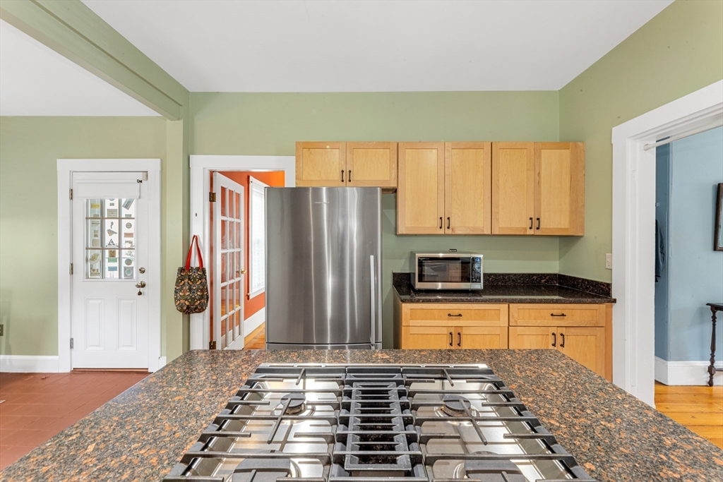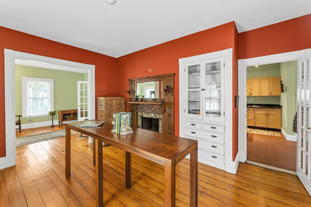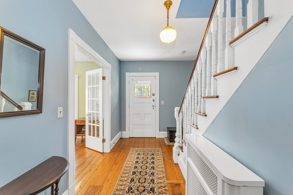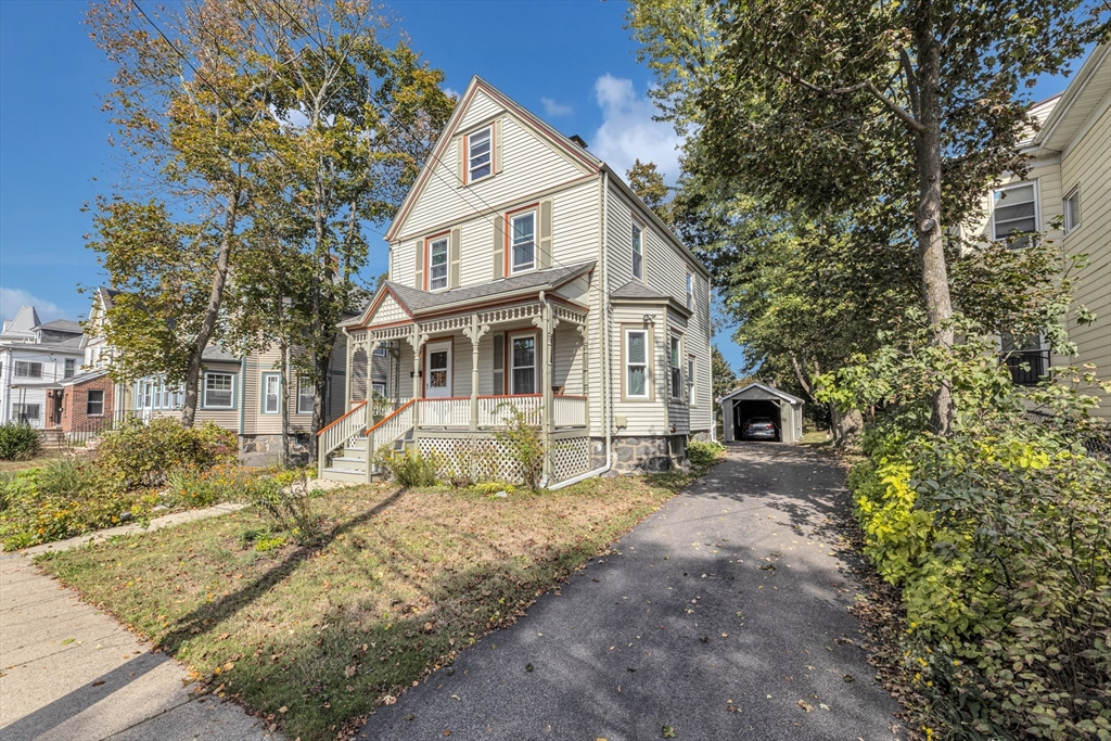 Welcome to this Circa 1895 Victorian with all it's original charm and historic features. A gracious Foyer invites you to this turn of the century home. Where all the rooms are graced with high ceilings and gleaming wide natural wood flooring. French doors lead from room to room generating space and charm. The formal dining room has built in china cabinet and a beautiful intricately deigned tile fireplace built by an artist. Although the windows are new; the original size stye and molding remain in tact. The Great surprise is the modern renovated kitchen with custom cabinets, stainless steel appliances, an island with built in countertop range and oven adjacent to a cozy dining area for cooking and conversation. The second floor has 3 bedrooms and a modern tiled bath. Looking for more space? The walk up attic is the spot for future potential. The yard is large and inviting for outdoor fun or gardening. Garage and long driveway a plus for city dwellers.