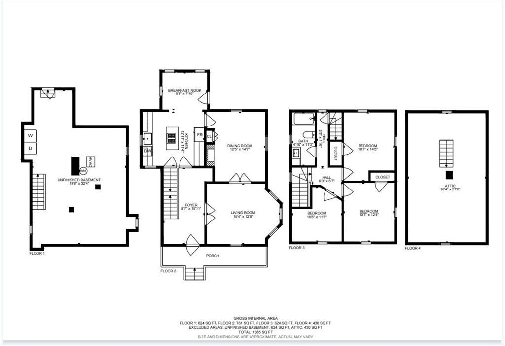 建筑面积1,385 平方英尺 (约 129 平方米)