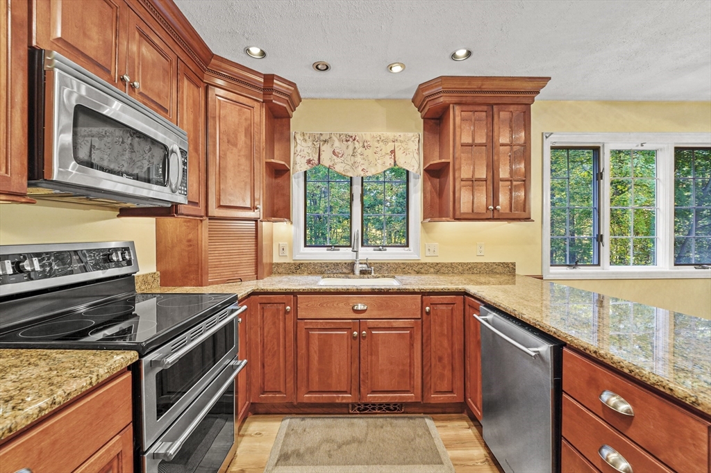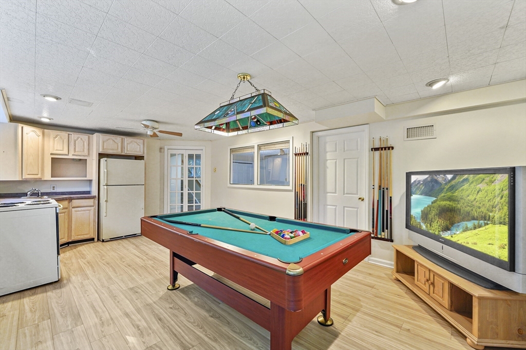 This property offers the perfect blend of comfort & versatility. Enter inside to a welcoming living room featuring a cozy fireplace & bay window that fills the space w/ natural light. The cabinet-packed kitchen boasts SS appliances, ample countertop space & dining area, while a formal dining room & a family room w/ an addit'l fireplace provide plenty of space for gatherings. A first-floor laundry room & 1/2 bath complete the main level. The lower level provides more space w/ 2 bonus rooms, a kitchenette, & ¾ bath. Upstairs, discover a truly unique primary suite consisting of 2 adjoining rooms: one with a private bath & walk-in closet & the other featuring built-in cabinets, skylights & a glass door leading to a private balcony. This flexible layout is ideal for creating a sitting room, home office, or personal retreat. Three addit'l bedrooms & full bath round out the 2nd floor. Outside, enjoy the tree-lined backyard w/ an in-ground pool, irrigation system & 2 storage sheds.