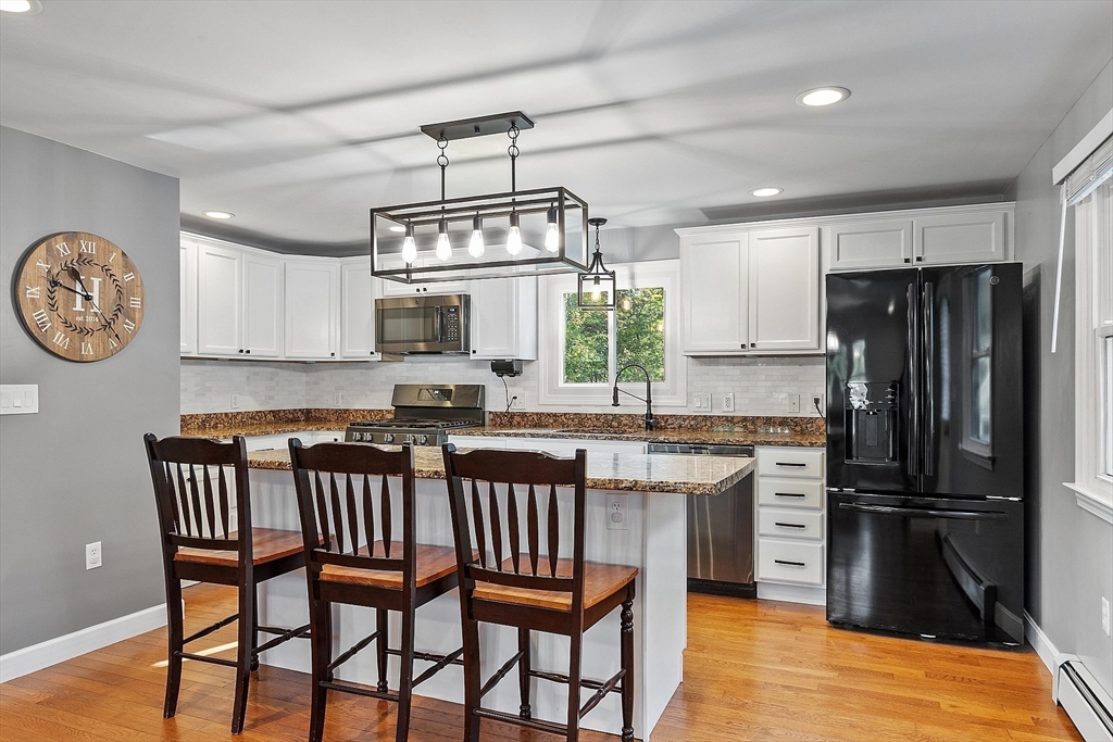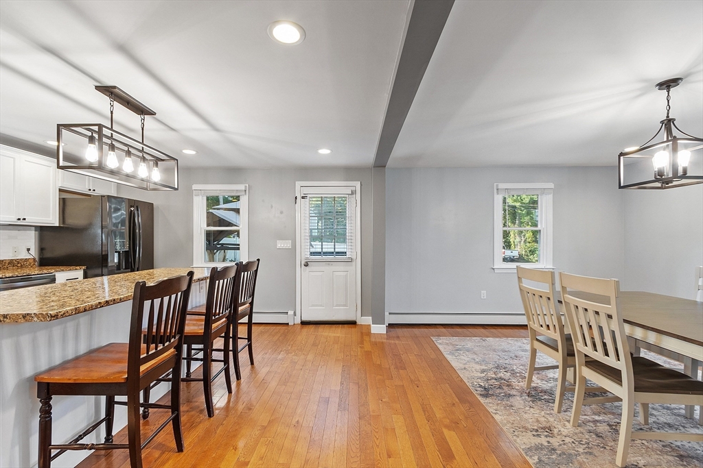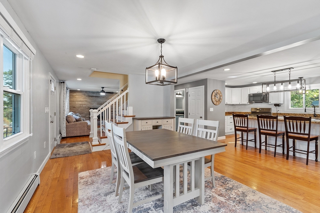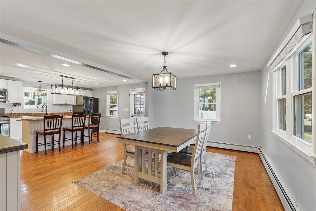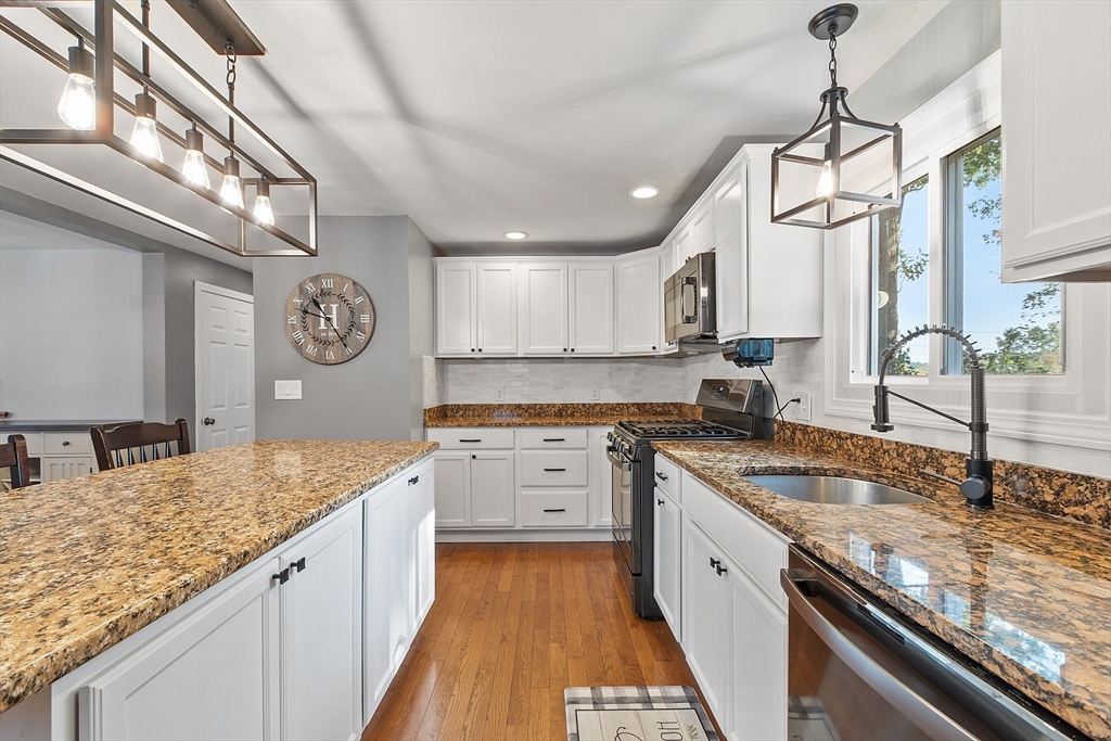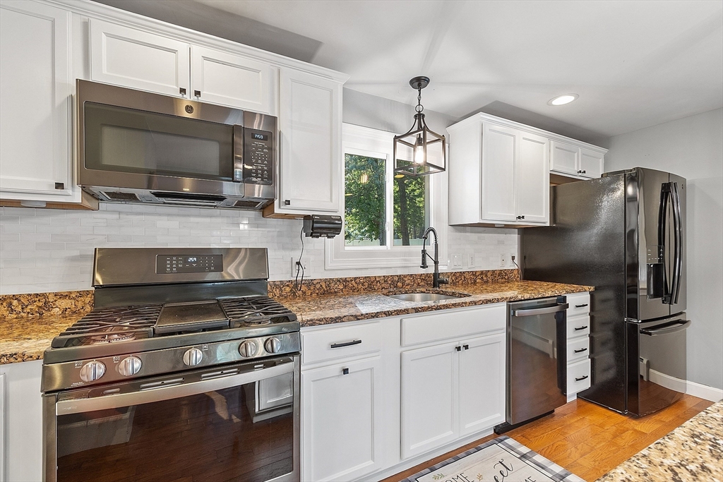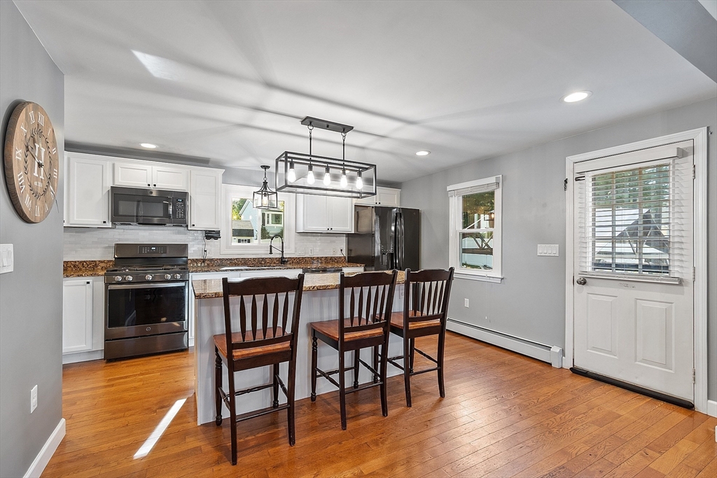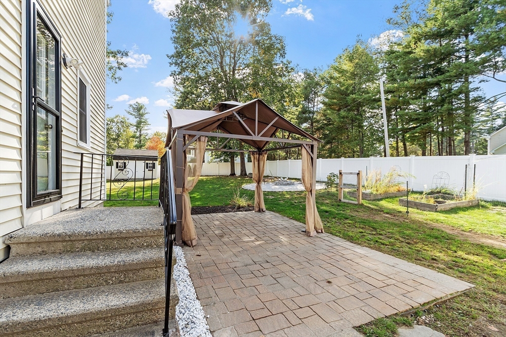 Charming Cape style home with 3bed, 2bath, and a full dormer in rear. Two very large bedrooms and a full bathroom on the second floor. One of the second floor bedrooms has 2 full size closets. The kitchen has granite countertops, under cabinet lighting and an island that is great for entertaining guests. Hardwood floors on the 1st floor. Get cozy and snuggle up by the gas fireplace in the living room that is temp controlled by remote. Sit, relax, and enjoy the patio, under the gazebo, or by the firepit. The fully fenced in yard gives you great privacy. Windows professionally installed in 2022 and have a transferable Lifetime Warranty. Furnace installed 2011, Water heater 2017, Roof 2014. Home is .6 miles (approx.) to Lake Samoset and per association, membership to Lake Samoset may be purchased for use of the beach.