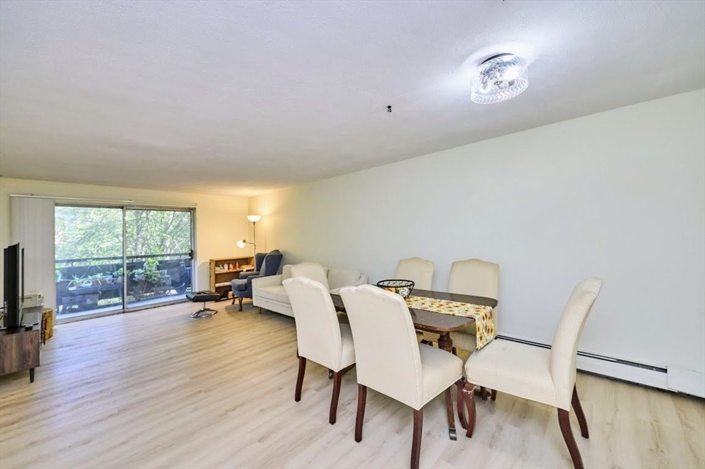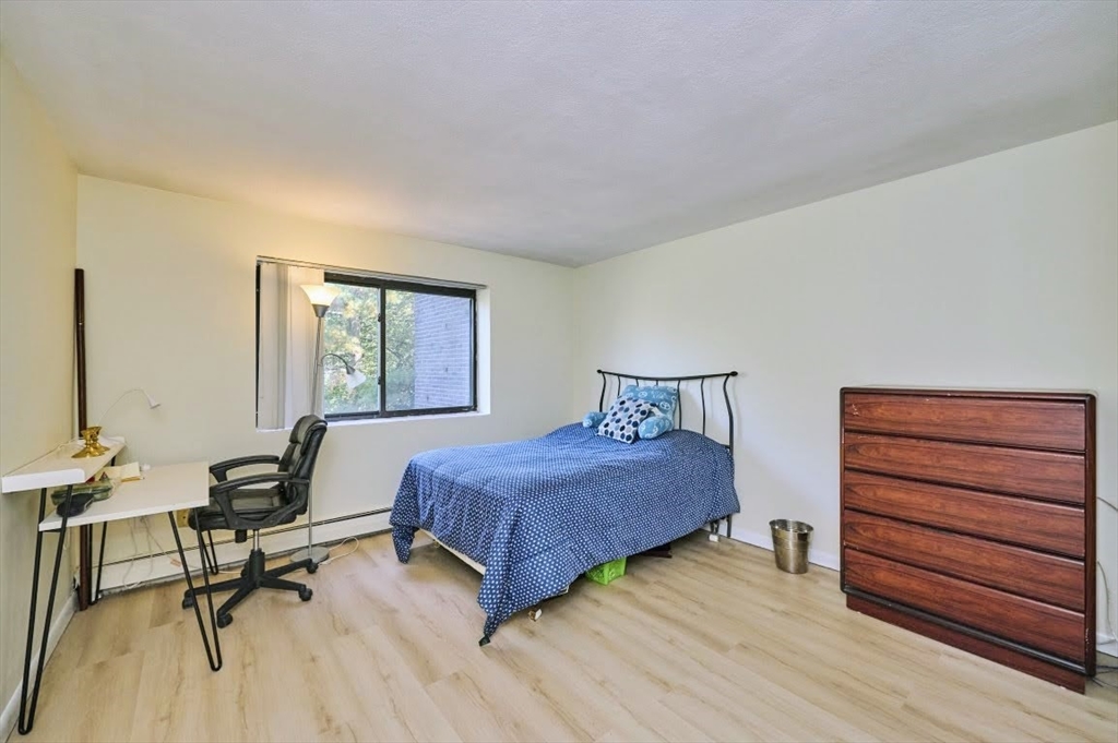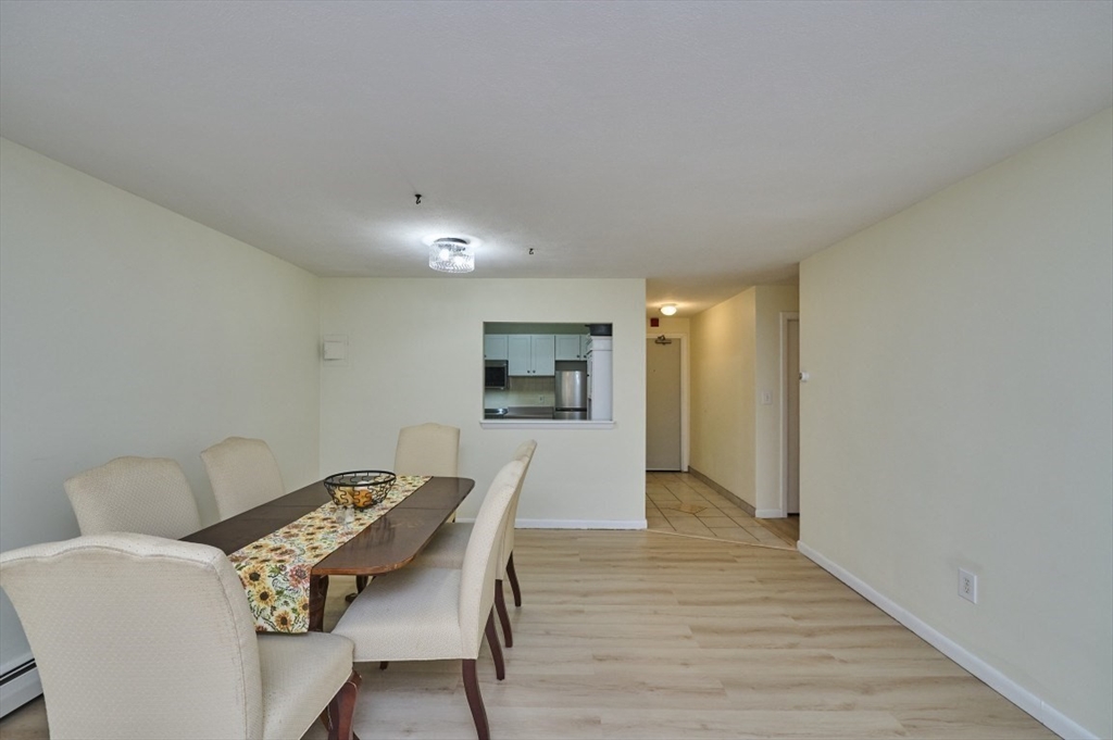 Step into this meticulously maintained, move-in-ready condo where modern living meets incredible convenience. Freshly painted and boasting new luxury vinyl plank flooring throughout, this home offers a crisp, clean feel from the moment you arrive. The kitchen has been upgraded with white shaker cabinets and new stainless steel appliances, featuring a convenient pass-through that opens to the dining area, perfect for entertaining. The primary bedroom is a true retreat with a large walk-in closet and a private en-suite bathroom. From your private balcony, enjoy serene, tree-lined views of the walking path—a peaceful escape right at your doorstep. The pet-friendly building allows a dog under 25 lbs and offers a great range of building amenities including a fitness room, game room, on-site laundry room, elevator, bicycle storage, and extra storage in the basement. Located just minutes from Watertown Square, the Downtown Express Bus, and the Mass Pike. Call for you private showing today!