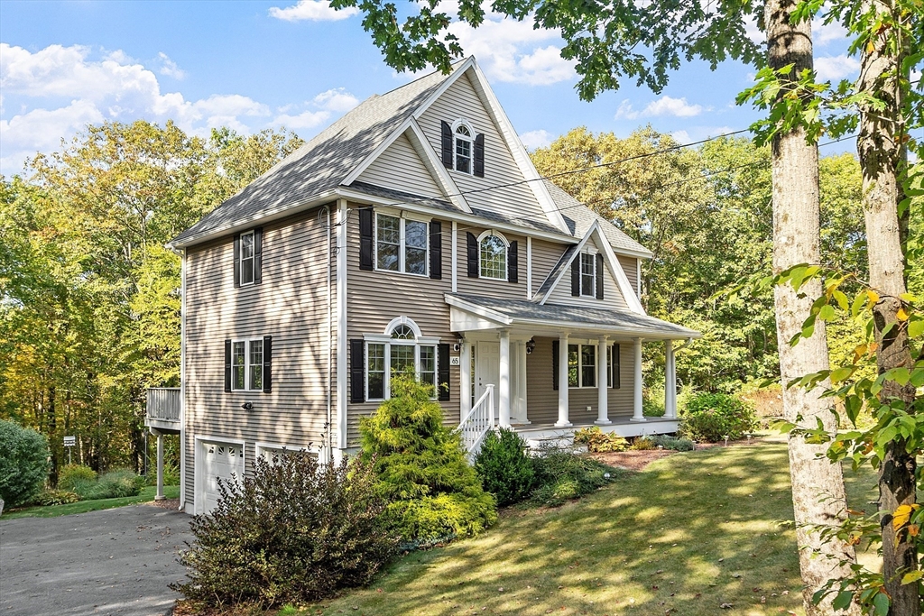 MOVE IN READY! This home has been meticulously maintained by the original owners since built in 2014, which is a great combination for buyers–just over 10 years old, thoughtful attention to detail went in to the design, AND it’s been gently lived in by one owner. Hardwood and tile flooring throughout the main level and common areas, granite countertops and neutral finishes. The walk up attic is prepped for expansion as a private office, playroom or hangout space. The walkout basement is set up as a workshop or can be future-finished space, leading out to a 2025 deck. Viessmann high-efficiency propane heating system (2023). The outdoor space includes a full-width farmers porch, 2 decks, large storage shed, established plantings and raised gardens, a fire pit, and there’s even a covered sandbox! Explore your 3 1/2 acres and private back yard that extends into the woods. Bonus—the right property line of 65 Davis Road is directly adjacent to 400 acres of watershed conservation land!