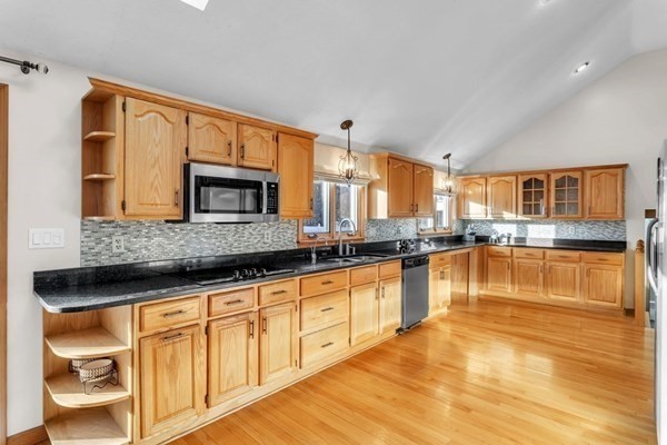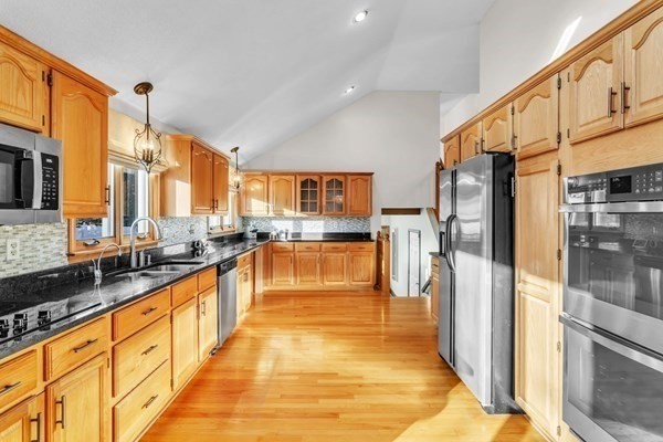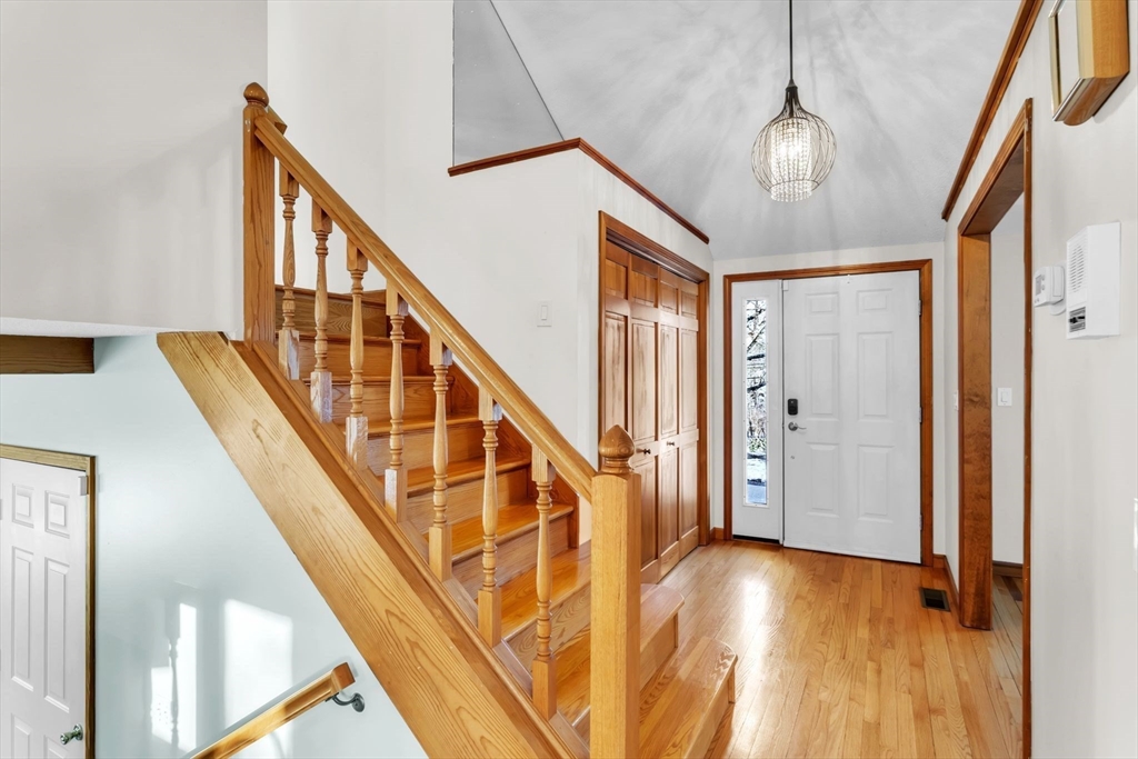 This is a beauty! Set off the road, with a beautifully laid out private yard, fenced in back area, that includes a heated deep inground pool, and patio off of the dining area, just perfect for entertaining. Step inside to the formal foyer and be greeted by an open, high ceiling layout with a large light filled living room and a fireplace that wows. The dining area and kitchen is large and spacious, with access to the patio, pool, and backyard. Tons of counter space and cabinets, most of the kitchen appliances are new ('24). Off of the kitchen is a tv room that could be an office, a bath/laundry room, and access to the driveway and a large 2 car garage. Basement is finished with an office area, pool table to stay. Upstairs is the spacious primary bedroom w/ balcony overlooking backyard and ensuite bath. Down the hall are the other three bedrooms and another full bathroom. This place was built to entertain and make memories in. Come and see it for yourself and make this house YOUR HOME!