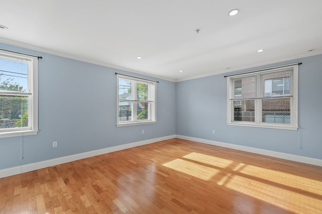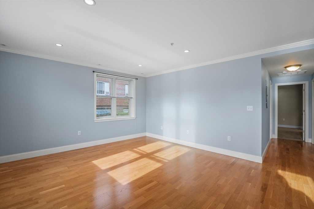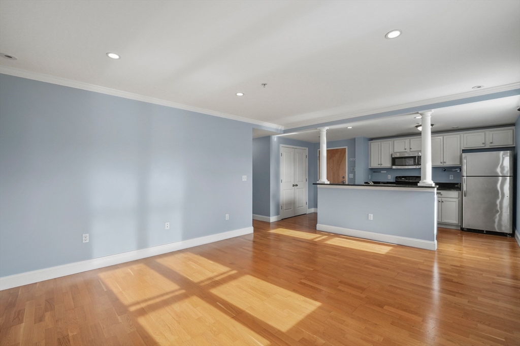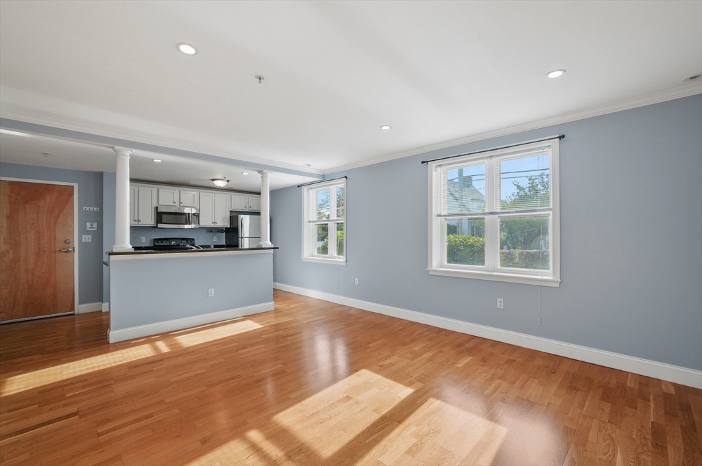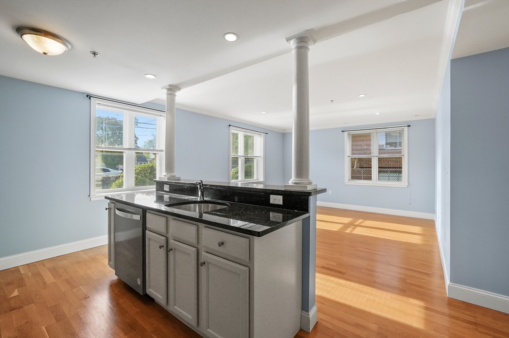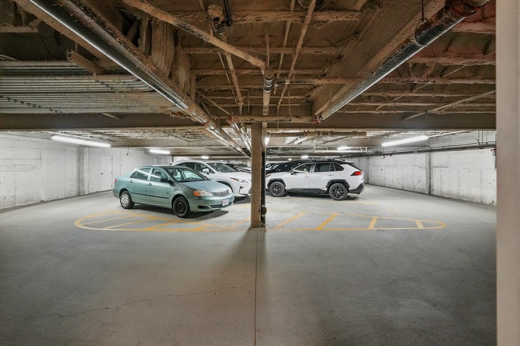 Corner unit condo in a convenient Braintree location, offering 2 bedrooms and 1 full bath with a bright, open layout. The living room features wood laminate floors, recessed lighting, and exterior access, while the kitchen boasts granite counters, stainless steel appliances, an electric stove, and a breakfast bar. The spacious main bedroom includes a walk-in closet, with a second bedroom perfect for guests or an office. The full bath has a tub/shower and in-unit laundry, updated with a new laundry center in January 2025. The dishwasher was replaced in 2022 for peace of mind. Parking is easy with a heated garage space (#14) and a second spot available in the outside lot—no sticker required. Association fee covers water, sewer, master insurance, exterior maintenance, snow removal, and more. Enjoy central air, extra storage, and an elevator in a well-maintained building close to highways, schools, and shops.