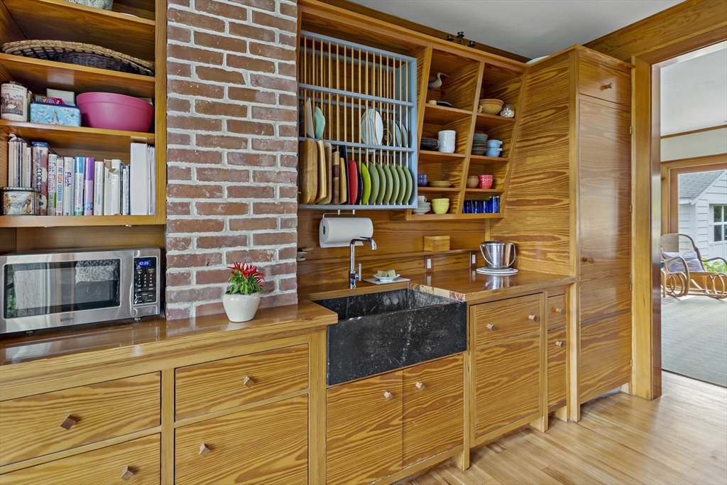The MARSDEN is an Arts & Crafts bungalow from 1920 from The Aladdin Company of Bay City, Michigan, a manufacturer of architecturally designed houses from the early 20th century & has now been recognized as a significant architectural period. The main floor has an open & airy plan, a newly designed kitchen, dining area which opens onto a large wood deck through french doors & living area which extends across the entire front facade opening onto a covered porch. The building is comprised of finely detailed antique southern yellow pine floors, cabinetry, colonnade & architectural millwork on the interior & exterior architectural embellishments & bracketry, broad overhangs and beadboard porch ceiling & soffets. The one-car detached garage opens towards the street and backyard. Professional landscaping provides a great sense of beauty, color, peace, privact and serenity. Buyer to verify all information.