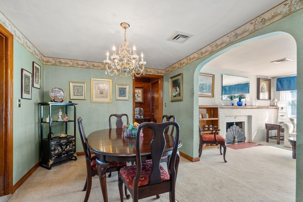 Welcome to 13 Sheffield Road where you will find a gracious expanded ranch on a quiet side-walked Wethersfield neighborhood street. This home features 3 bedrooms and 1.5 bathrooms in a comfortable 1708 sf home. Once entering the front vestibule, the sunny living room with fireplace and mantle await. The working kitchen features double sinks and eat-in options with a half wall that transitions to a spacious, chandelier-lit dining room. This flows smoothly to a sizable and warm family room with additional fireplace, windows galore and storage closets. A unique split door leads to the screened patio room, ideal for summer living, leading to the lovely back yard with its mature landscaping and natural privacy. The converted garage serves nicely as a newer office space with its own entry and picture window. Bring your ideas for updates but ideal for down sizers and first-timers alike. Close to groceries, shopping, restaurants and all amenities. Commuter easy access to Pike, 9 & T stations.