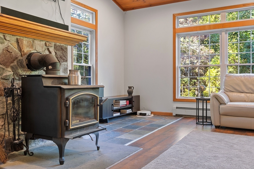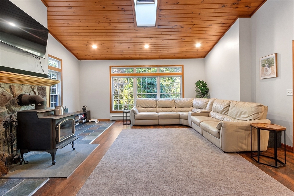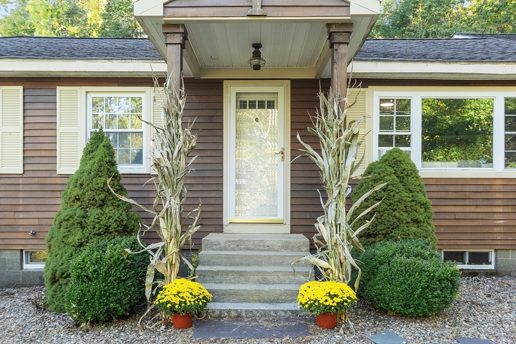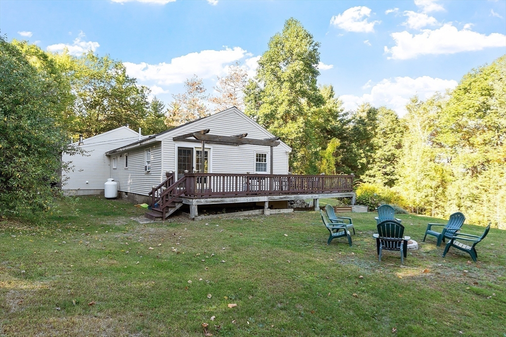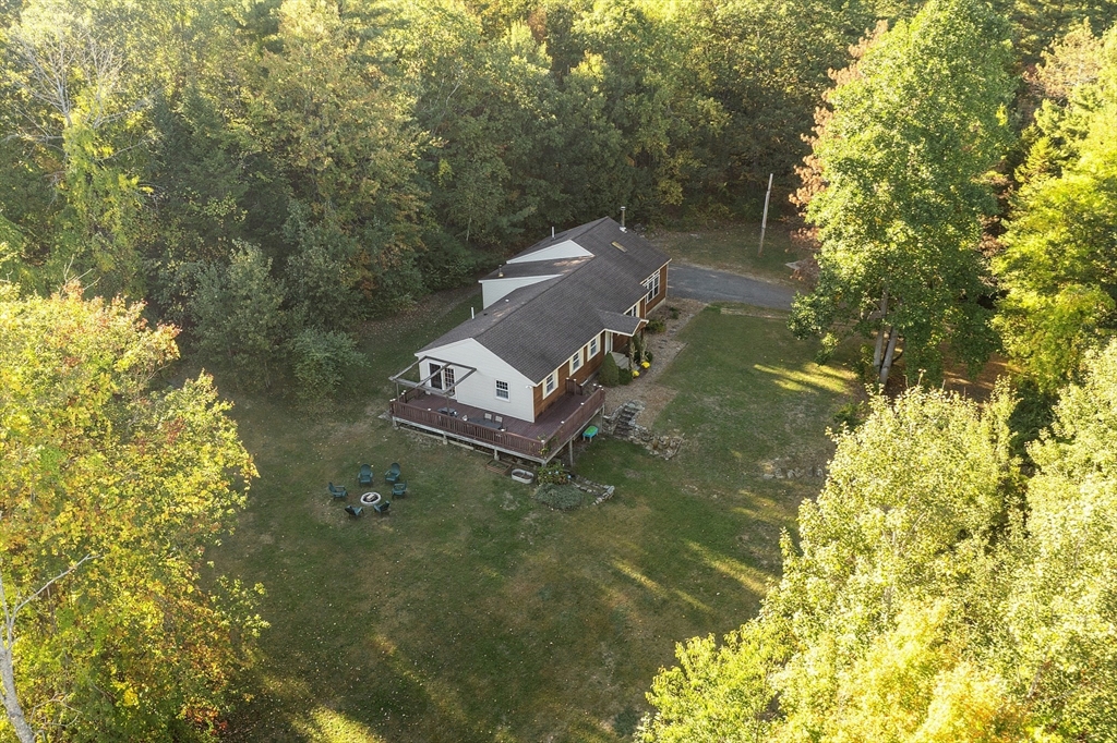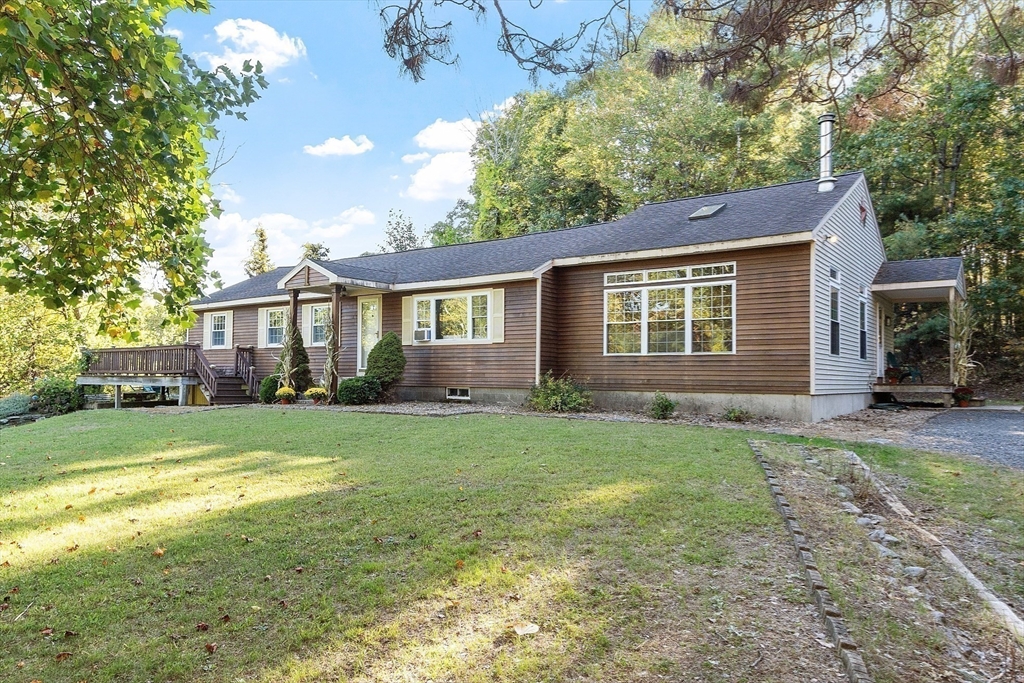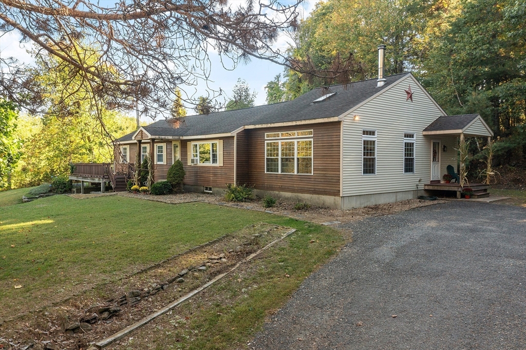This charming two-bedroom, two-bathroom ranch style home sits on approximately 1.5 acres of private land. The home features a welcoming living room addition with skylight windows filling the room with natural light and a wood burning stove, creating a warm and inviting atmosphere. The updated kitchen boasts modern appliances and finishes, ensuring convenience and functionality with plenty of counter space and barstools. Two good size bedrooms with an abundance of natural lighting are right down the hall and a bonus room provides additional flexibility, enabling you to tailor the space to your preferred use for an office, nursery, playroom, or mudroom. Two FULL baths make this home convenient for everyone. First floor laundry. The private lot offers a serene setting, providing a tranquil retreat with a partial wrap around porch to relax on with coffee in the morning or BBQ with friends and family. A cozy fire pit for summer/cool evenings just adds to the charm of this home. OH 10/5 12-2
