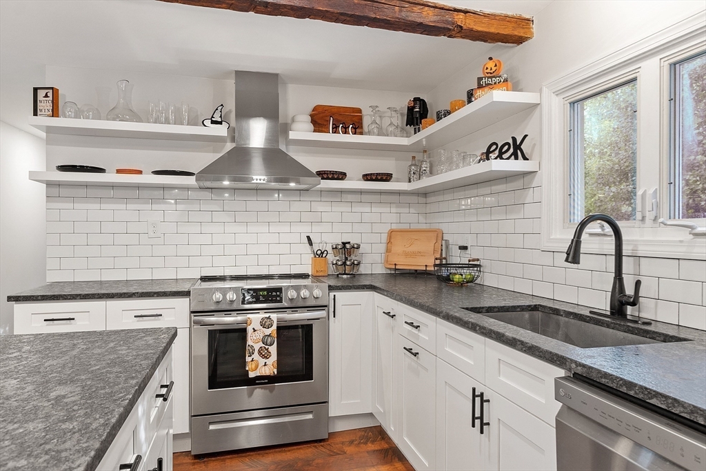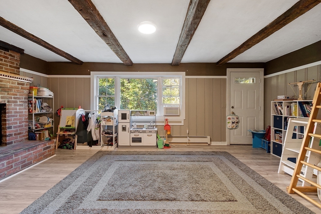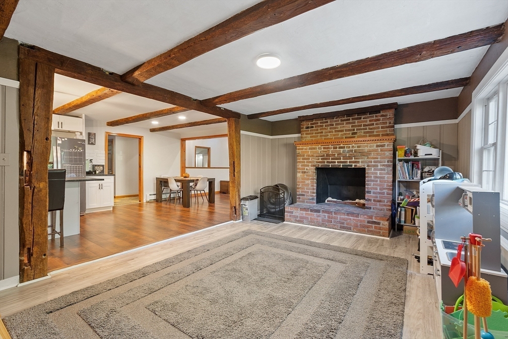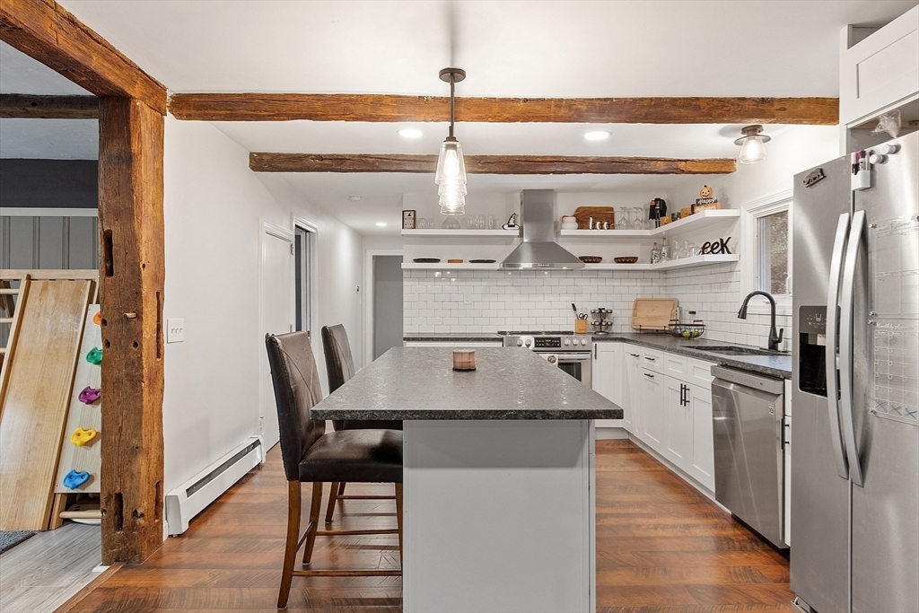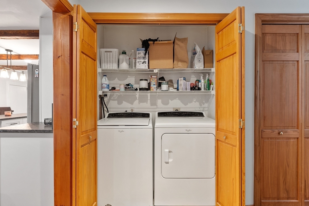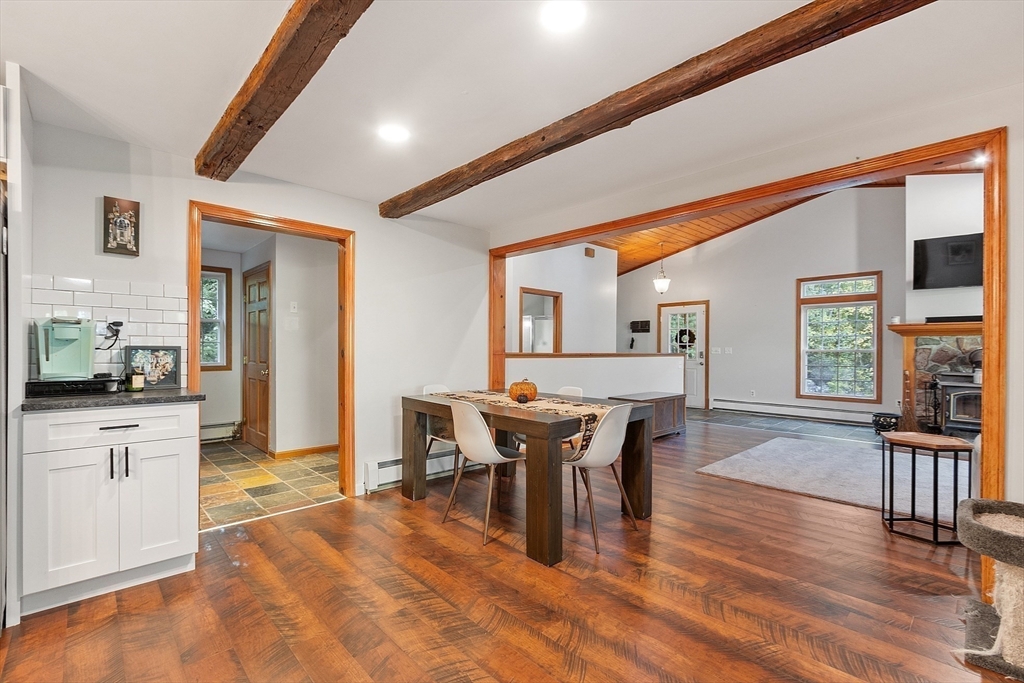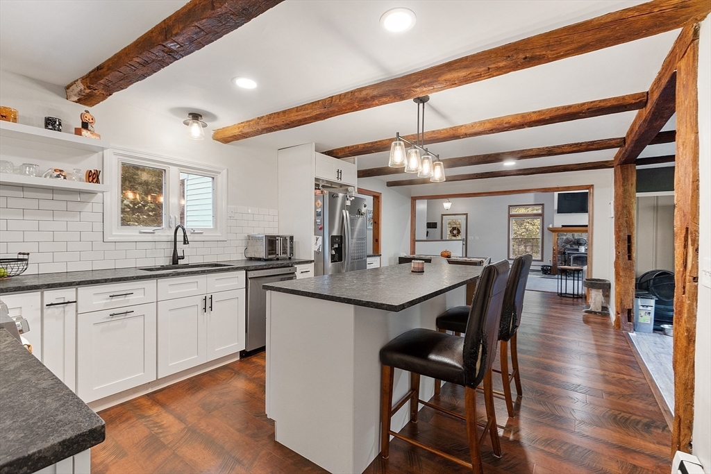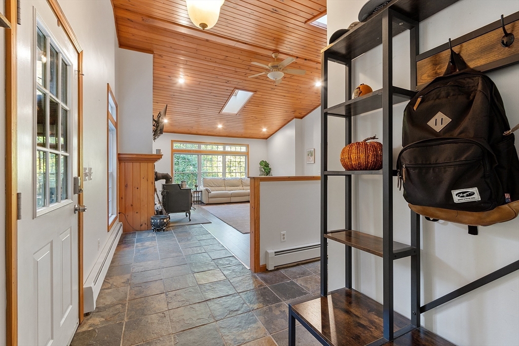 This charming two-bedroom, two-bathroom ranch style home sits on approximately 1.5 acres of private land. The home features a welcoming living room addition with skylight windows filling the room with natural light and a wood burning stove, creating a warm and inviting atmosphere. The updated kitchen boasts modern appliances and finishes, ensuring convenience and functionality with plenty of counter space and barstools. Two good size bedrooms with an abundance of natural lighting are right down the hall and a bonus room provides additional flexibility, enabling you to tailor the space to your preferred use for an office, nursery, playroom, or mudroom. Two FULL baths make this home convenient for everyone. First floor laundry. The private lot offers a serene setting, providing a tranquil retreat with a partial wrap around porch to relax on with coffee in the morning or BBQ with friends and family. A cozy fire pit for summer/cool evenings just adds to the charm of this home. OH 10/5 12-2