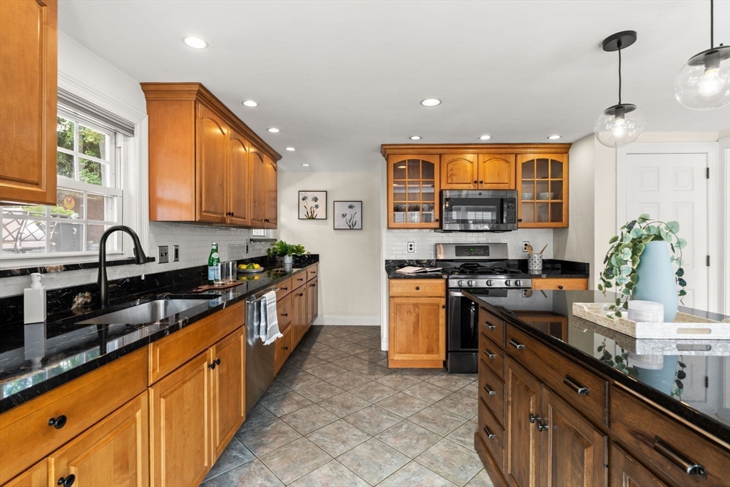This classic brick Bungalow offers timeless charm paired with modern comfort. Bathed in natural light, the home features a welcoming picture window, hardwood floors, and two fireplaces that create a warm, inviting atmosphere—perfect for cozy fall evenings. The primary suite boasts dual closets and private, full bath, while the flexible floor plan spans two full levels, providing space for family, entertaining, and the ease of working from home. The beautifully updated kitchen shines with granite counters, gas cooking, and stainless-steel appliances, opening to an inviting dining room and living room, ideal for gatherings. The walk-out lower level expands the living area with a generous family room, fireplace, full bath, and convenient laundry. You will love the two-car garage and additional off-street parking, especially on snow days. Central air, newer windows, and proximity to Mystic Lakes complete this picture-perfect home—sophisticated, spacious, and designed for today’s lifestyle.