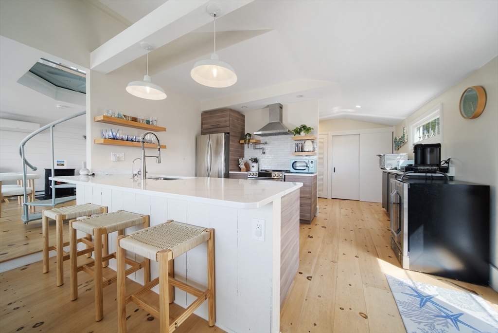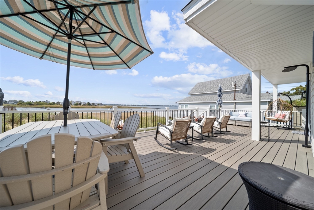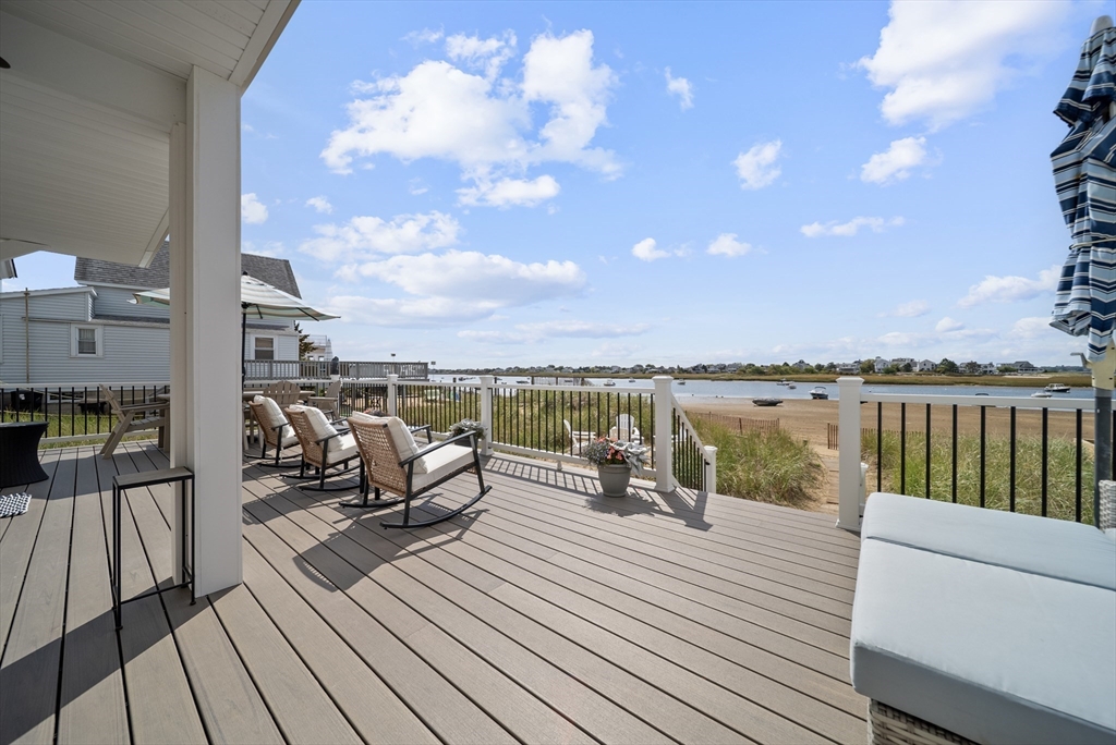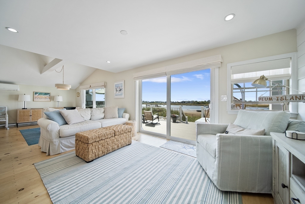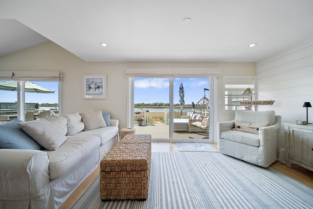 Basin-front on Plum Island! 5 Harbor Street is a rare waterfront property offering a true year-round vacation lifestyle. Enjoy your own private beach, sweeping water views, and a huge deck perfect for entertaining or taking in spectacular sunsets. This completely renovated, turnkey home features 3 bedrooms and 3 baths, with updated systems and low-maintenance design throughout. A modern, open-concept kitchen with stone countertops and a peninsula seating area flows seamlessly into bright, sun-filled living and dining areas. A charming custom accessory structure for your private office flex space. A private mooring makes boating effortless, completing this exceptional coastal escape. Whether you’re seeking a primary residence, second home, or investment, 5 Harbor Street offers rare waterfront living in one of Plum Island’s most coveted locations.