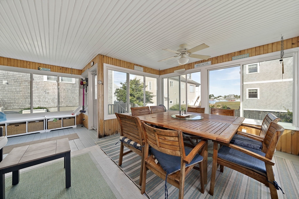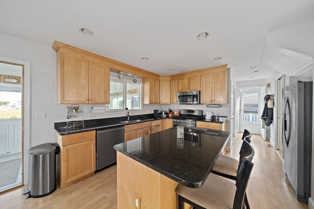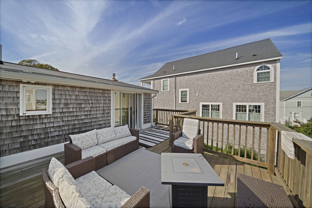 Nestled in the heart of coveted Marginal Street, this quintessential Green Harbor gem offers the perfect blend of coastal charm and modern comfort. Step inside this inviting Cape to find a warm and welcoming family room with a gas fireplace, seamlessly flowing into a maple kitchen with a center island and abundant storage. Just beyond, the spectacular three-season room—wrapped in glass—provides beautiful views of the Harbor. The first floor also features a beautifully remodeled bath and a versatile den or guest bedroom. Upstairs, the spacious primary suite opens to a private deck with sweeping views of the Harbor and beyond, accompanied by a second bedroom and full bath. After a day at the beach, rinse off in the outdoor shower or enjoy a cookout in the backyard. With its unbeatable location and timeless appeal, this Green Harbor beauty is truly not to be missed! This home has been lovingly cared for by its longtime owners and exudes pride of ownership throughout. NOT IN FLOOD ZONE