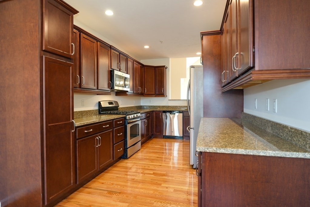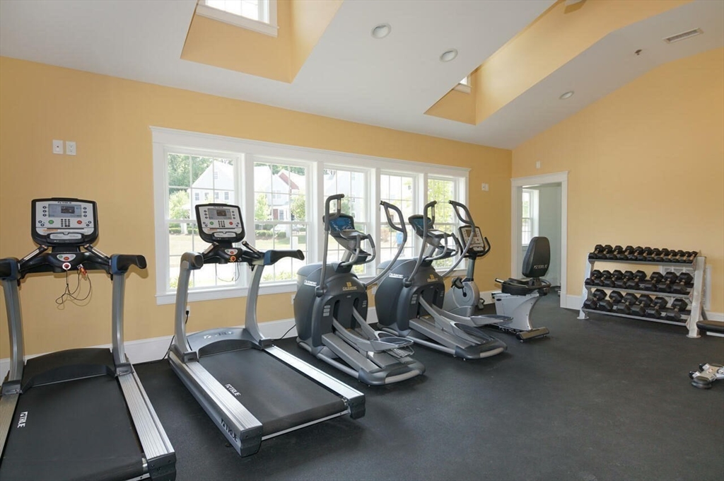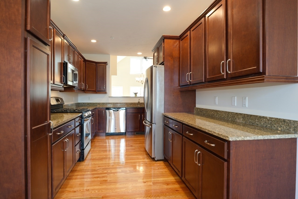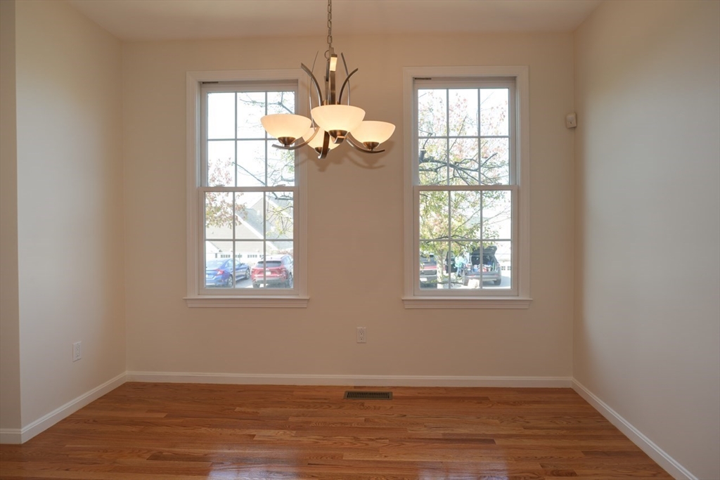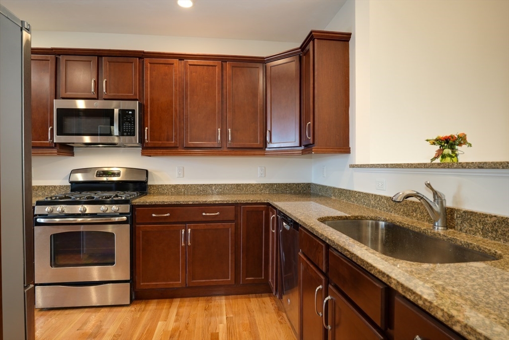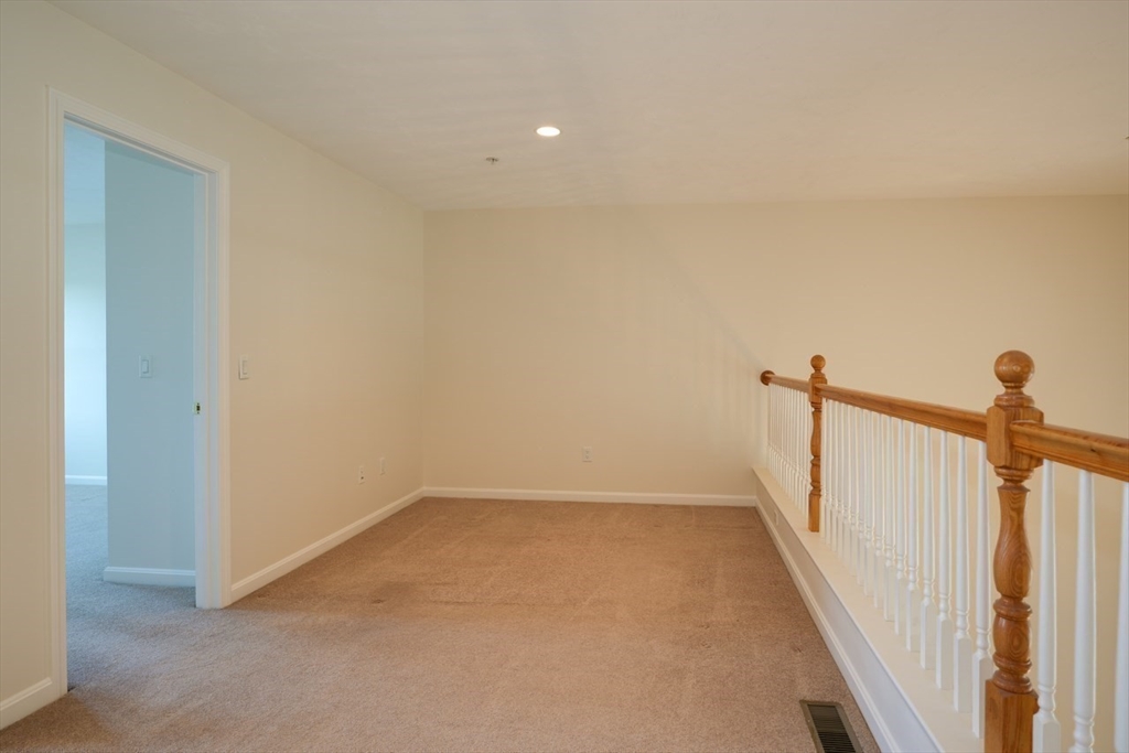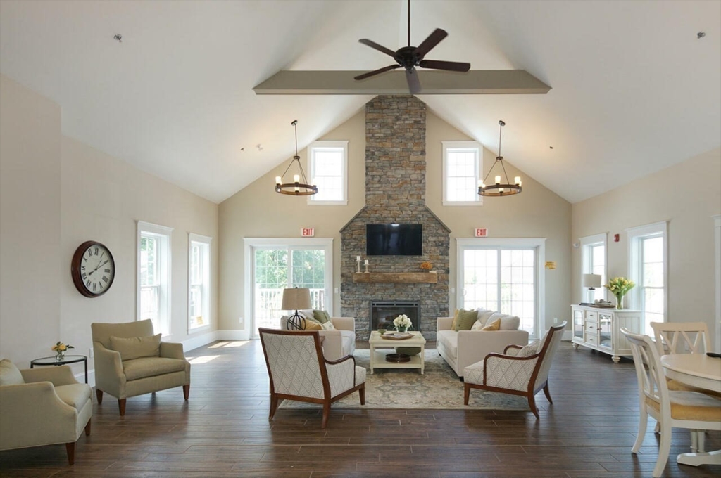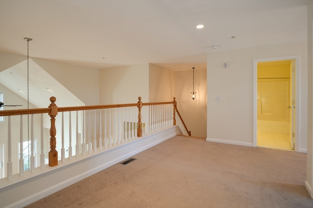 Charming condo in the desirable Westridge Community. Step inside to a freshly painted, expansive open floor plan, with newly refinished hardwood floors. Living and dining areas create a welcoming space with built-in cabinets and shelves. Private paver patio with awning allows you to enjoy the outdoors. The kitchen boasts gleaming granite countertops and ample cabinet space. Enjoy your morning coffee in the breakfast nook, basking in the natural light. The first-floor primary suite offers a bedroom, private bath with double vanity and tiled shower, a walk-in closet, additional closet and linen closet. Walk up the hardwood staircase to discover a versatile loft area. This open space can be a home office, a cozy reading nook, or den. The second floor also includes a bedroom and full bath. Minutes from vibrant downtown Hudson. Conveniently located to routes 495 and 290.