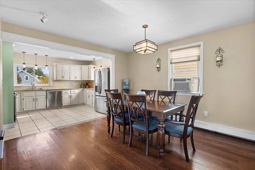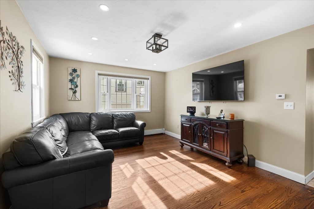 Discover this not-so-average Cape in Braintree, blending classic charm with modern open-concept living. Just steps from Braintree/Weymouth Landing’s new restaurants, coffee shops, and even Taco Tuesdays, the location offers unbeatable convenience with the commuter rail nearby for an easy ride into Boston. The light-filled kitchen opens to a fabulous fenced backyard with a large deck and patio—perfect for entertaining. Hardwood floors flow throughout, complemented by a sunroom ideal for relaxing. The lower level offers bonus space for a home office and family room, giving you flexibility to live, work, and play. A rare find in a sought-after neighborhood, this home truly stands out.