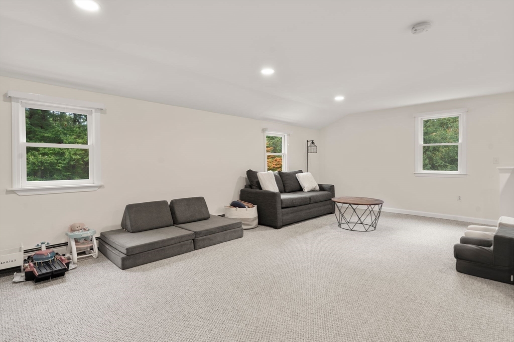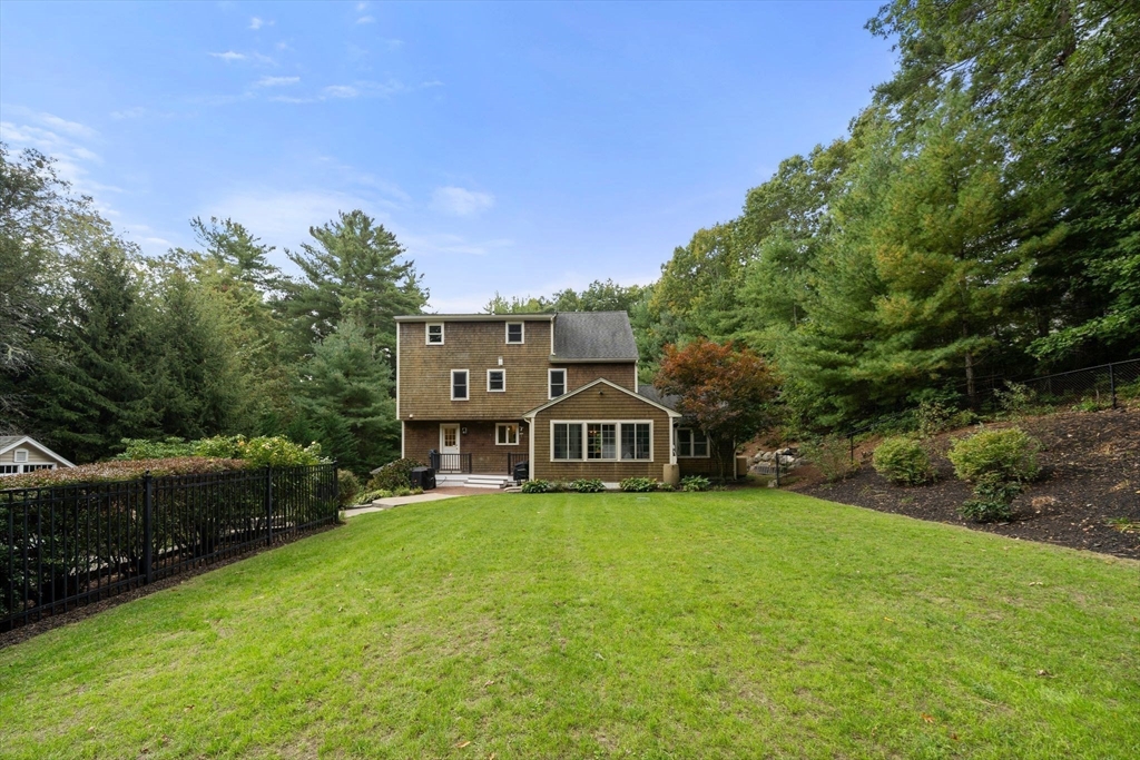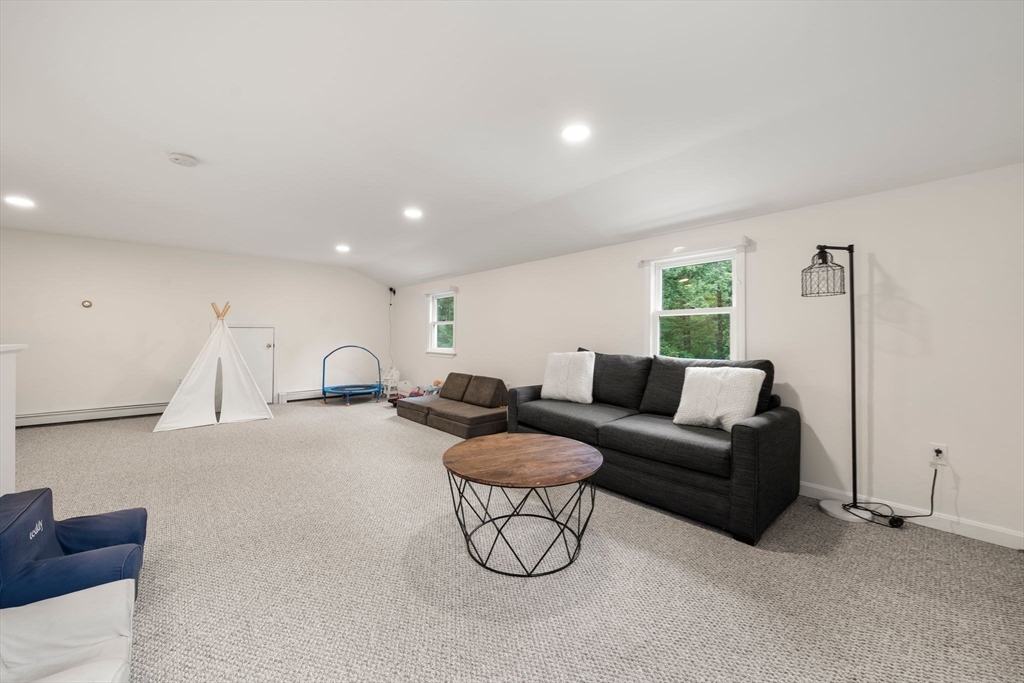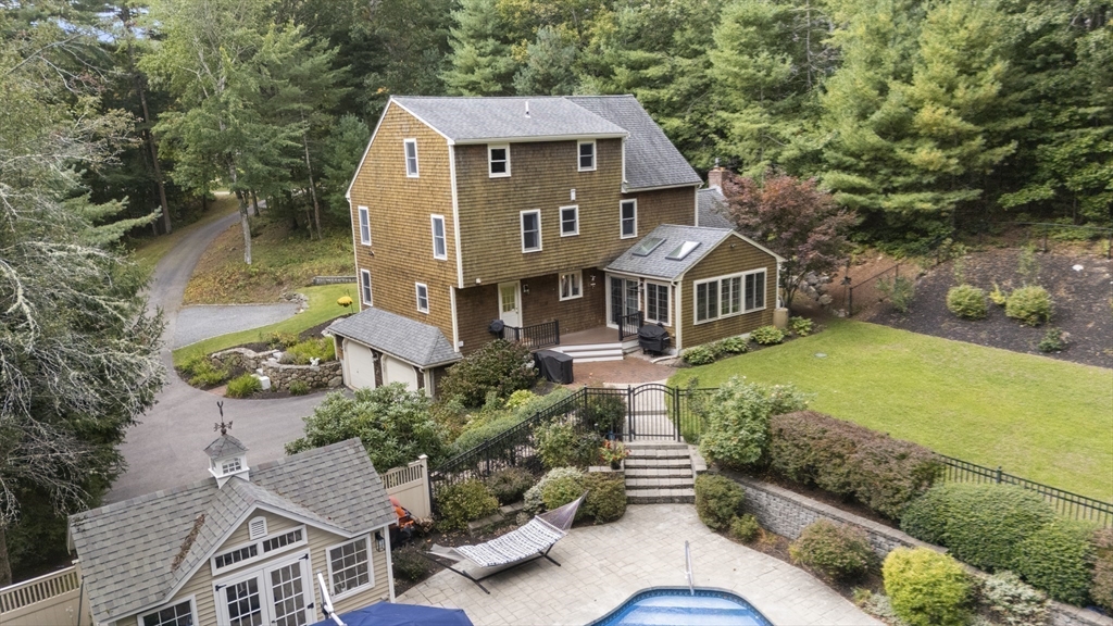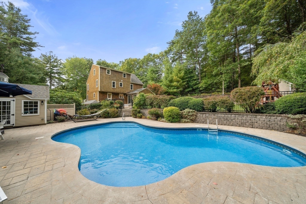 Set on nearly 3 acres in one of North Pembroke’s most desirable cul-de-sac neighborhoods, this 4-bed, 2.5-bath home offers privacy, space, and convenience in the sought-after North Pembroke school district. With 4 levels of living, including a versatile third-floor walk-up perfect for a game room or retreat, this rare offering is available due to a change in circumstance. The main level features a chef’s kitchen with double oven, open to a cathedral-ceiling family room with gas fireplace, plus a sun-filled four-season room, private office, and formal dining room. Upstairs, the spacious primary suite includes a renovated full bath, joined by 3 additional bedrooms. Recent updates include fresh paint throughout, recessed lighting in every room, and new hardwood floors in the living room. Outdoors, enjoy your private oasis with an in-ground pool, patio, and pool house, all surrounded by mature landscaping. Nothing to do but move right in!