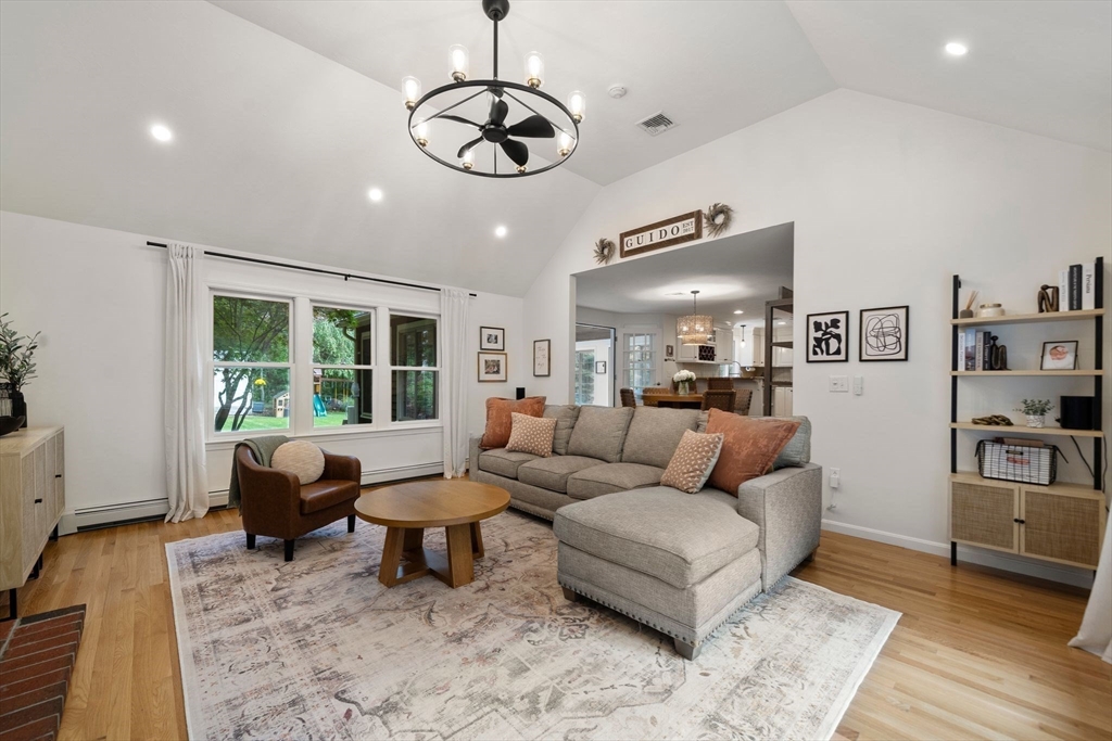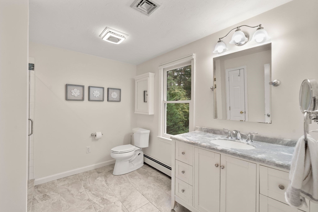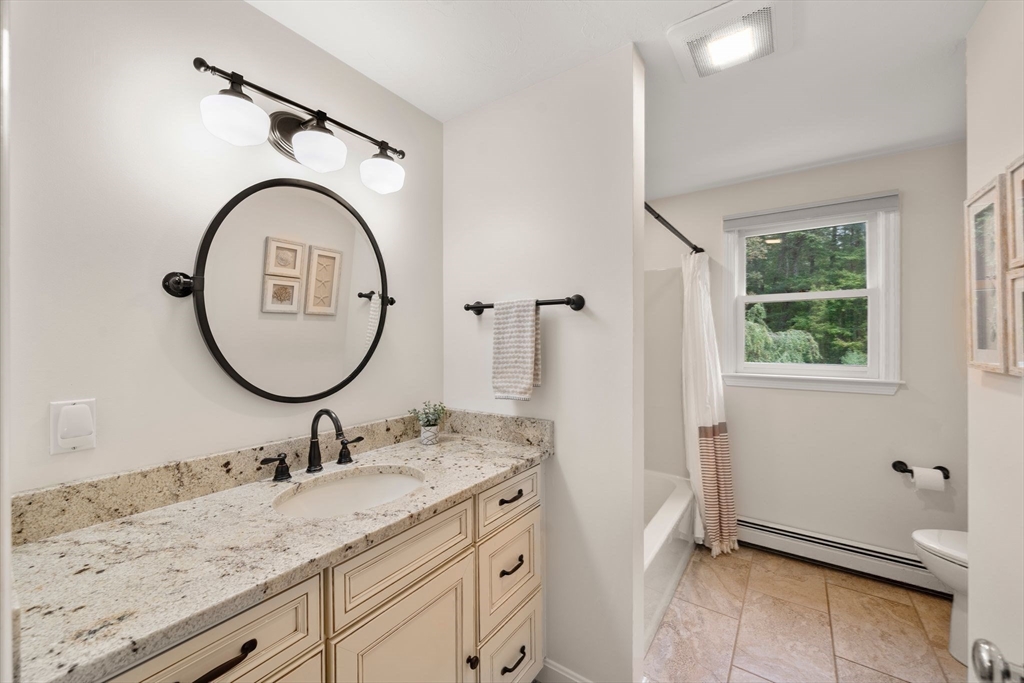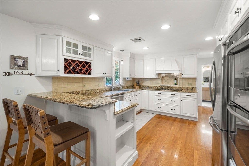 Set on nearly 3 acres in one of North Pembroke’s most desirable cul-de-sac neighborhoods, this 4-bed, 2.5-bath home offers privacy, space, and convenience in the sought-after North Pembroke school district. With 4 levels of living, including a versatile third-floor walk-up perfect for a game room or retreat, this rare offering is available due to a change in circumstance. The main level features a chef’s kitchen with double oven, open to a cathedral-ceiling family room with gas fireplace, plus a sun-filled four-season room, private office, and formal dining room. Upstairs, the spacious primary suite includes a renovated full bath, joined by 3 additional bedrooms. Recent updates include fresh paint throughout, recessed lighting in every room, and new hardwood floors in the living room. Outdoors, enjoy your private oasis with an in-ground pool, patio, and pool house, all surrounded by mature landscaping. Nothing to do but move right in!