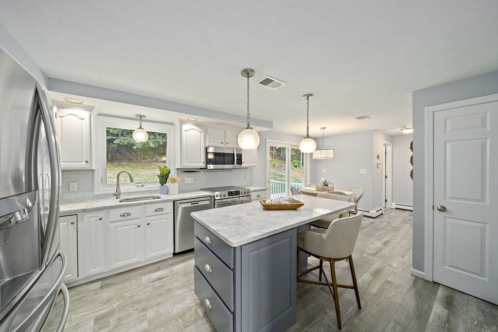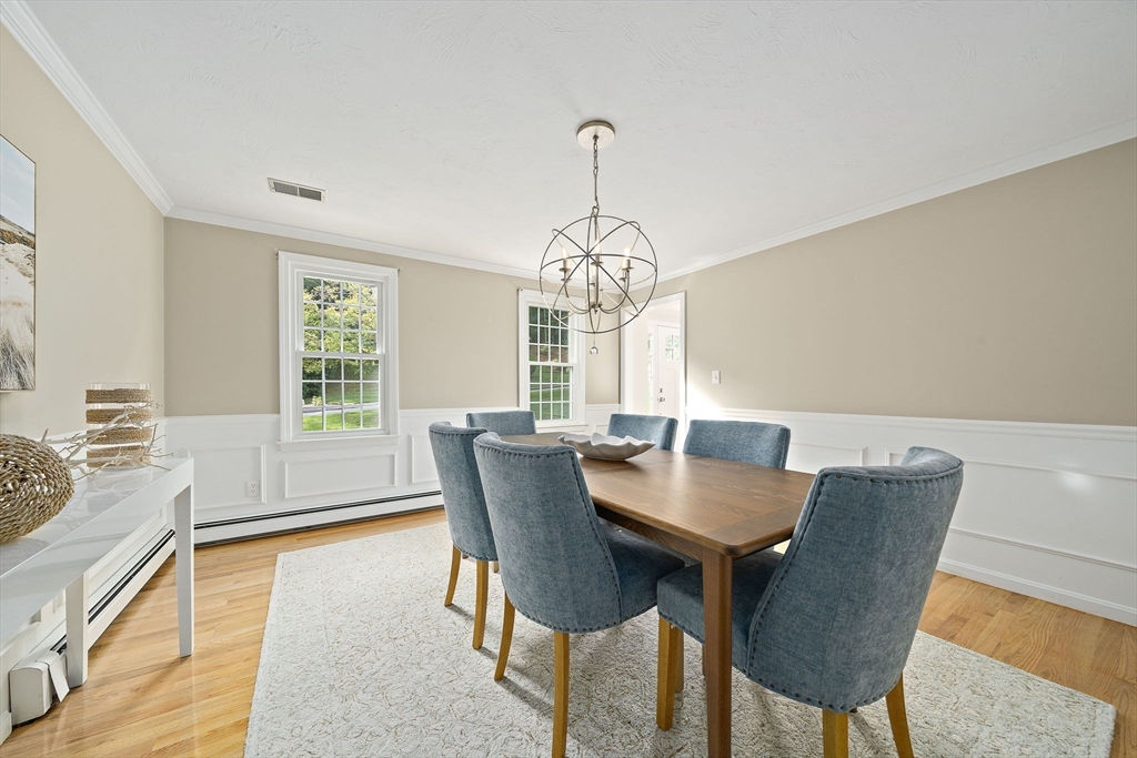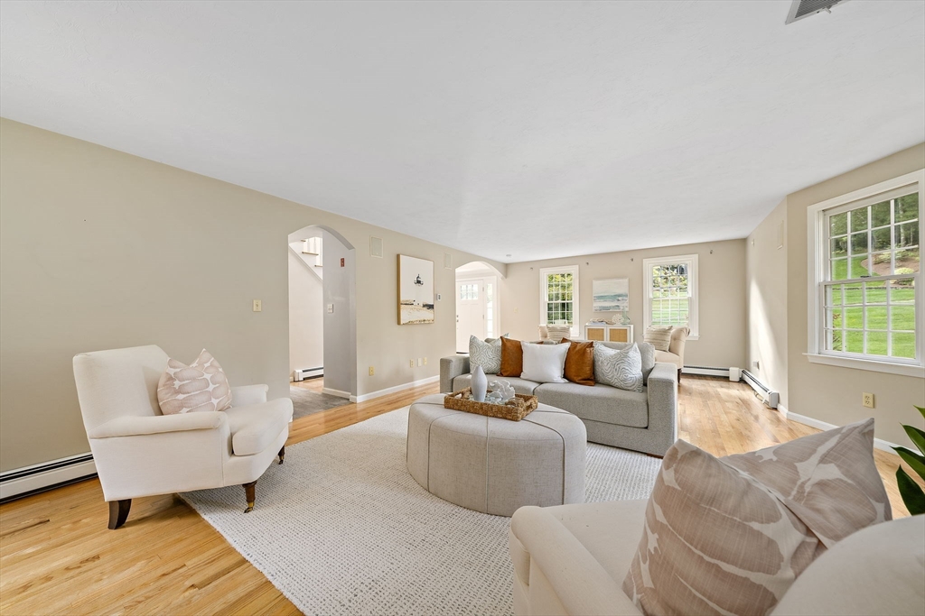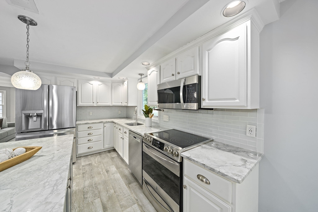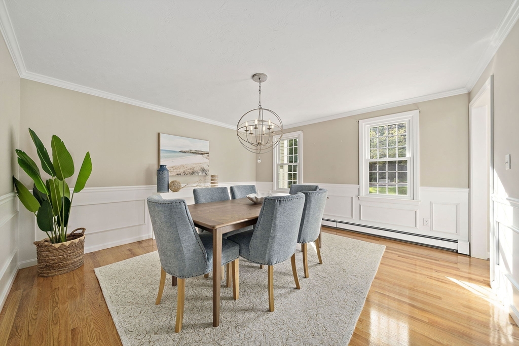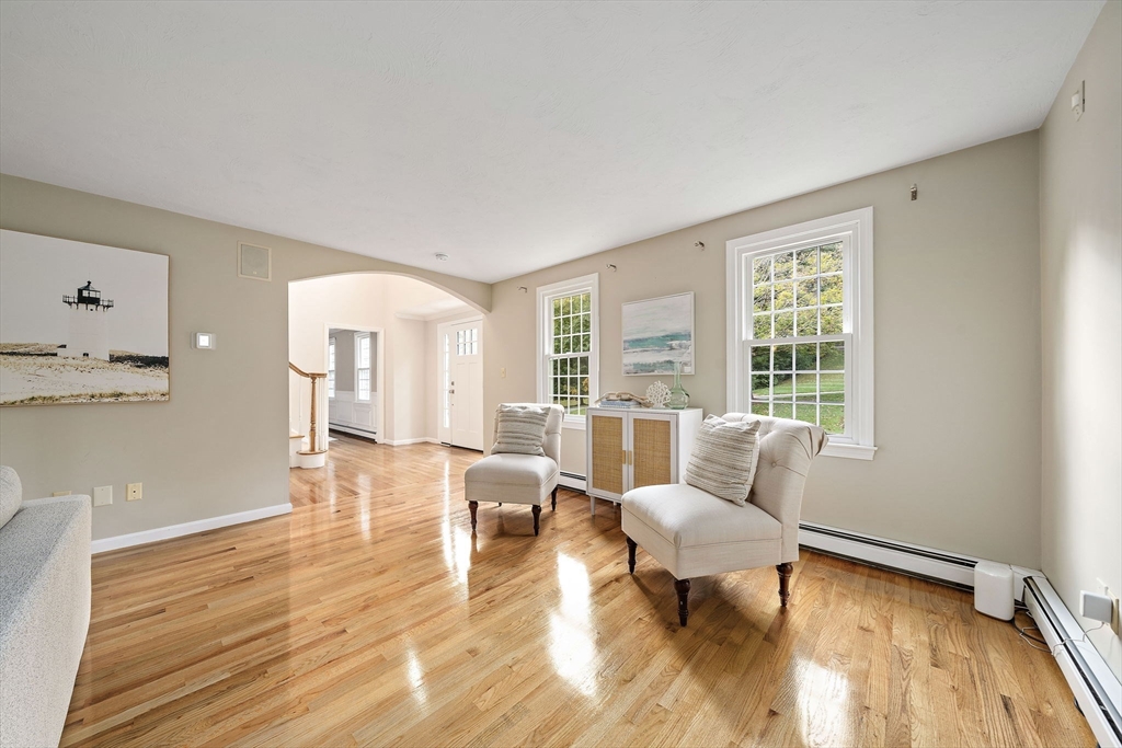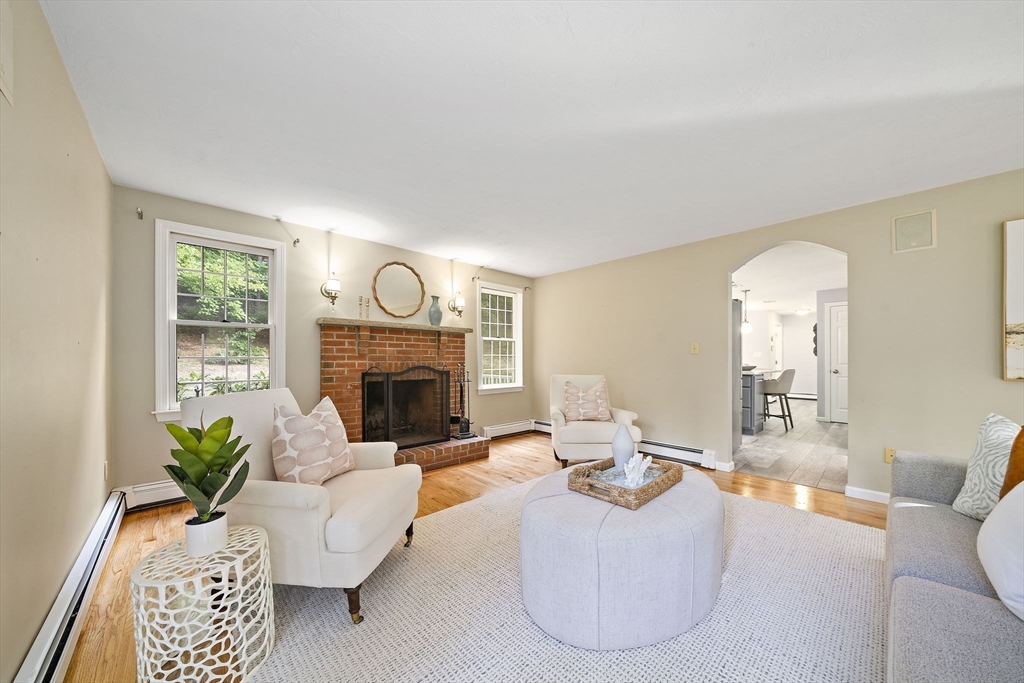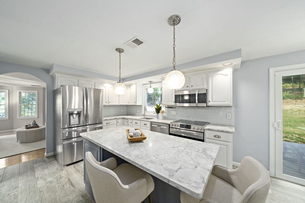 Gorgeous center-entrance Colonial in one of North Marshfield’s most desirable neighborhoods! This classic yet inviting home offers a front-to-back living room and a spacious dining room, both with gleaming hardwood floors. The bright eat-in kitchen, featuring stainless steel appliances and an island, opens seamlessly to a private backyard retreat with a trex deck and stone patio—perfect for entertaining or simply relaxing in total privacy. Upstairs, enjoy versatile living with four bedrooms, or configure as three plus a home office or great room to fit your lifestyle. The finished lower level, complete with a bar, sets the stage for fun gatherings. Recent updates include refinished first-floor hardwoods, a newer roof, newer heating system, new central air, and a beautifully remodeled primary bath. Blending timeless design with modern upgrades, this home truly has it all—space, style, and location. Don’t miss this opportunity—the one you’ve been waiting for.