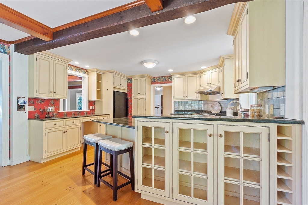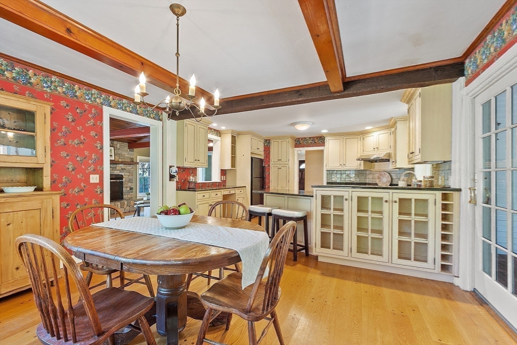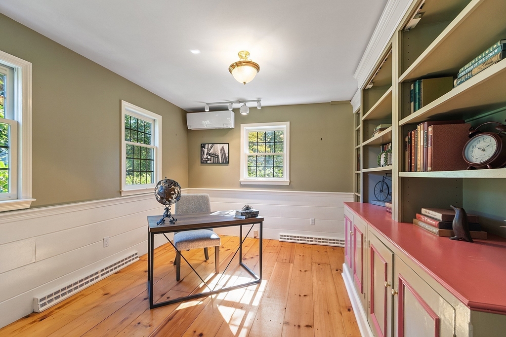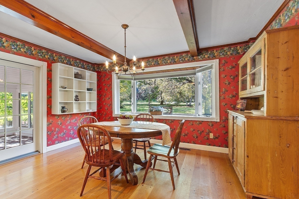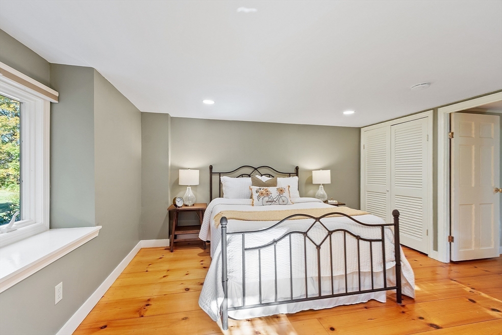 This is the one you've been waiting for! Come fall in love w/ this charming Antique home sited on a quiet country road just off the the town center in desirable Harvard. The bucolic setting includes mature landscaping; peach & apple trees as well as raspberries. The house itself is warm & welcoming from the moment you step inside. Light & bright w/ gleaming wood floors.The first floor includes a mud room, living room, family room with rustic stone fireplace, home office w/ built-ins, full bath, dining room w/ views to the beautiful grounds & updated kitchen. The dining room has sliders that open onto the lovely 4 season porch w/ gas stove & a view of the large brick patio. The second floor consists of 4 bedrooms & a full bath w/ walk in tub. The oversized garage/barn provides plenty of room for storage, cars (an electric car charger) bikes & canoes, etc. Located close to the schools, the library, churches, Bare Hill Pond & the General store. Conveniently located near commuting routes.