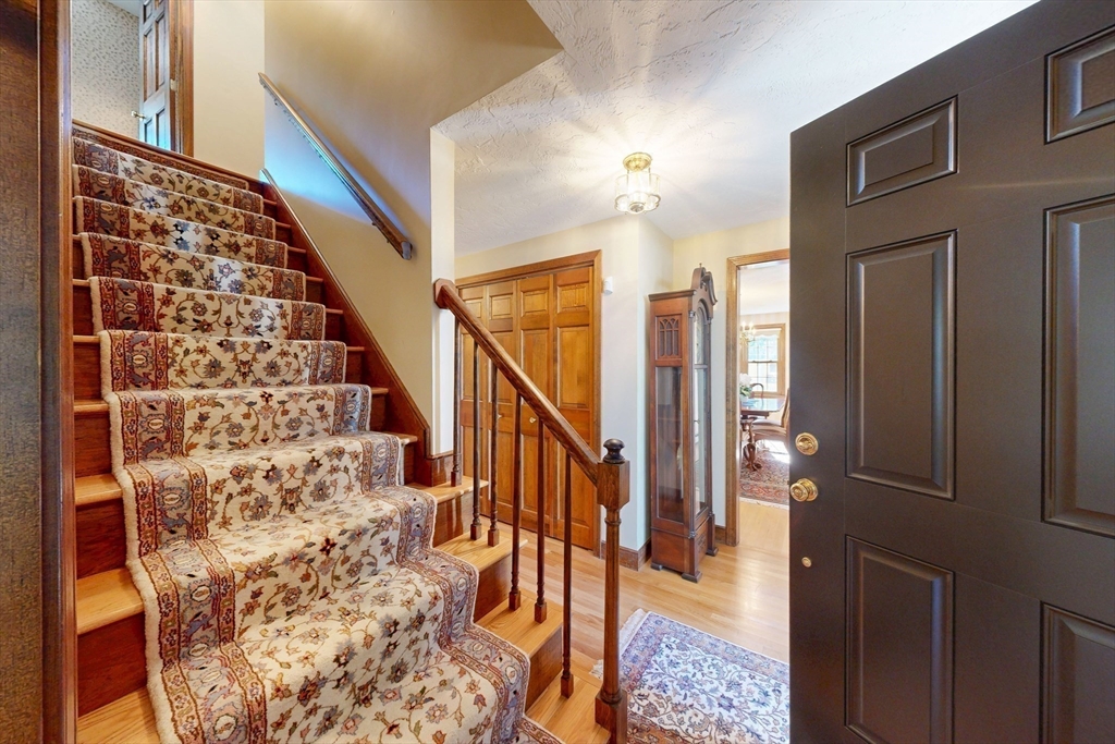 Comfort and charm meet convenience. This Colonial sits on nearly half an acre of fenced yard and mature trees, offering both privacy and plenty of space to play or relax. Step inside a welcoming foyer that leads to a sun-filled eat-in kitchen, perfect for family meals, featuring stunning granite countertops and custom wood cabinetry. Cozy up in the family room beside a wood-burning fireplace or enjoy summer evenings on the spacious deck. With 5 bedrooms and 5 baths (3 full and 2 1/2's)—including two possible primary suites—everyone can find their own private sanctuary here. Upstairs, you’ll love the unfinished bonus space, ready to become your dream playroom, or gym. Beautiful hardwood floors shine throughout, and updates - central air, insulated windows, and a central vacuum add comfort and ease. There''s a huge 2-car garage, and ample parking. Minutes from local parks, schools, shops, and highways. Life here could be truly special. O.H. Sat. Sun. 10/4 and 10/5 11:30 to 1:00.