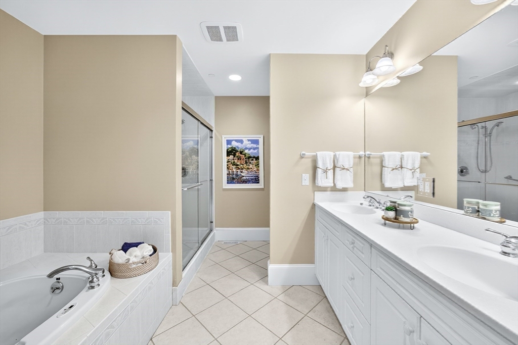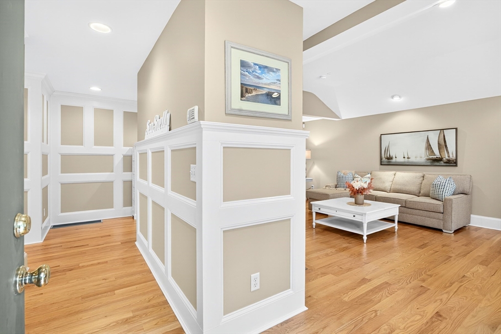 It is rare to find a residence available in the coveted Cove at East Bay. This elegant Cape Cod-style townhome offers a refined retreat in the heart of Osterville—perfect for downsizing or right-sizing without compromise. The inviting entry with box panel design leads to a stunning first floor with hardwoods, spacious living room with tray ceiling, bay window, custom millwork, double crown molding, and gas fireplace. A formal dining room with transom windows adds charm, while the first-floor primary suite provides spa-like comfort and generous closets. The chef’s kitchen features granite counters, stainless appliances, and designer cabinetry, opening to a family room with soaring tray ceiling and access to a private brick patio. Upstairs offers two guest bedrooms, office/exercise room, and a game room.. With 3 beds, 3.5 baths, 2-car garage, and low-maintenance living, this rare offering is minutes from Dowses Beach and Osterville Village.