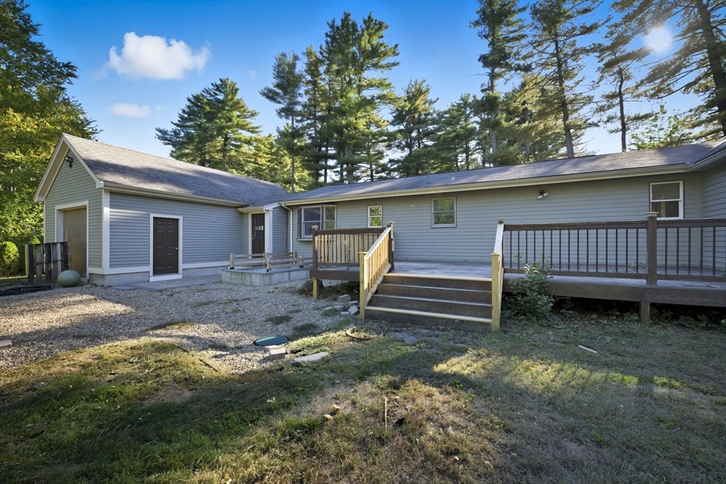 Opportunity knocks! With some finishing touches this gem is ready to shine! Sprawling ranch with lots of space. Open-concept kitchen, dining and living room with separate cathedral-ceiling family room. Gleaming hardwood floors throughout (some recently refinished). Main bedroom suite overlooking the backyard with 3/4 bath and walk-in closet. Two additional, nicely sized bedrooms, a full bathroom, laundry area, and mudroom complete the main level. Outside the one-car, oversized garage with doors both front and back draws you to the expansive, backyard with a deck and plenty of room for a variety of activities. A couple of unfinished projects including a half bath off of the kitchen, and a partially started finished, unheated basement leave lots of potential. Mini splits for a/c and a brand-new stove are just a couple of the extras. Convenient to highway, and town. The possibilities abound here with all of the space and acreage you need to create the dream property!
