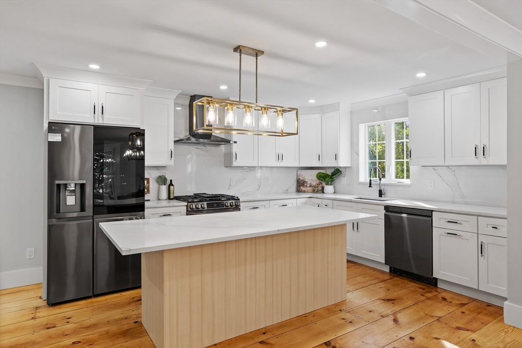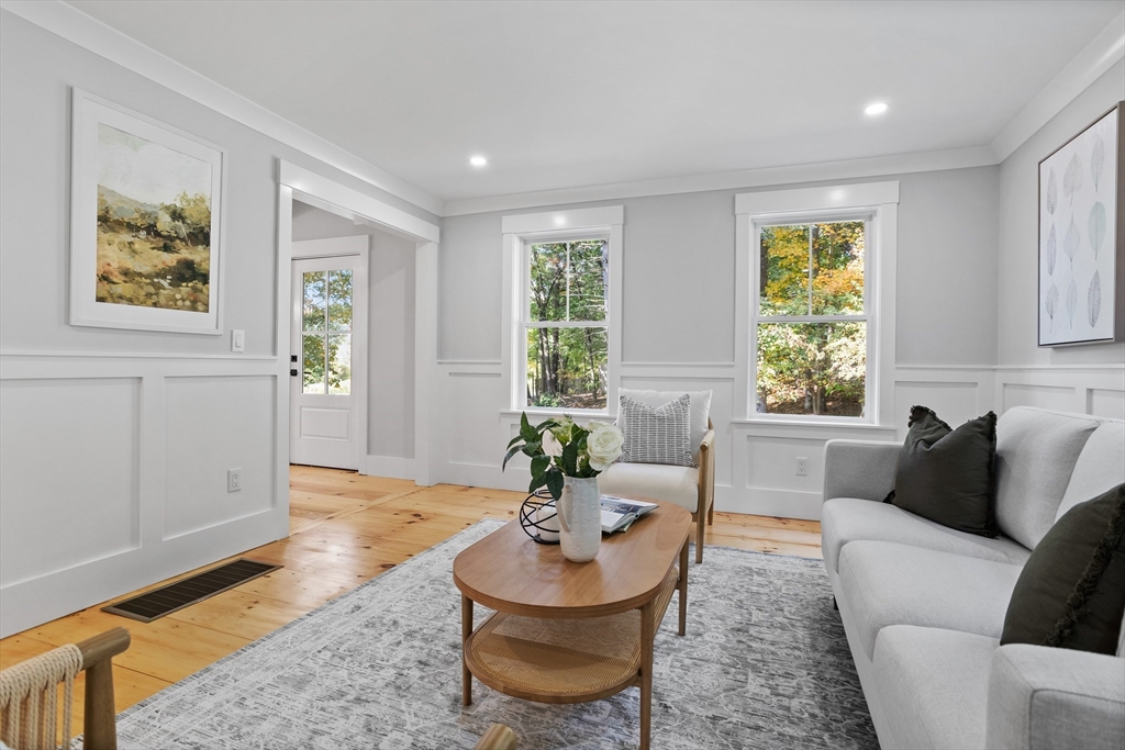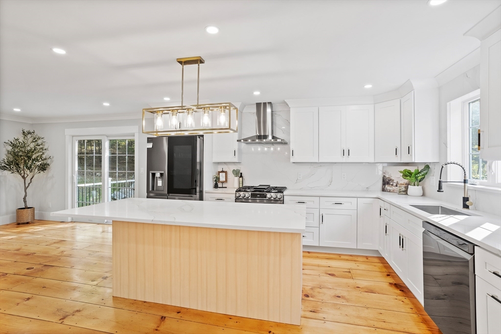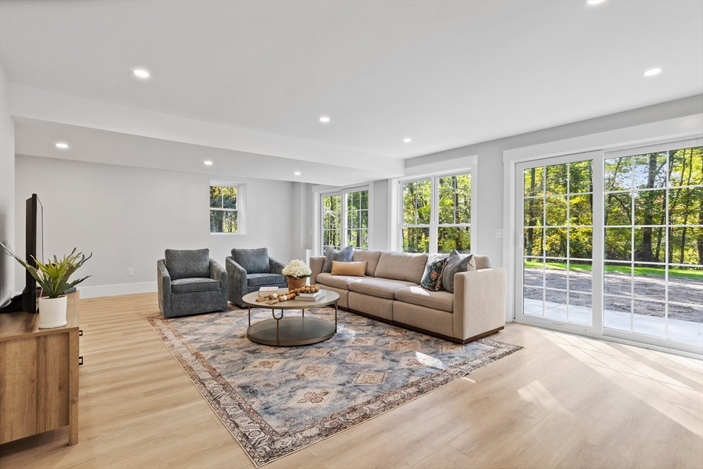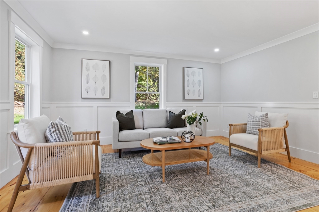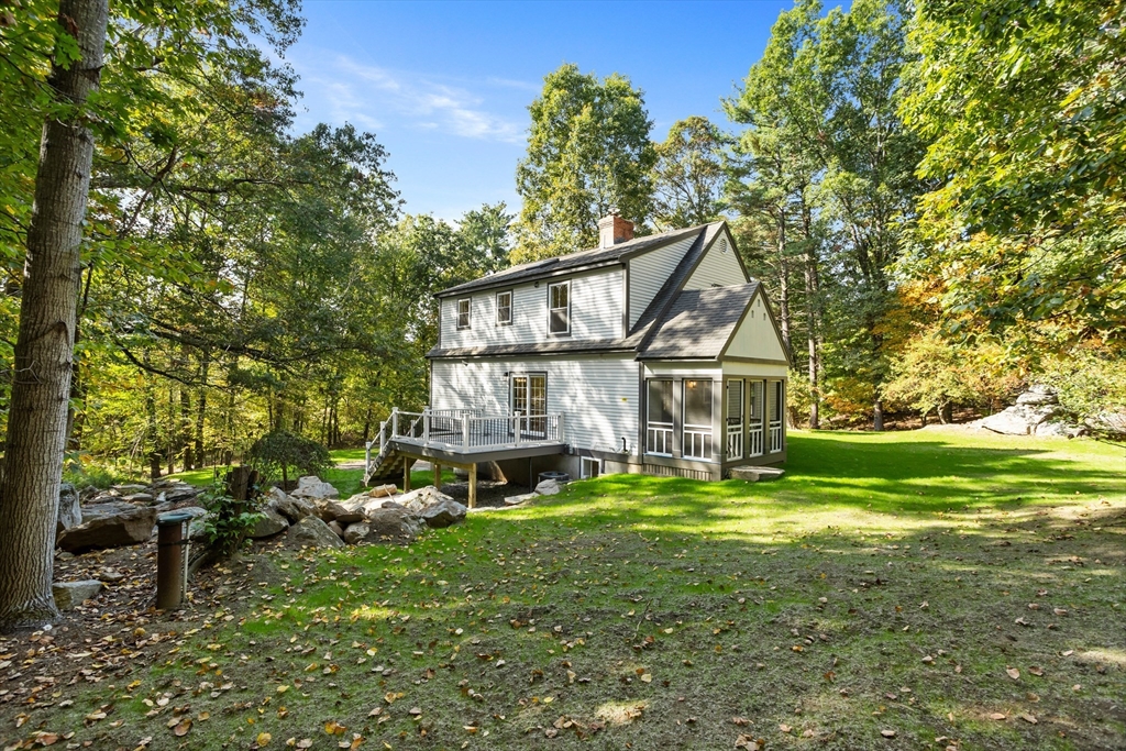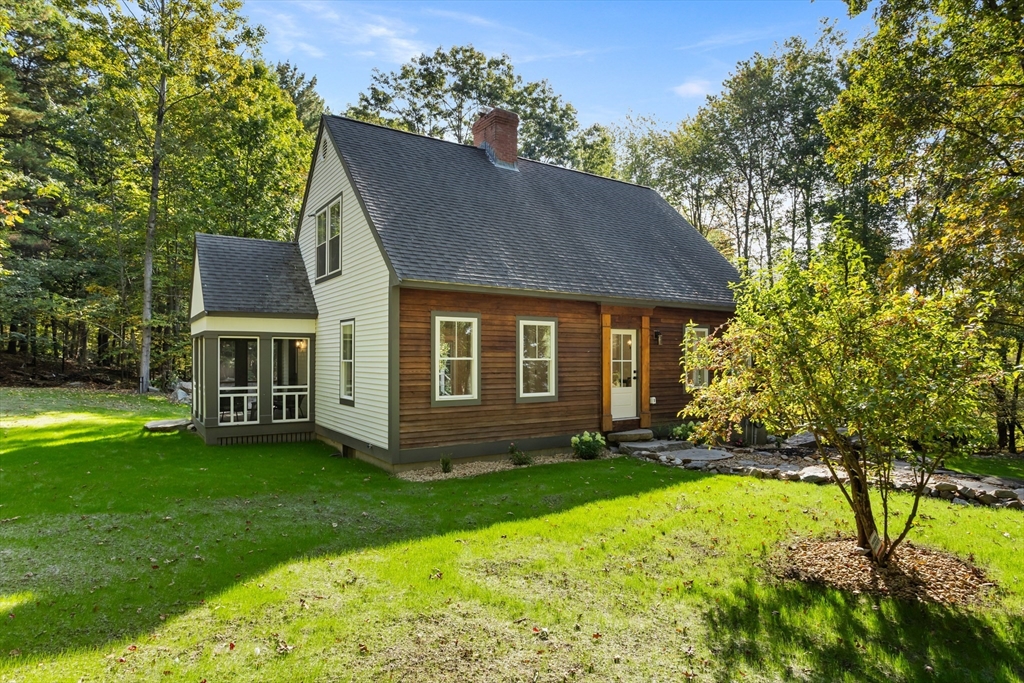 A natural stone approach leads to this exquisitely remodeled Cape privately set on 2.7 serene acres abutting protected land. The stunning white center island kitchen w/ quartz counters, breakfast bar, gas range & sun-filled dining area flows into a spacious dining room & beautifully appointed living room—an open-concept design perfect for entertaining. Unwind in the dreamy primary suite showcasing a spa-worthy bath w/ luxurious tiled shower & double quartz vanity. Two additional bedrooms & gorgeous full bath complete the 2nd floor. The enviable finished walk-out lower level boasts a bath with tile shower, bonus space & a sprawling family room with twin sliders filling the space with natural light. Relax on the screen porch or composite deck overlooking tranquil woodland views. Striking wide plank floors, a convenient mudroom keeping busy lives organized & an oversized 3-car garage add style & functionality. A rare blend of New England charm & modern luxury in a picture-perfect setting.