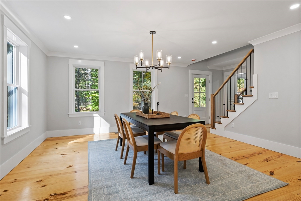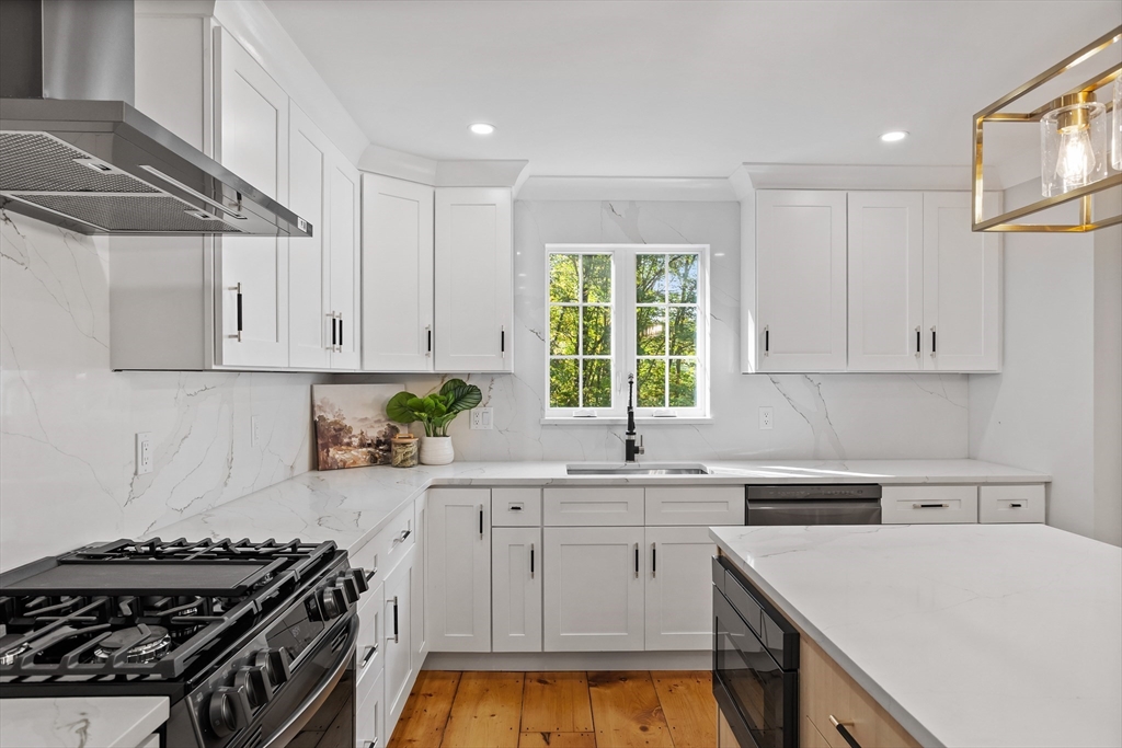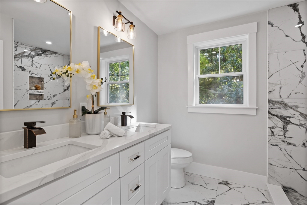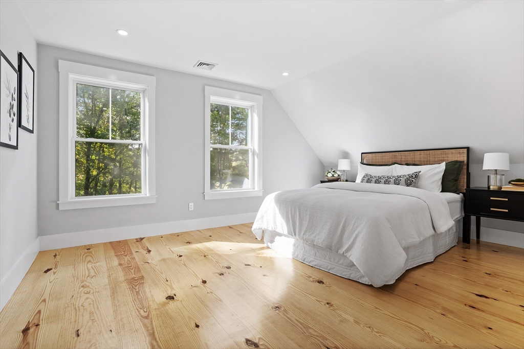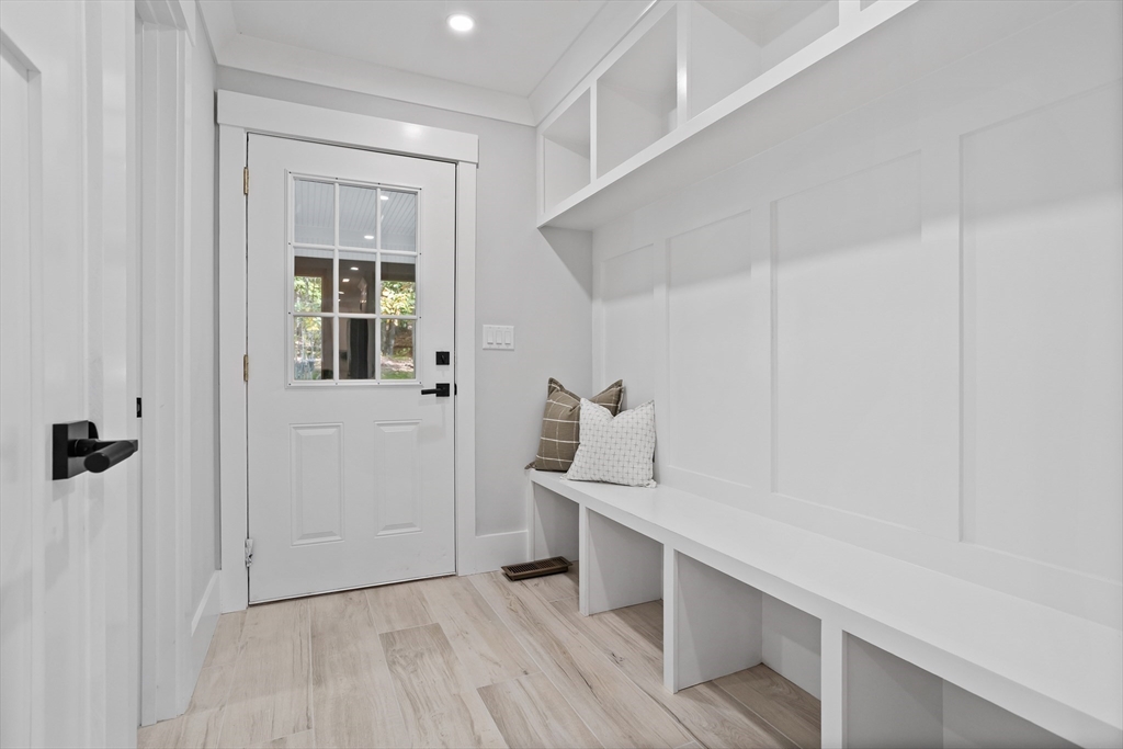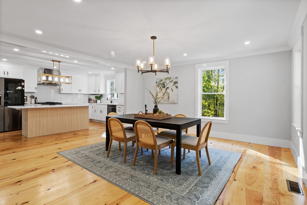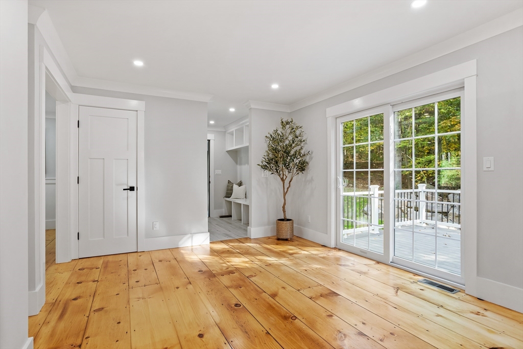 A natural stone approach leads to this exquisitely remodeled Cape privately set on 2.7 serene acres abutting protected land. The stunning white center island kitchen w/ quartz counters, breakfast bar, gas range & sun-filled dining area flows into a spacious dining room & beautifully appointed living room—an open-concept design perfect for entertaining. Unwind in the dreamy primary suite showcasing a spa-worthy bath w/ luxurious tiled shower & double quartz vanity. Two additional bedrooms & gorgeous full bath complete the 2nd floor. The enviable finished walk-out lower level boasts a bath with tile shower, bonus space & a sprawling family room with twin sliders filling the space with natural light. Relax on the screen porch or composite deck overlooking tranquil woodland views. Striking wide plank floors, a convenient mudroom keeping busy lives organized & an oversized 3-car garage add style & functionality. A rare blend of New England charm & modern luxury in a picture-perfect setting.