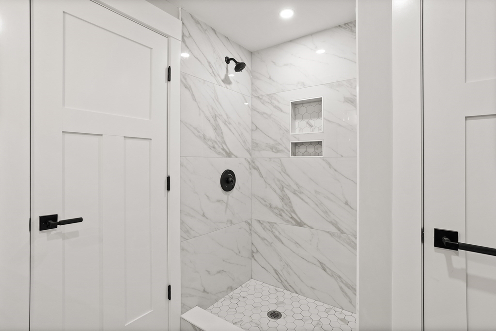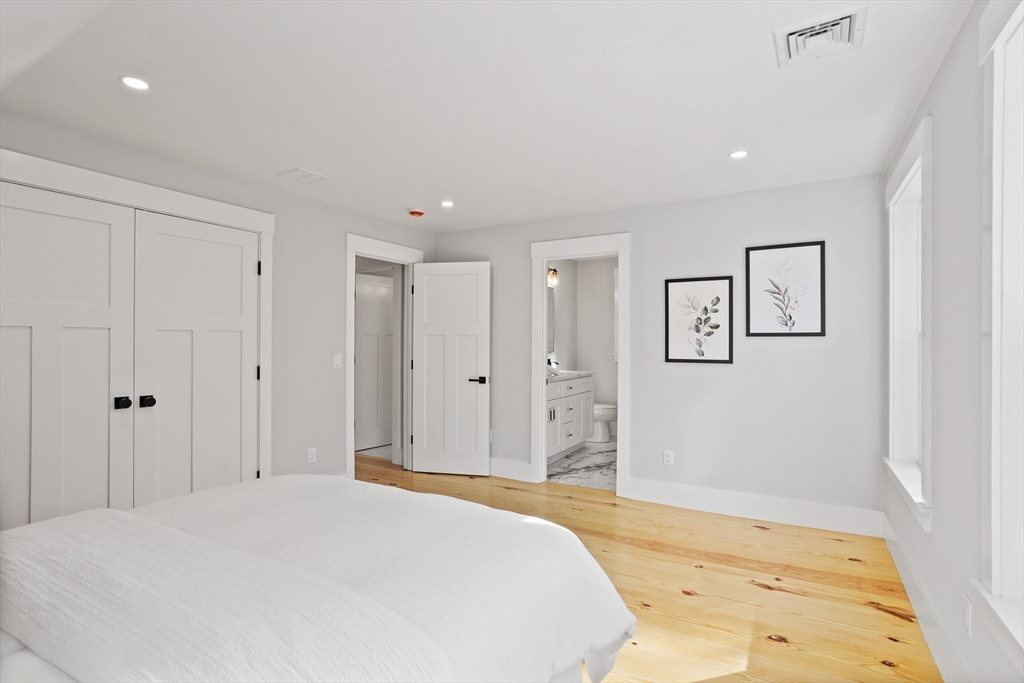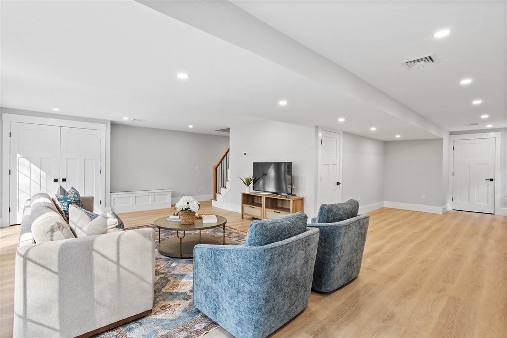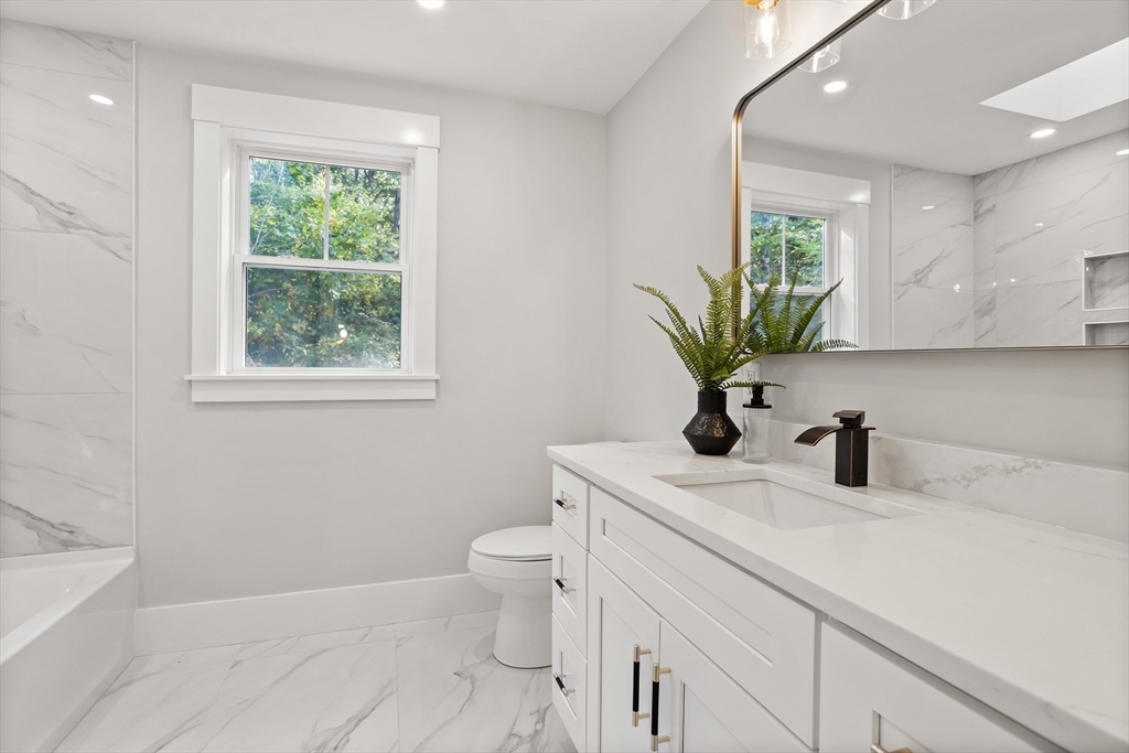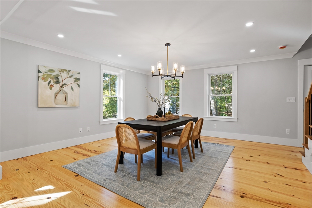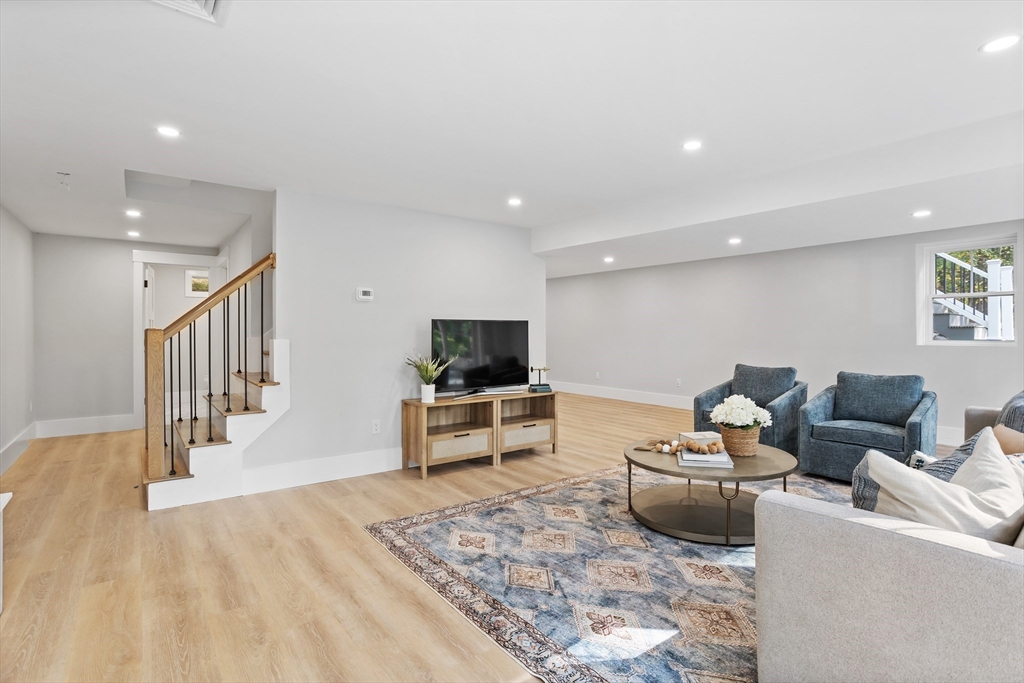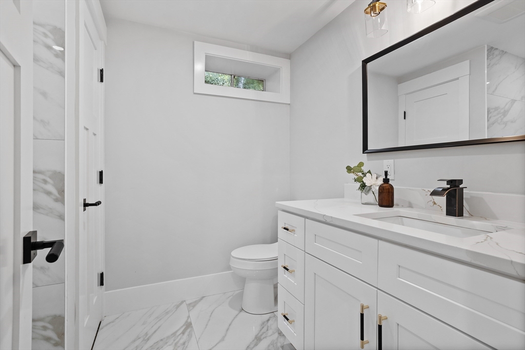 A natural stone approach leads to this exquisitely remodeled Cape privately set on 2.7 serene acres abutting protected land. The stunning white center island kitchen w/ quartz counters, breakfast bar, gas range & sun-filled dining area flows into a spacious dining room & beautifully appointed living room—an open-concept design perfect for entertaining. Unwind in the dreamy primary suite showcasing a spa-worthy bath w/ luxurious tiled shower & double quartz vanity. Two additional bedrooms & gorgeous full bath complete the 2nd floor. The enviable finished walk-out lower level boasts a bath with tile shower, bonus space & a sprawling family room with twin sliders filling the space with natural light. Relax on the screen porch or composite deck overlooking tranquil woodland views. Striking wide plank floors, a convenient mudroom keeping busy lives organized & an oversized 3-car garage add style & functionality. A rare blend of New England charm & modern luxury in a picture-perfect setting.