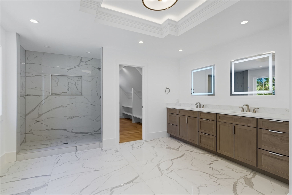 This STUNNING Brand New home is a statement in Style, Luxury, and Quality. Recently completed by one of the area's most reputable builders, this home represents the vision of a Master Craftsman and designed with today's modern lifestyle and standards in mind. The sophisticated open-concept floor plan features a contemporary-style living area with soaring ceilings that allow for abundant light, white oak flooring throughout, a customized kitchen designed by Prestige Kitchens in Needham with Quartz Countertops, Solid Maple Cabinetry, Stainless Steel Appliances, and Marble Backsplash, and an oversized island perfect for daily living and entertaining. On the second level you will find a Masterful Primary Suite finished to perfection, in addition to an en-suite bedroom with full bath, and two bedrooms with one shared hallway bath. The lighted main staircase with vaulted ceilings to the second floor is at the centerpiece of this modern design. No detail overlooked. You will be astounded!