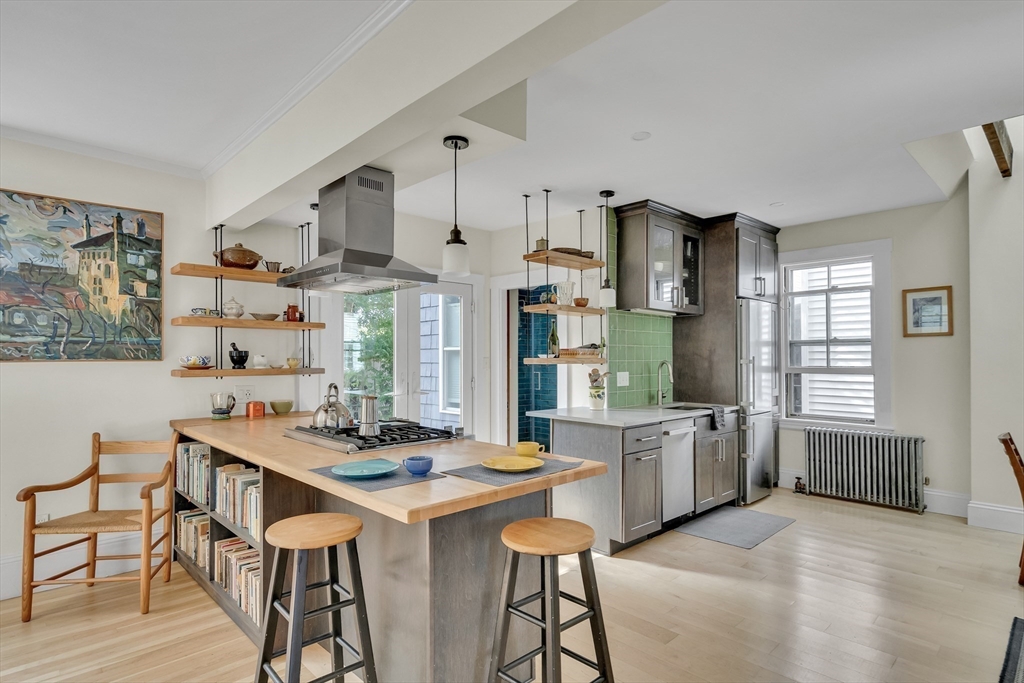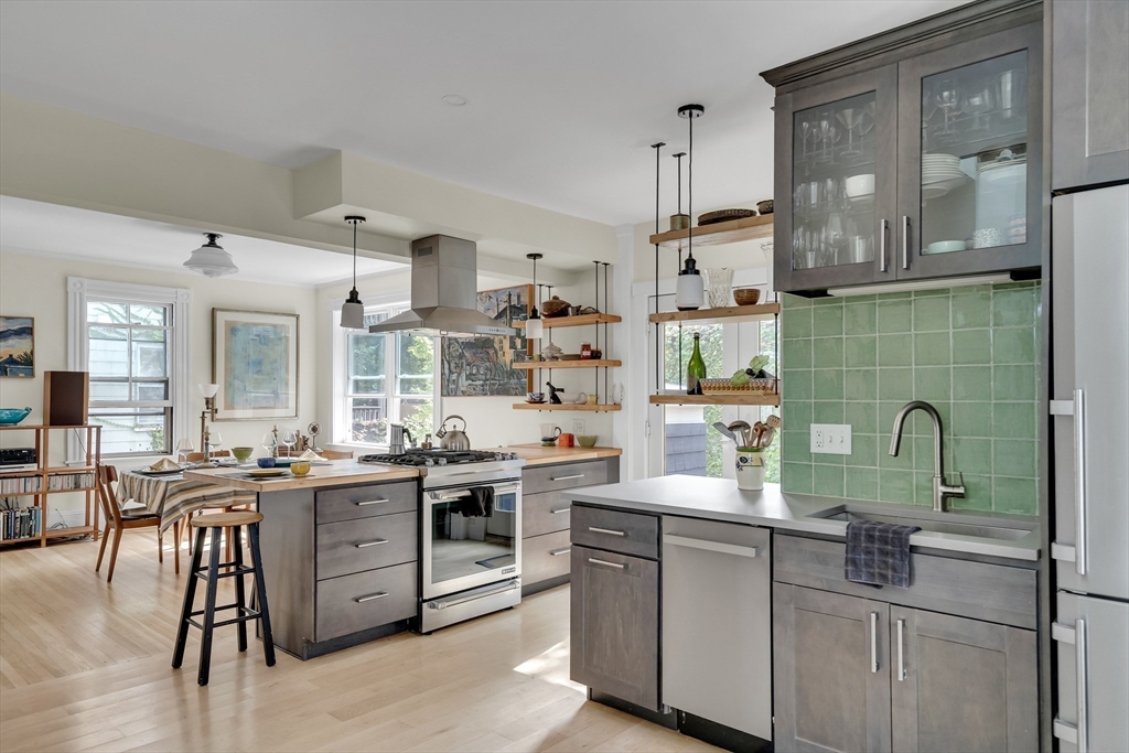 Great opportunity to own a single family (C'1900) in one of Somerville's most desirable locations- on top of Union Sq and close to the Green Line. Urban access yet on a quiet, one-block long, one-way street. Substantial improvements were made during the last five years. With an emphasis on light throughout- the kitchen and dining room were re-designed and a bath (w/ laundry), added. Upstairs, one of the three bedrooms was re-imagined as a skylit studio with a vaulted ceiling. Two additional, generously-sized bedrooms and the common, older bath complete the 2nd floor. A classic, period staircase, hardwood floors and large windows throughout. French doors off of the living room lead to the heated sunroom- the perfect home-office, play-room or "flex" space. Newer roof, exterior paint, an upgraded 200amp panel and gas systems complement the untapped basement with a ceiling height of 7'9". This prime location, a private back yard and driveway complete the package. Welcome to 22 Knapp St.