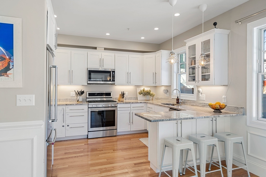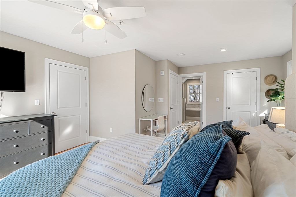 Living more like a single-family than a condo, this spacious four-bedroom townhouse spans four levels in one of Dorchester’s most desirable enclaves. The newly refinished lower level features a full bath with steam shower and brass fixtures plus a versatile den/guest room with custom Murphy bed. The main level is anchored by a designer kitchen with high-end finishes, opening to bright dining and entertaining areas and access to the backyard. Upstairs, three bedrooms (one ensuite) an additional full bath, and a stunning top-floor primary suite with two walk-in closets, a private balcony and spa-like en suite with soaking tub and shower. Outdoor living is exceptional with a private patio leading to a huge, newly landscaped and fully fenced yard - rare in the city. Two off-street parking spaces, ample storage and a well-run five-unit association add ease and peace of mind. Perfectly located just blocks from the Red Line and minutes to I-93, this Clam Point home delivers space and style!