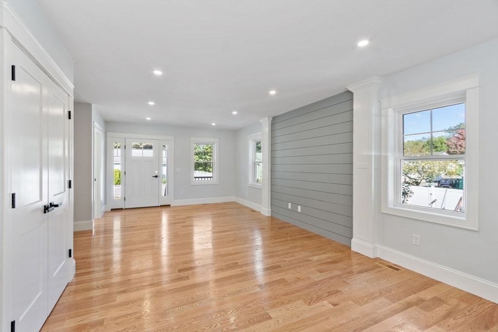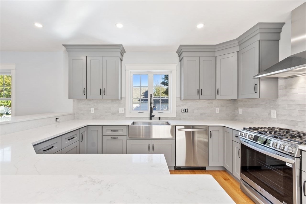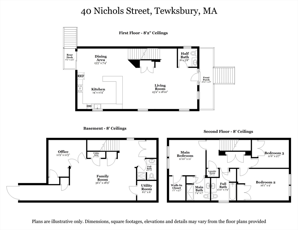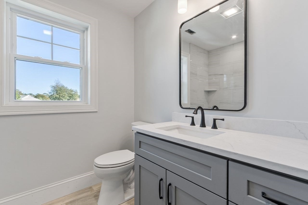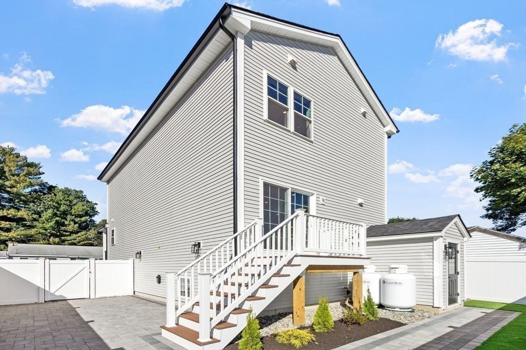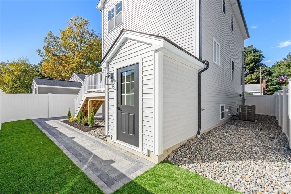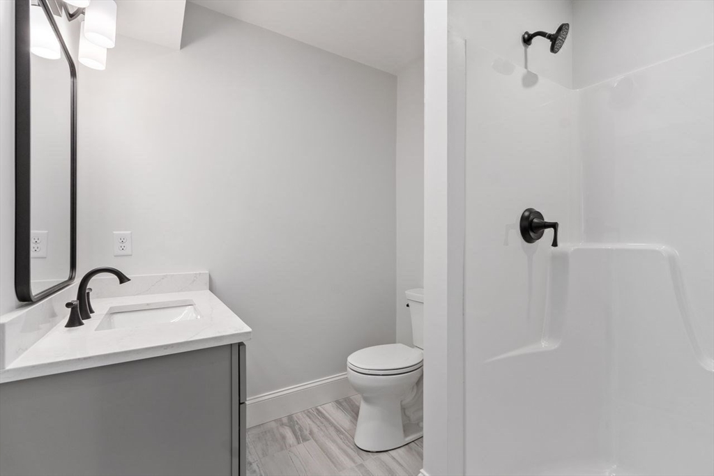New Construction Colonial featuring 3 Bedrooms, 3.5 Bathrooms set in a convenient neighborhood setting with easy access to shopping and highways. This pristine colonial with hardwood floors throughout offers modern comfort with timeless style. The open-concept first floor features a bright kitchen, living room, and dining area, perfect for everyday living and entertaining. The kitchen shines with stainless steel appliances, recessed lighting, a tiled backsplash, quartz countertops, and a generous breakfast bar. Upstairs, find three bedrooms, including a main suite with a private bathroom and a walk-in closet. A guest bathroom and laundry complete the second level. The walk-out lower level expands your living space with a spacious family room, a 3/4 bathroom, and a home office, ideal for work and play. The exterior features a fenced yard, patio and front porch. Don't miss out on this one!