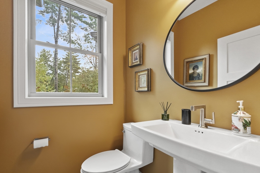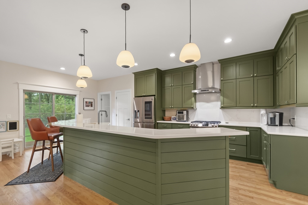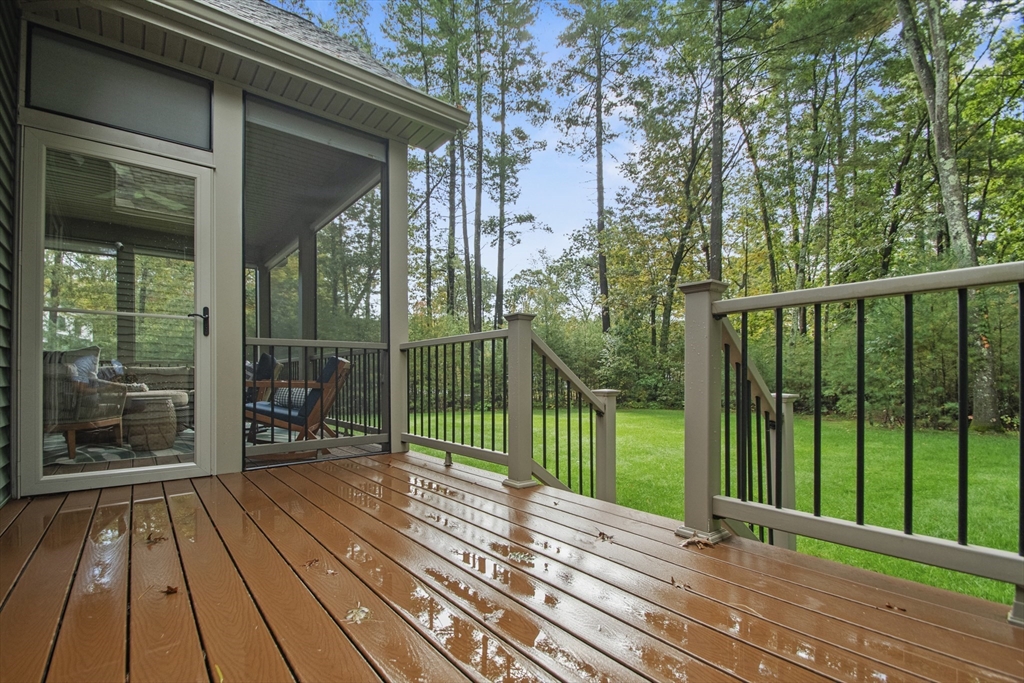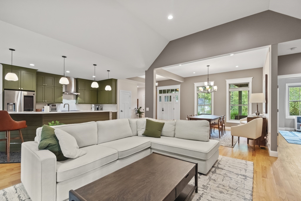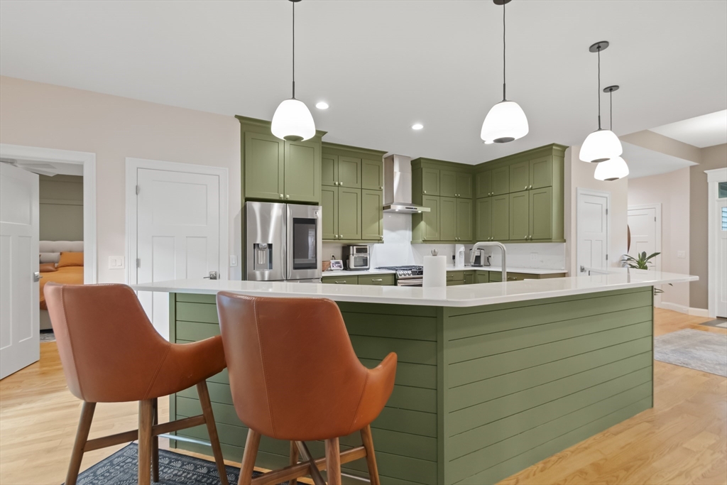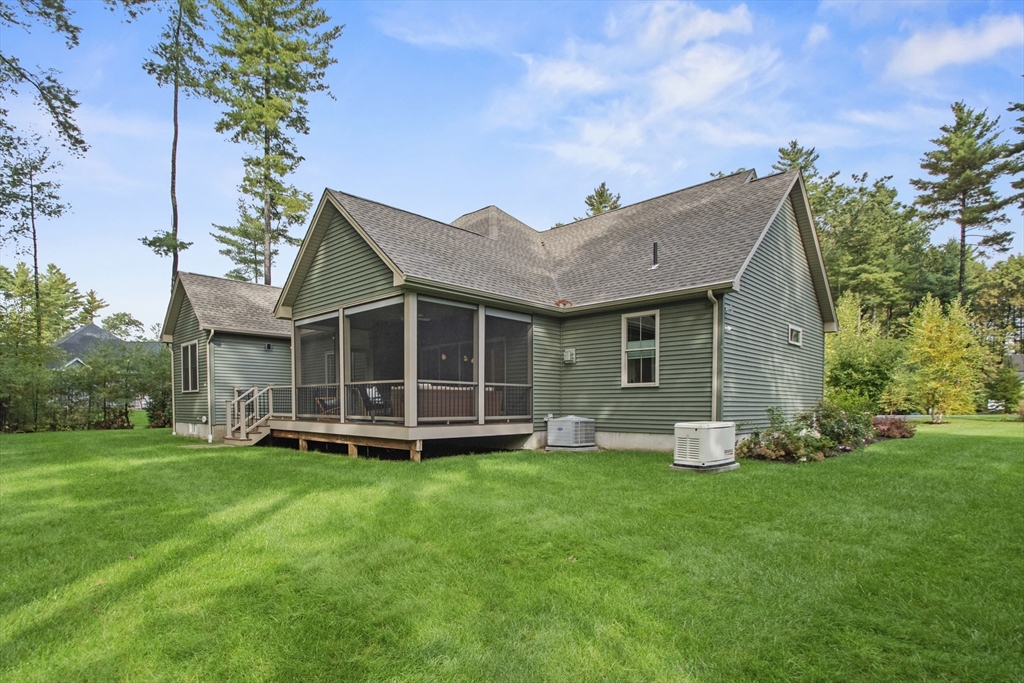 This stunning modern ranch, built in 2021, blends sleek design with everyday comfort on nearly an acre of beautifully landscaped grounds. The open floor plan highlights soaring cathedral ceilings, hardwood floors, and a dramatic stone fireplace in the living room. A chef’s kitchen shines with quartz counters, a spacious island, upgraded cabinetry, and stainless steel appliances, opening seamlessly to the dining area and composite deck for easy entertaining. The serene main suite offers a spa-like bath with double vanity, soaking tub, and walk-in closet. Two additional bedrooms both with hardwoods complete the package! Enjoy the convenience of central air, a propane heating system, central vacuum, and a full basement. Outdoors, a screened porch, sprinkler system, and level yard complete the picture. With easy access to shopping, trails, and highways, this gorgeous home delivers modern living at its finest.