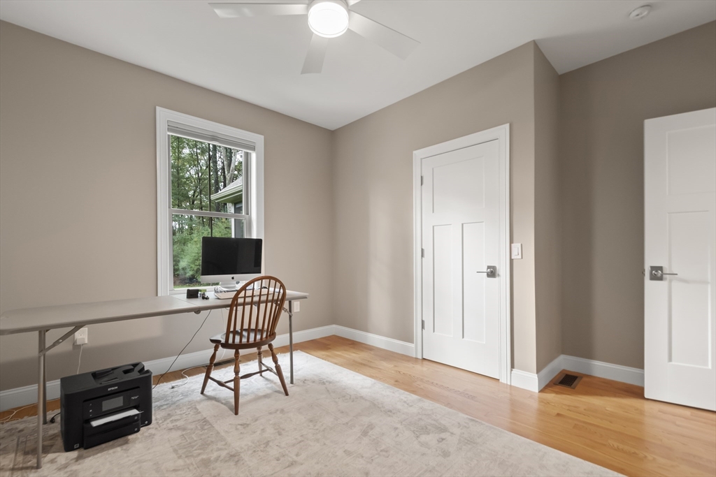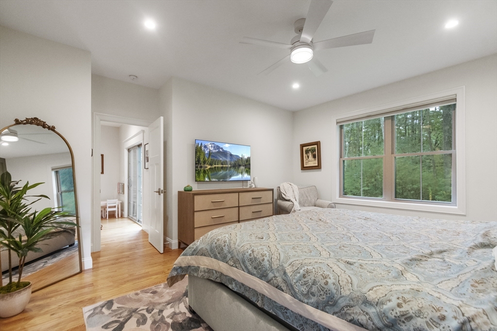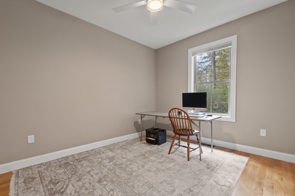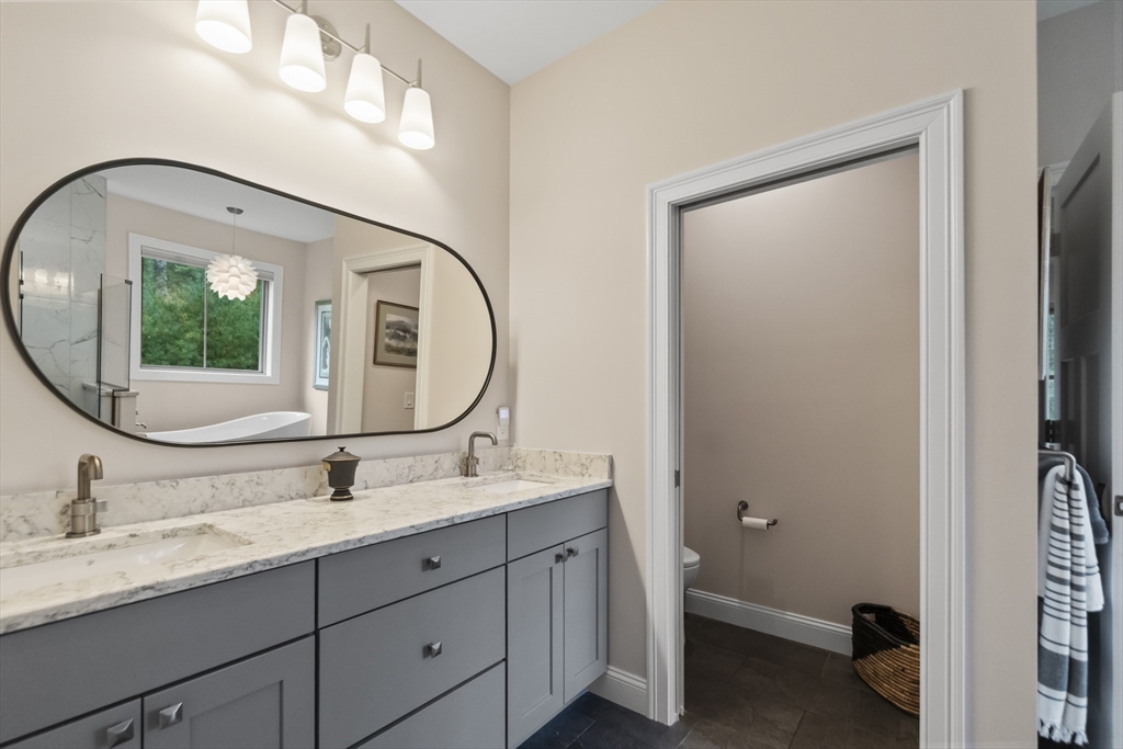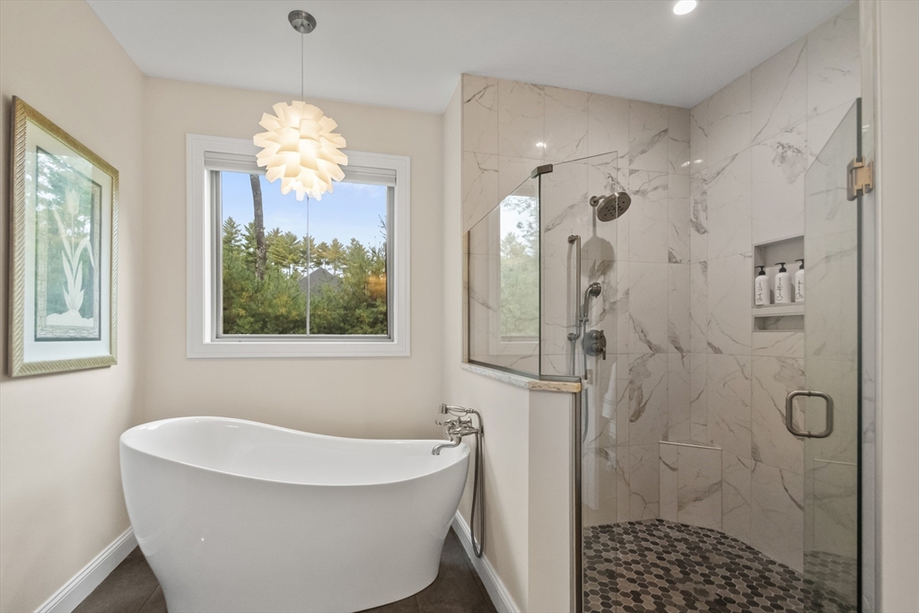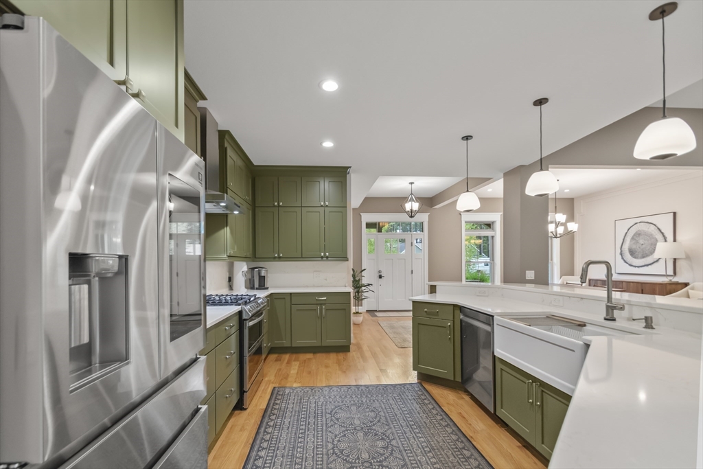This stunning modern ranch, built in 2021, blends sleek design with everyday comfort on nearly an acre of beautifully landscaped grounds. The open floor plan highlights soaring cathedral ceilings, hardwood floors, and a dramatic stone fireplace in the living room. A chef’s kitchen shines with quartz counters, a spacious island, upgraded cabinetry, and stainless steel appliances, opening seamlessly to the dining area and composite deck for easy entertaining. The serene main suite offers a spa-like bath with double vanity, soaking tub, and walk-in closet. Two additional bedrooms both with hardwoods complete the package! Enjoy the convenience of central air, a propane heating system, central vacuum, and a full basement. Outdoors, a screened porch, sprinkler system, and level yard complete the picture. With easy access to shopping, trails, and highways, this gorgeous home delivers modern living at its finest.