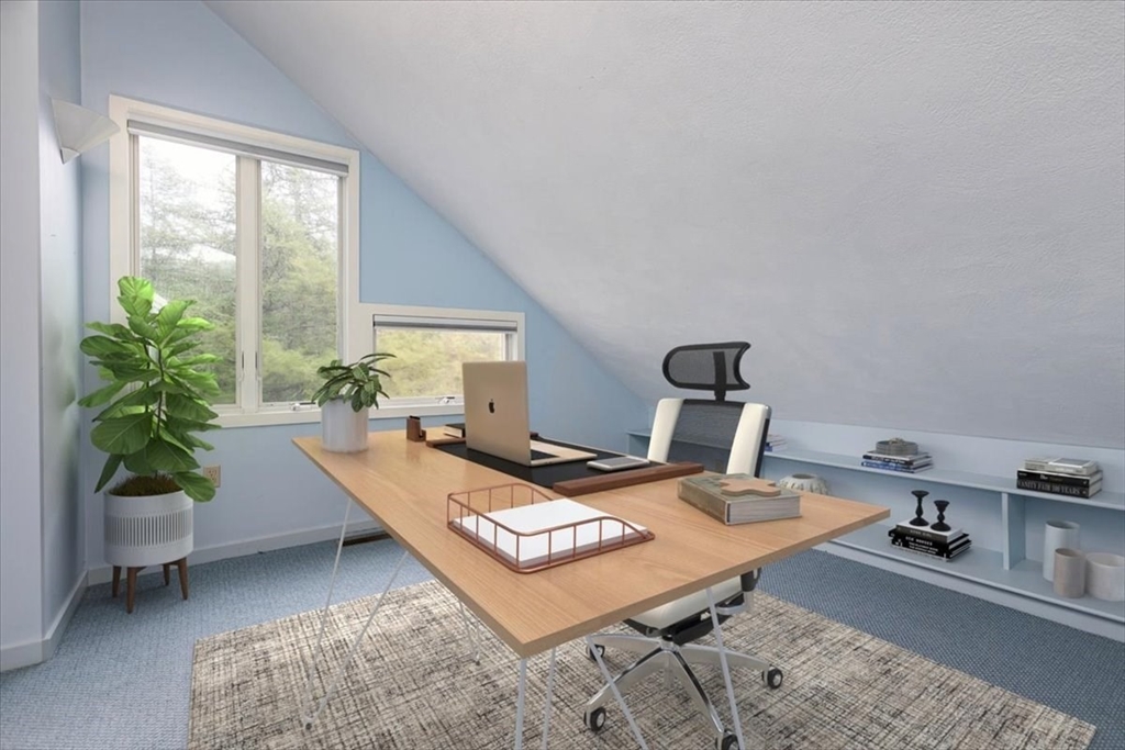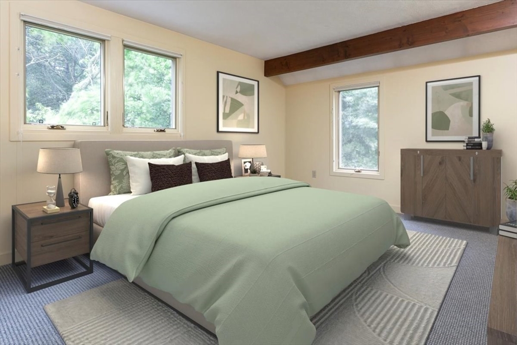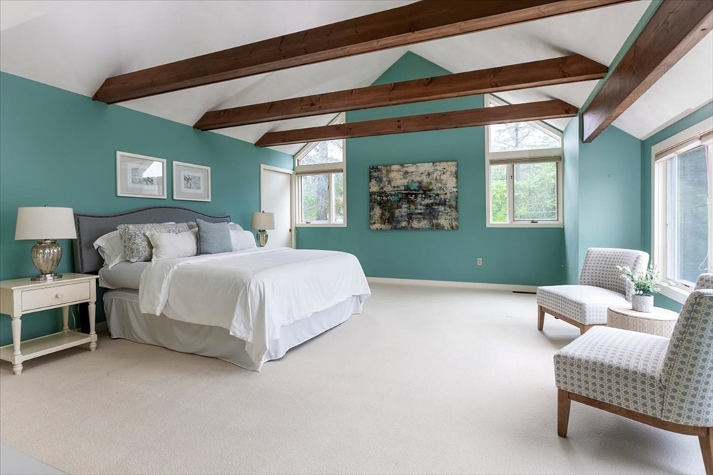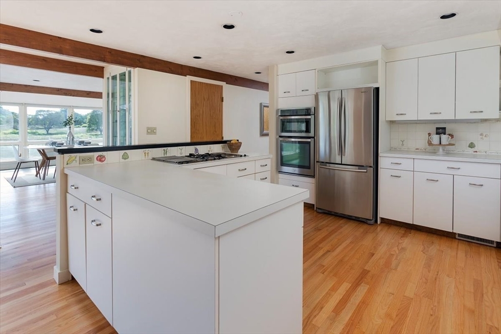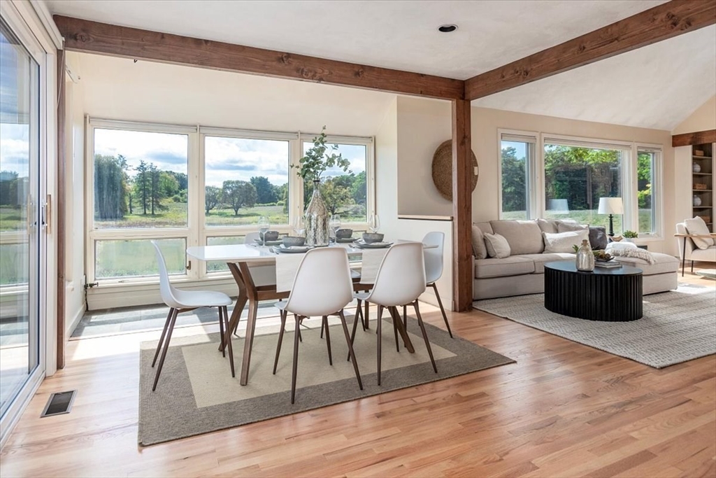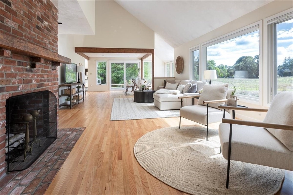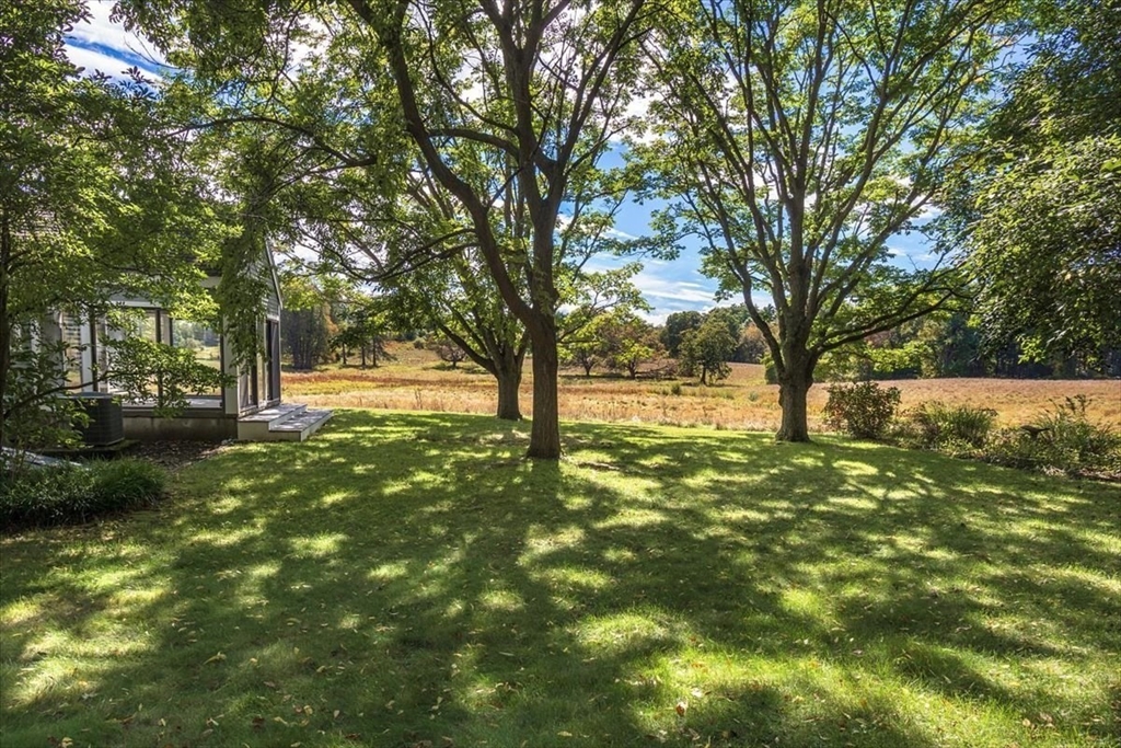 PRIVACY AND TRANQUILITY with BREATHTAKING 180 DEGREE MEADOW VIEWS. Your oasis, this house overlooks historic Larch Farm with stone walls, meadow and trees to the far distance. Open floor plan with well-maintained kitchen. Brick working fireplace with historic wooden mantle in LR, gas wood stove in the kitchen adds charm. Large primary BR very private with meadow view, bath with both tub & shower, large closets. First floor den/office could also be guestroom with bath nearby. Loft overlooking the living area makes a great home office. Excellent outdoor space includes three season screened porch, south-facing deck, nice landscaping. Dedicated laundry/mud room. Large dry basement ripe for expansion as playroom/media space. Two car garage with automatic door openers plus garden shed. Lovingly cared for by one owner.