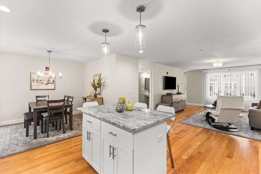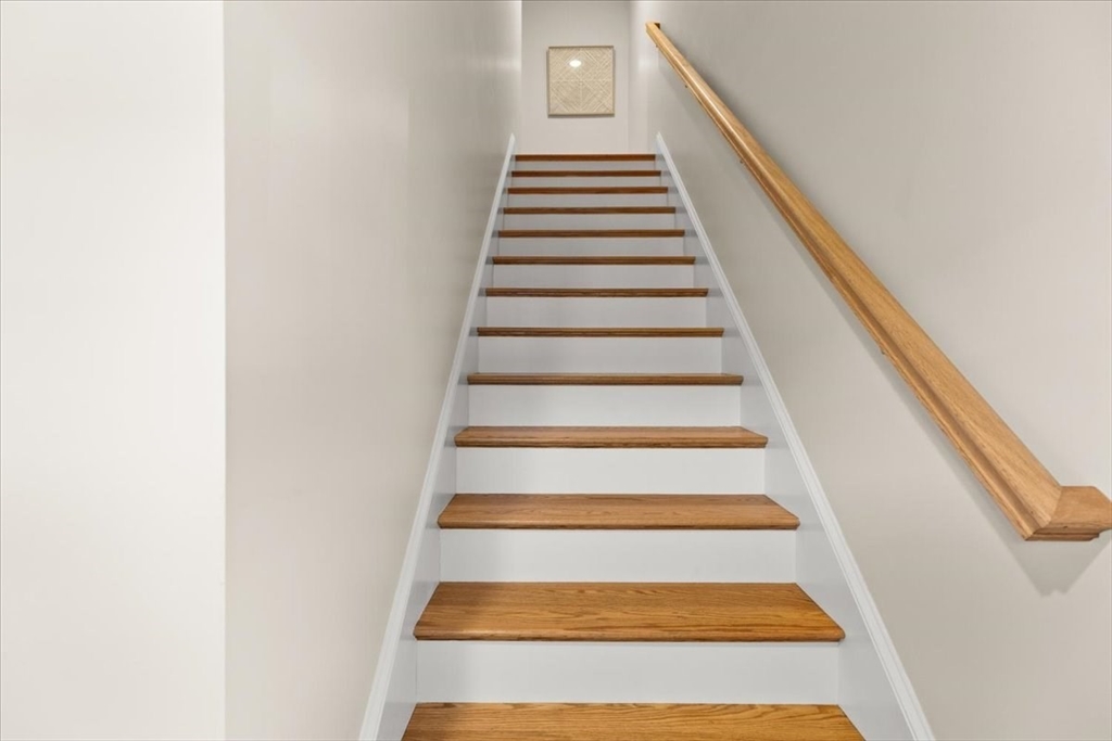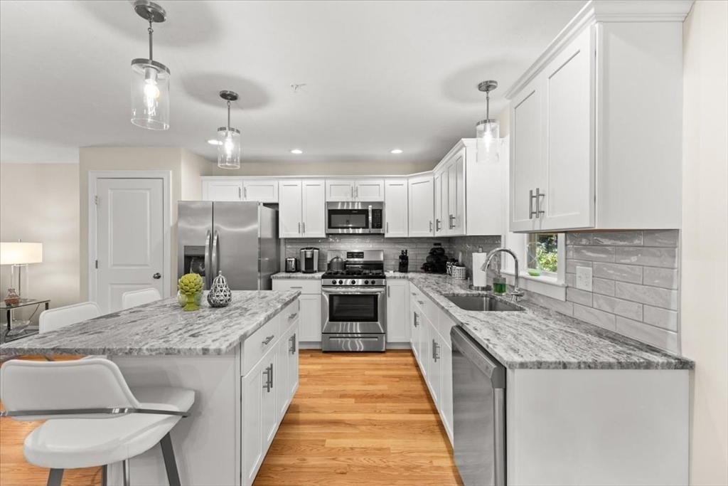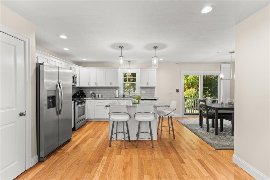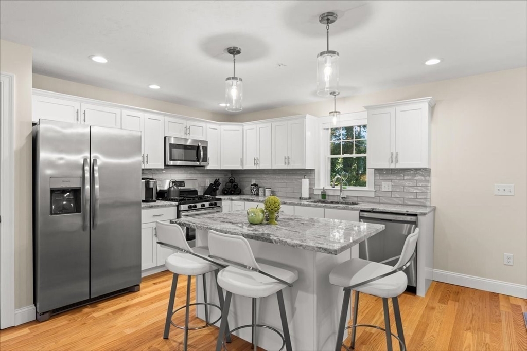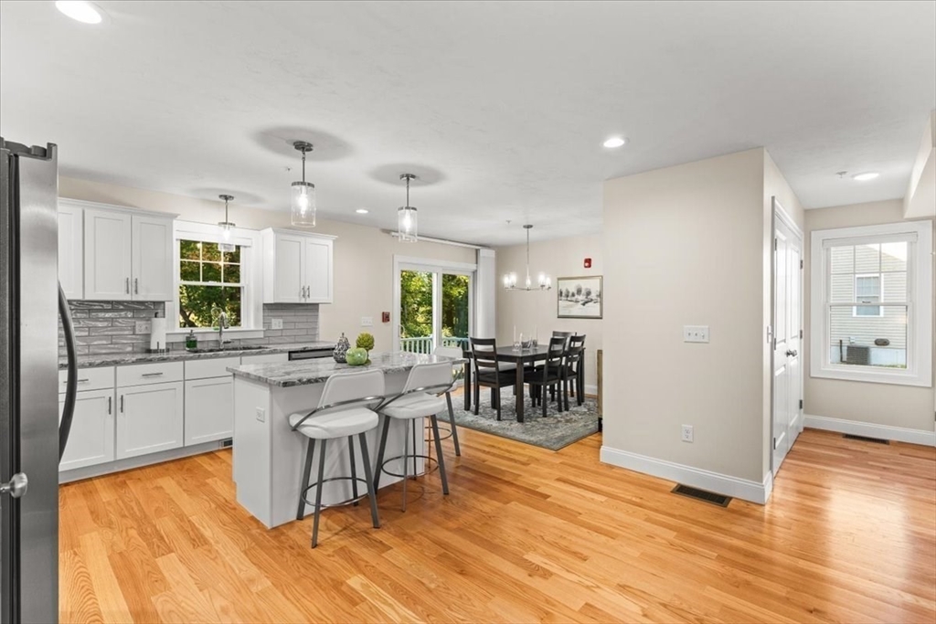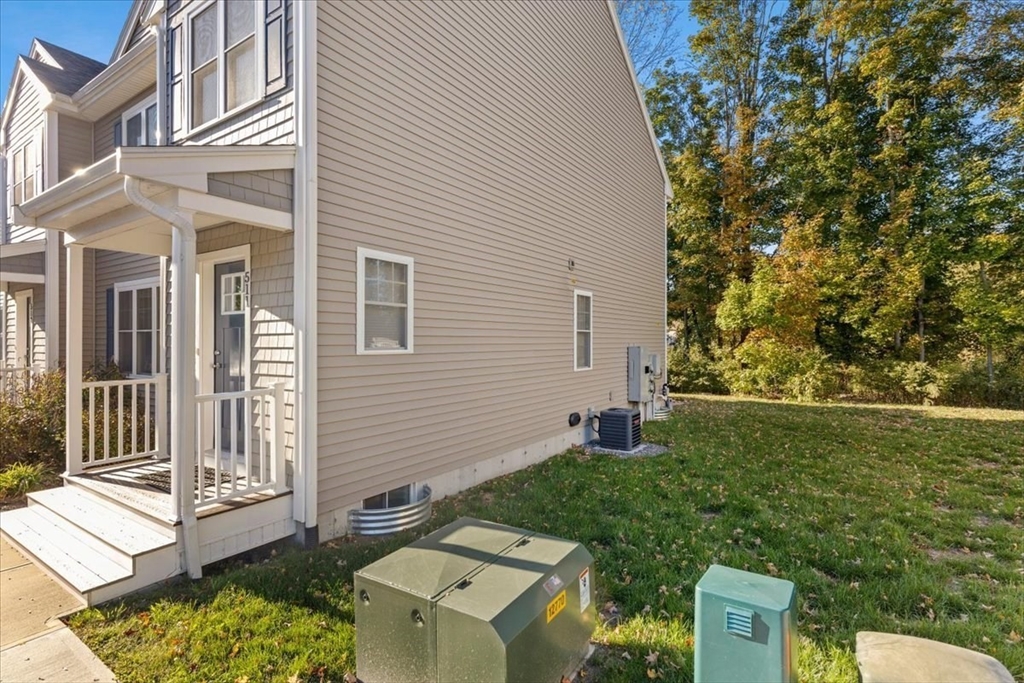 Welcome to END UNIT 511 at Westville Village, Taunton's premier luxury townhome community. The fantastic open-concept first floor features beautiful hardwood floors, a spacious living area, a gorgeous kitchen with stainless steel appliances, a large kitchen island, ceramic tile backsplash, and a slider from the dining room that leads to a patio overlooking conservation land. A half bath and laundry hook-up complete the first floor. The second floor has a primary suite with a cathedral ceiling, walk-in closet, and a private en suite bath, plus two additional bedrooms and a full bath. Additional features include public water/sewer, 2-zone energy-efficient natural gas heat/central air, and a 3rd zone set up in the unfinished basement for future expansion, along with 2 assigned parking spaces. Located near a conservation area and trails off Rt. 44, this complex is conveniently close to Providence. Don't miss this pristine end unit with quality finishes and low maintenance living.