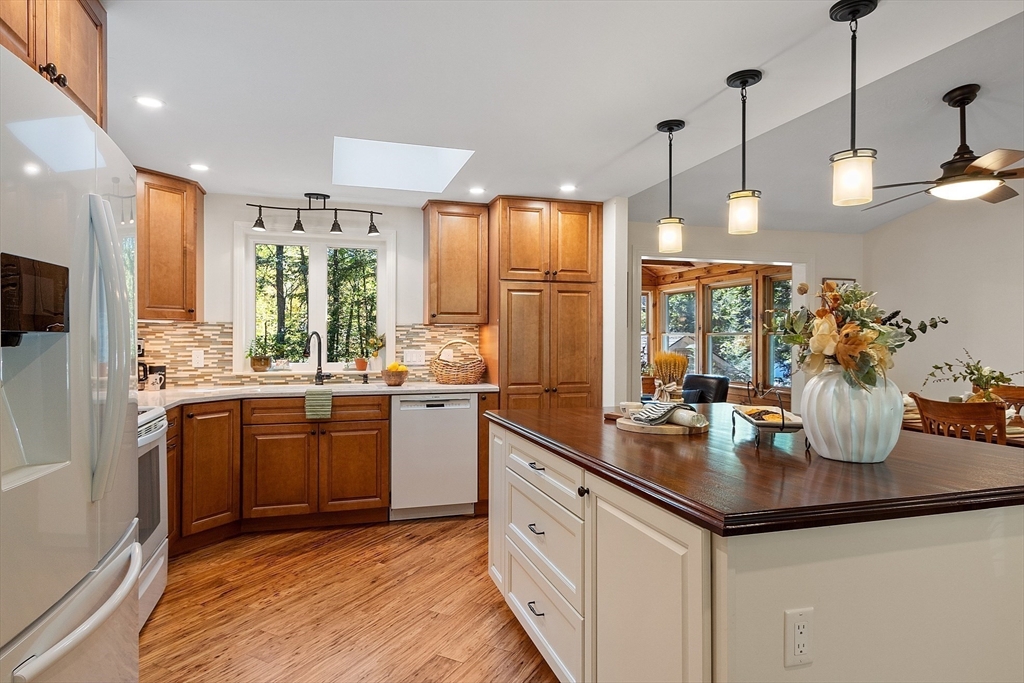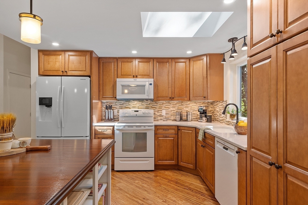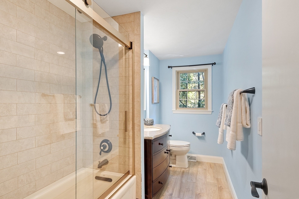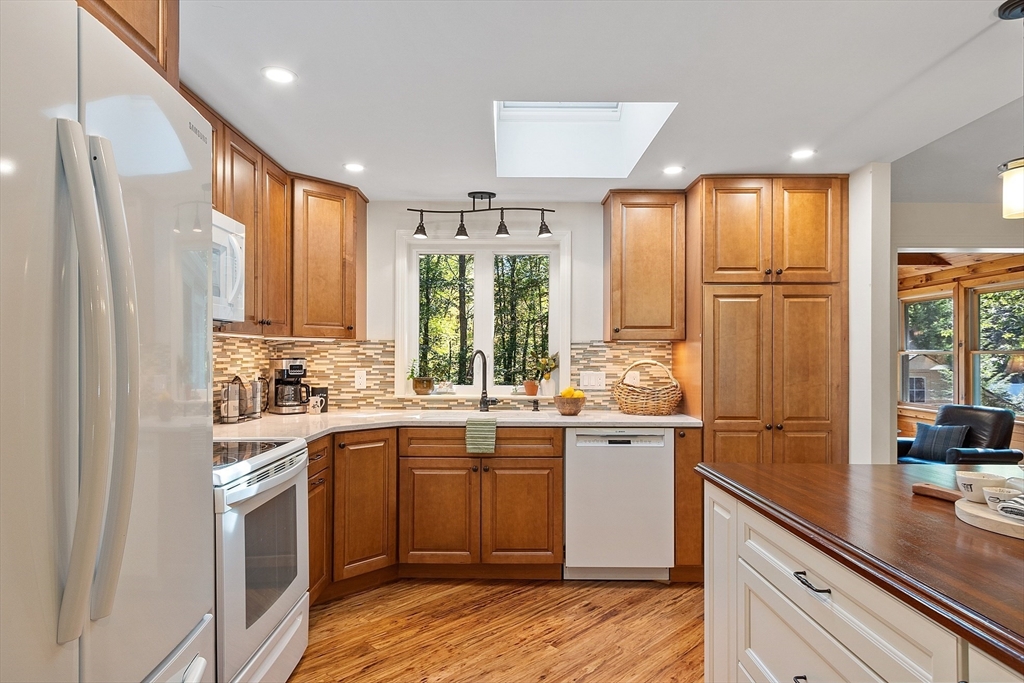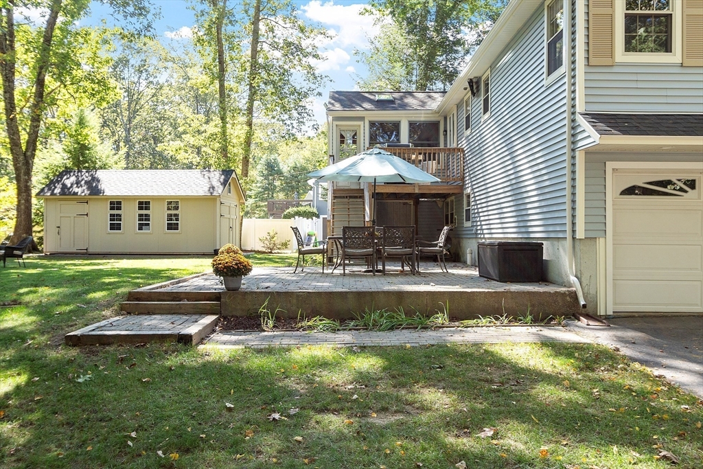 Beautifully updated split-level home in the sought-after Northborough Farms neighborhood, near conservation land and nearby trails. This 3-bedroom, 2.5-bath home features gleaming hardwood floors, a sunroom off the dining area, and a renovated kitchen with a stunning center island. Modern updates shine through the refreshed hall and primary baths. The finished lower level offers a spacious family room with new carpet and a cozy gas fireplace. Enjoy outdoor living on the deck and patio overlooking the .65-acre lot. Ample extra storage is provided by the large shed in the backyard. With a 2-car garage, quiet setting, and easy access to Routes 290 and 20, this move-in ready home combines comfort, style, and a prime location close to nature. Showings begin with open house on Saturday October 4th from 10:00am-12:00pm and Sunday October 5th from 11:30am-1:00pm.