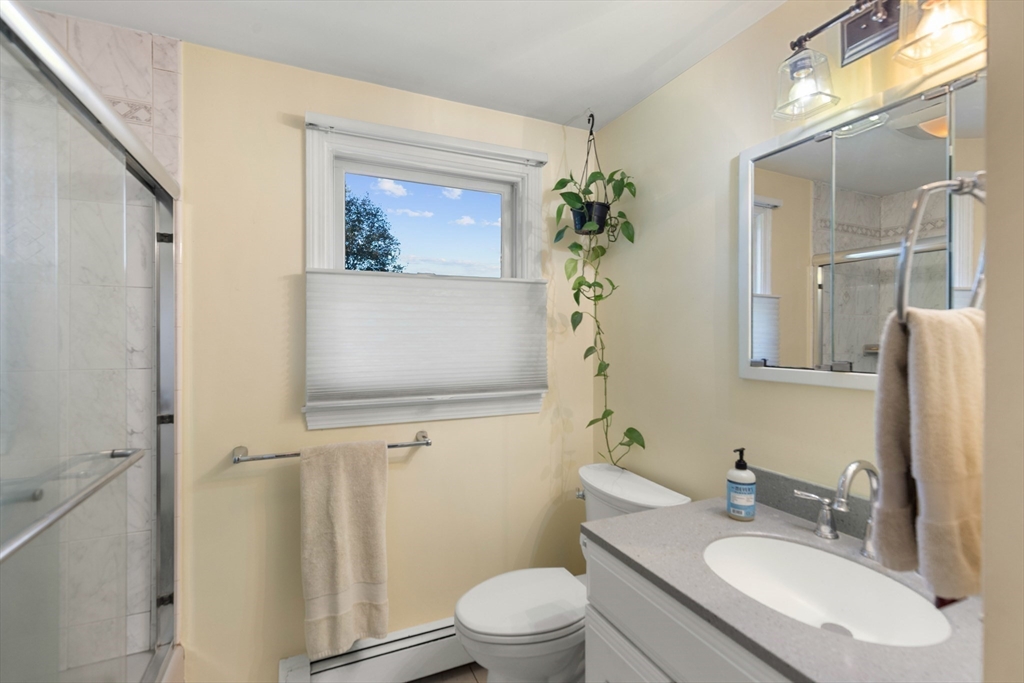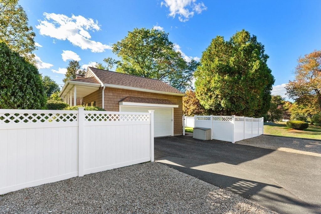 Discover the pride of home ownership in this meticulously maintained 2300 sq ft residence, offering 3 to 4 bedrooms. This turn-key gem is perfect for multi-generational living, featuring a newly renovated lower level with a flexible 4th bedroom or office, complete with a large closet, bathroom, living area with fireplace, and a separate laundry room.The main level boasts an open concept design with a living room illuminated by a bow window, 3 bedrooms, and a bathroom. The spacious and updated kitchen and dining area are ideal for daily living and entertaining.The home is packed with updates, including newer hardwood floors, central air, a new heating system, a newer roof, and low-maintenance cedar vinyl siding and more. Relax in the expansive family room on the lower level, adorned with a custom stone fireplace, perfect for cozy New England nights. Enjoy the serene fenced-in backyard and exquisite garden. The convenience of a 2-car garage with loads of storage completes the package.