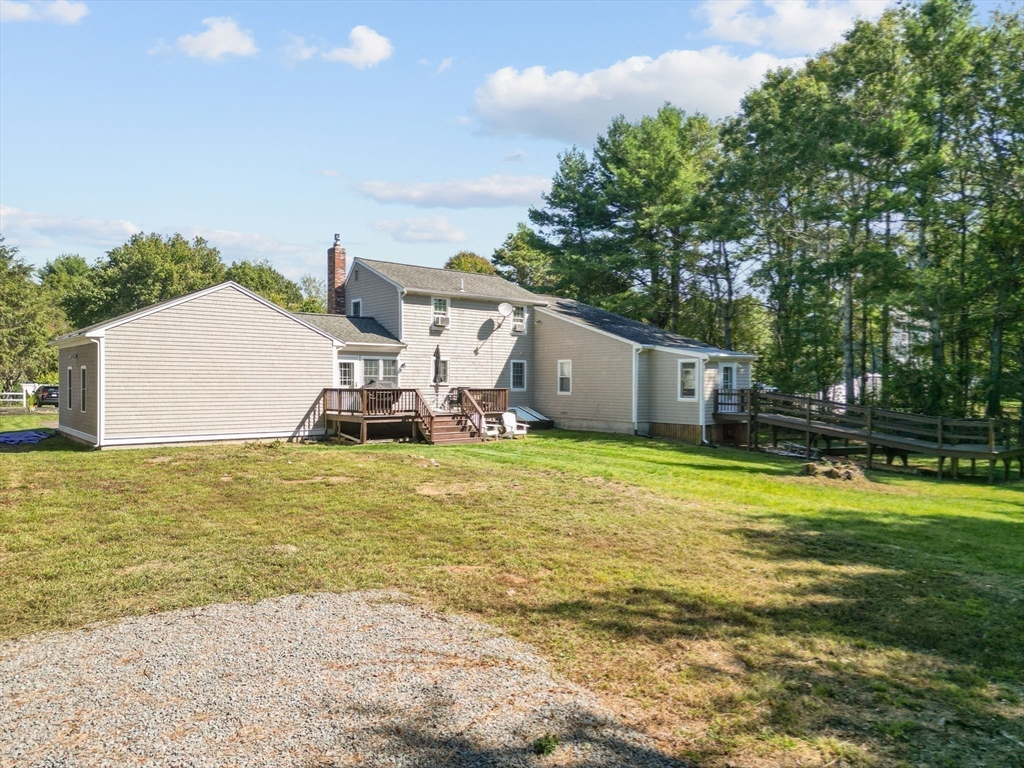 Nestled in South Plymouth, this Cape-style home offers comfort, space, & easy living on a beautiful half-acre lot. The inviting living room with a propane fireplace opens to a bright, updated kitchen & mudroom, leading out to a back deck overlooking the yard. The first-floor primary suite features a 3/4 bath & bonus room - perfect for a home office with private outdoor access. The versatile sitting room with a loft adds flexibility & separation from the rest of the home, while a recently renovated full bath completes the main level. Upstairs, are two spacious bedrooms with plenty of closet space. This home has 3 propane stoves to enhance heating efficiency, & thoughtful handicap accessible features add convenience. Outdoor living is easy with a covered porch, wood deck, & lush yard with an irrigation system. A 2-car garage, oversized driveway, & full basement with laundry complete the package. Close to highways, schools, & trails, this home truly captures the best of Plymouth living.