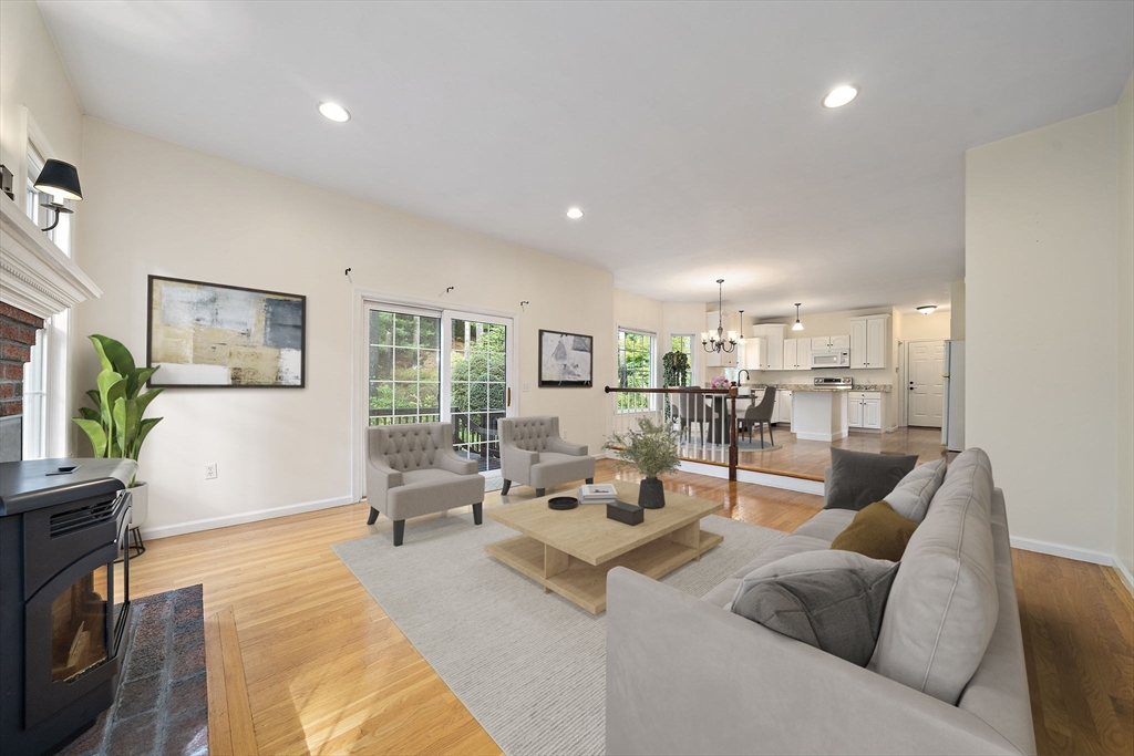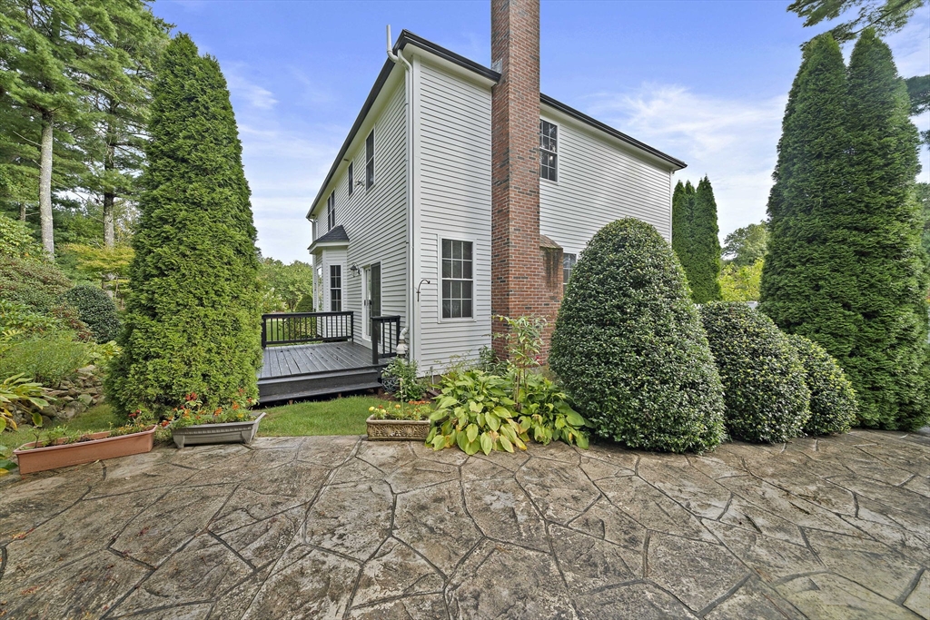 ...And the "Living is Easy"! Nestled into a quiet corner of Indian Pond Estates on a cul de sac this classic center entrance Colonial offers formal living and pure family fun space. The open floor plan invites the family lifestyle we all love! Fireplaced family room boasts a pellet stove that will warm your whole first floor space. Kitchen with newer appliances is open to the eating area and the family room. Gleaming hardwood floors!! The main bedroom has a separate adjoining room ~ perfect for nursery or office space.Step outside to a private world of perennial gardens, patio and deck ~ just perfect for outdoor entertaining. Irrigation system, new utility shed and a separate driveway for a trailer or boat! New roof in 2023! New hot water heater! Imagine the lifestyle! Join the Indian Pond CC and enjoy golf and even a pool club. Close to RT 3, the T station, Colony Place, restaurants, shops and downtown Plymouth. Easy to show! Open house this Saturday 1:00-3:00