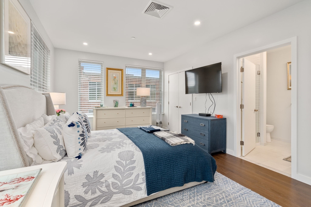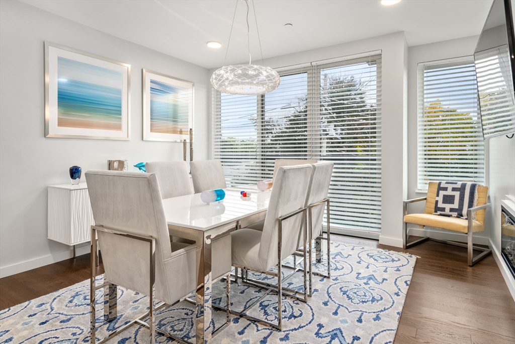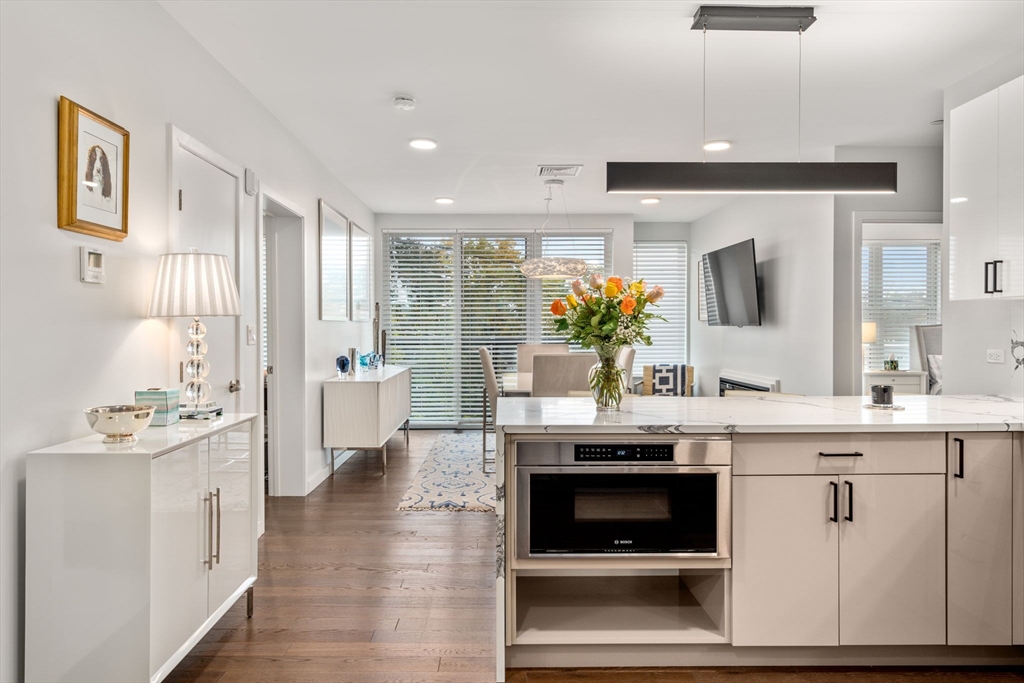 Welcome to this gorgeous penthouse corner unit in a young luxury condo building. The space encompasses 1,390 SF w/3 beds, 2 full baths, 2 heated garage parking spaces, & sleek hardwood flooring throughout. The open kitchen & living room provide great space for entertaining & maximum enjoyment. Full suite of Bosch appliances w/bright white Metropolitan cabinets & quartz countertops w/large peninsula. The floor to ceiling Pella windows & Juliette balcony allow for a bright & airy feel. The spacious primary bedroom includes 2 closets, custom sound barriers installed in the windows for noise prevention, as well as an en-suite bathroom w/double vanity. The 2nd bedroom has a custom walk-in closet & is currently set up as a family room, as the floorplan is versatile for many lifestyles. The 3rd bedroom is perfect for a guest bedroom or office/flex space. The second full bathroom features a double vanity & the laundry. Convenient Newton location close to shopping, restaurants & highway. access