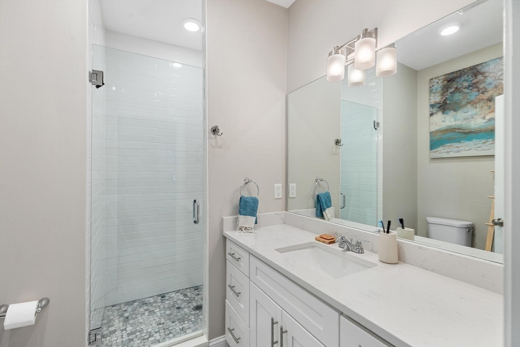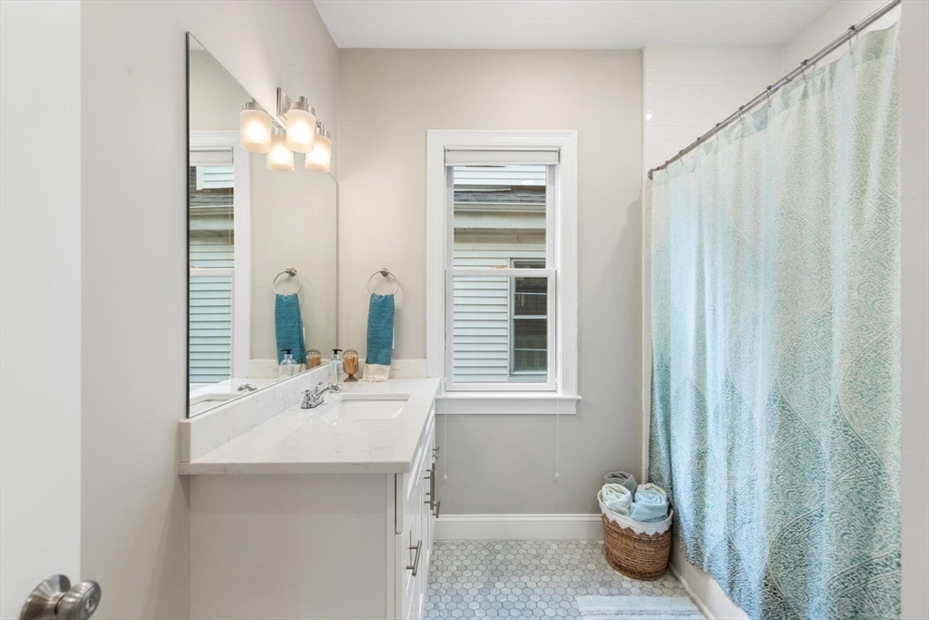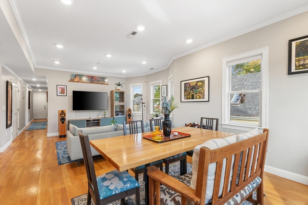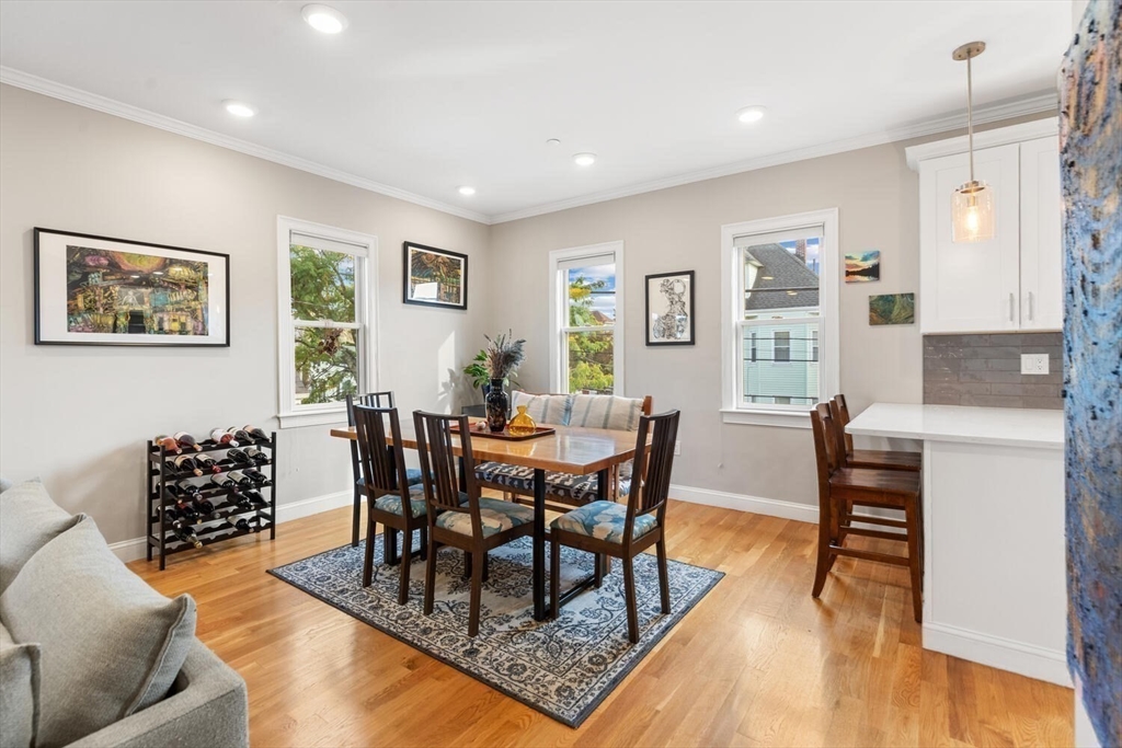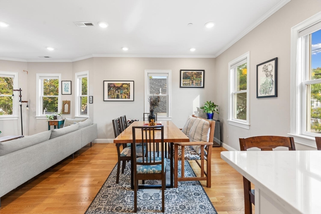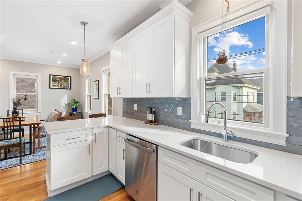 Stunning 3-bed, 2-full bath condo in prime Medford location, fully renovated to the studs in 2020! This thoughtfully designed home features a gorgeous kitchen with quartz countertops, tile backsplash, ample counter space, stainless steel appliances and a breakfast bar—perfect for entertaining. The open-concept layout flows from the sun-splashed, dining area into a spacious living room. The primary suite offers a walk-in closet and luxurious bath. Enjoy in-unit laundry, a mudroom-style back entry, exclusive outdoor space, deeded parking, and an oversized private storage room in the basement. Enjoy the close proximity to all the shops and restaurants in Medford Sq. AND Assembly Row. Having the T stations, highways, parks, and playgrounds so nearby makes this unit truly a rare find!