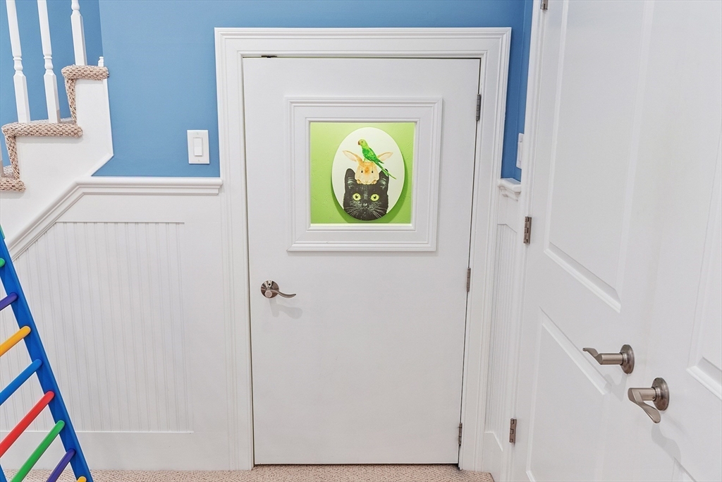This impressive “Churchill” end unit townhome offers easy, elegant & spacious living on one level with plenty of natural light and bespoke finishes. Main level features a two-story foyer, office, dining room, living room with gas fireplace, built-ins and cathedral ceiling, tranquil primary en-suite, chef’s kitchen with seating peninsula and adjacent room to be used as a sitting or breakfast room. A half bath and laundry room are also on the main level, and a slider leads to an exclusive deck overlooking a sea of trees w sunset views in winter. Two additional bedrooms, full bath and loft area are located on the second floor. The custom walk-out lower level includes a family room with a lovely patio just outside the slider, a bedroom and bonus spaces perfect as maker space, a personal gym or a study, and a full bath. A whimsical play closet is tucked under the staircase. Attached two-car garage access, C/A, gas cooking & heat. Close to conserv. land, shops, rest. and public trans.