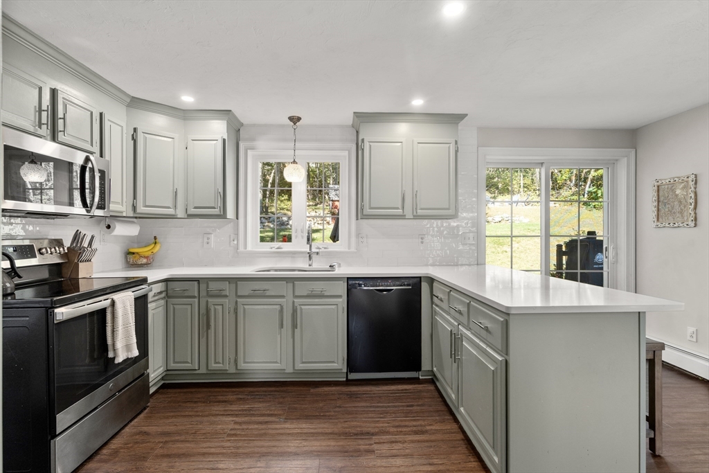 Welcome to the cutest cape on the block! This 1,598 sq ft home offers 3 bedrooms & 1.5 baths on a quiet ~0.39-acre lot in the quaint town of Rutland. The main level features gleaming hardwood floors, a spacious living room with fireplace, a sunlit dining room, & a beautifully renovated kitchen with updated appliances (2021). A half bath with first-floor laundry adds convenience. Upstairs, 3 comfortable bedrooms share a full bath. The finished lower level provides flexible space for a family room, office, or playroom. Updates include newer windows, roof, sliding doors, & deck improvements. Outside, enjoy a private backyard with shed. Rutland, the “Geographical Center of Massachusetts,” is a charming small town that perfectly balances country living with convenience. Commuters appreciate the easy access to Worcester & beyond. Hickory Drive is known for its fun, lively neighborhood vibe-quiet streets, friendly families, & a true sense of community that makes it easy to feel at home.