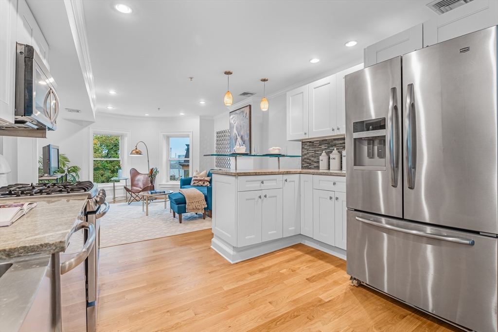 Stunning penthouse duplex features 1 bedroom plus SECOND OFFICE/BONUS SPACE with sweeping skyline and harbor views. The spacious living area is anchored by a graceful front bay window framing both water and city vistas, seamlessly flowing into an eat-in kitchen with granite countertops, floating glass bar, stainless steel appliances, and abundant cabinetry. Step outside to a private rear deck—perfect for al fresco dining or evening sunsets. Upstairs, the top-floor primary suite impresses with soaring ceilings & expansive closet space. The en-suite bath is a serene retreat with elegant fixtures and timeless design, with commanding panoramic views of its own. Modern comforts include central A/C, in-unit W/D, gas cooking, and exceptional storage throughout. With a prime location in East Boston’s picturesque Eagle Hill, just minutes from downtown Boston, Logan Airport, and neighborhood parks, this residence blends style, convenience, and city access in one extraordinary package.