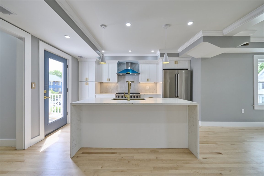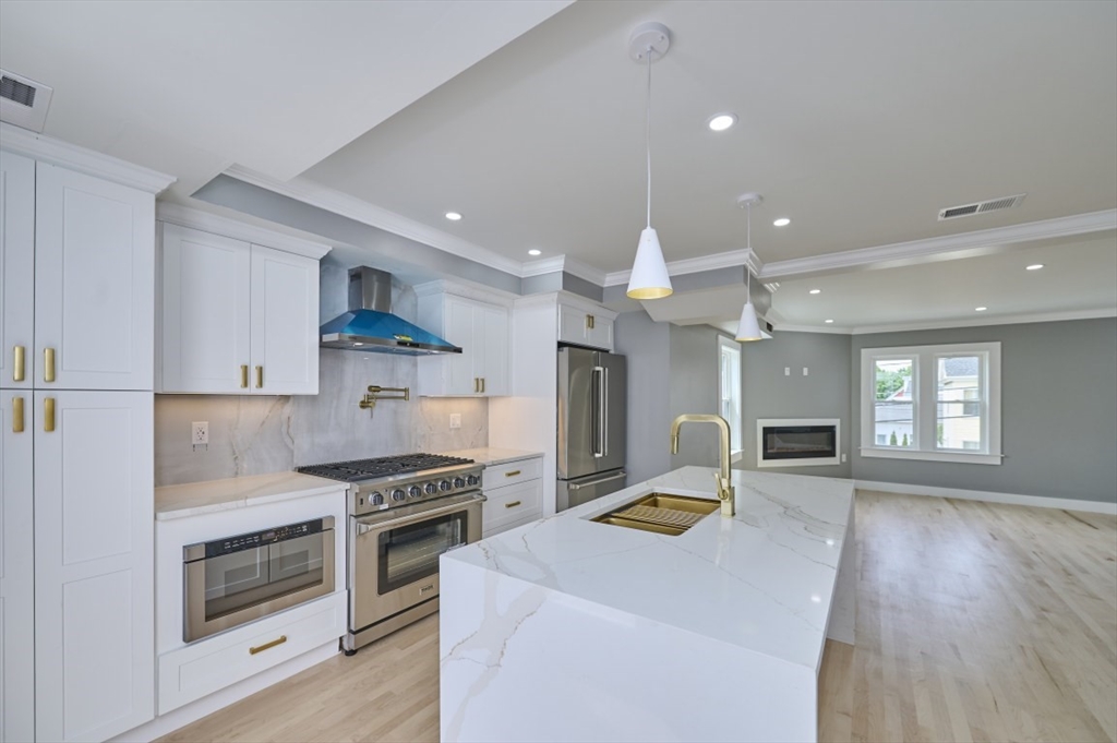 Welcome to 97 Oakton Avenue! Located in one of the top neighborhoods in the City of Boston. This property is situated right between Adams Village and Neponset Ave. with all the restaurants, shops and parks just a stroll away. Step into this newly renovated property, open living concept with a touch of modern detail. This unit consists of 3beds / 2 full baths, 2 deeded parking spots w an extra spot avail for purchase, 2 exclusive decks w private area of grass. All utilities are in the unit, 2 zones for HVAC, tankless WH, Laundry hookup, Extra closet/storage throughout the 2 levels of living. The Kitchen boosts quartz waterfall counters w a gold design that matches throughout. Brand-new Pro Thor appliance package w a chef style, 36" Stove, gold pot filler, HDMI outlets throughout, HUGE 23x18 primary bedroom w an enormous walk-in closet, Double vanity, Bidet pro toilet, Double LED mirror, Wine bar area just as you step out onto your private roof deck...