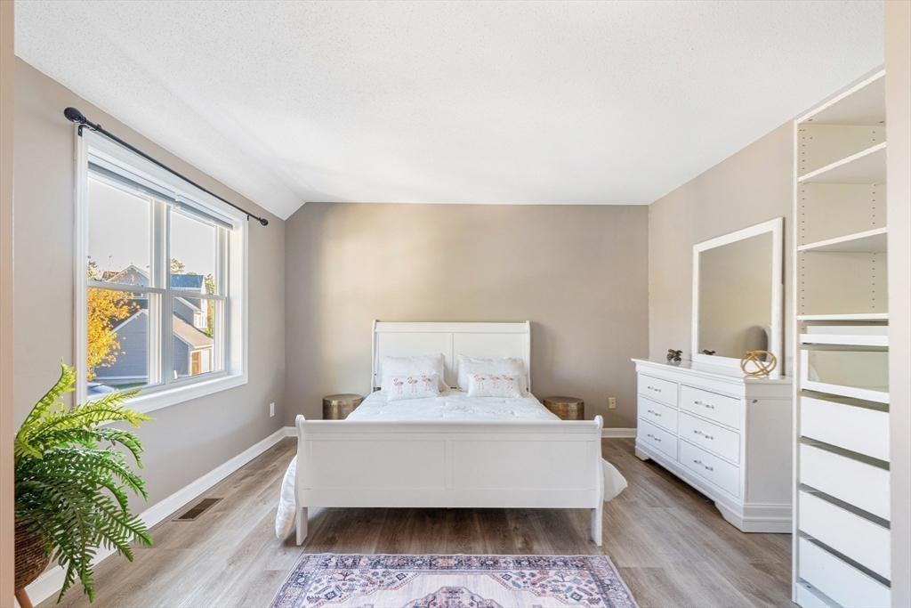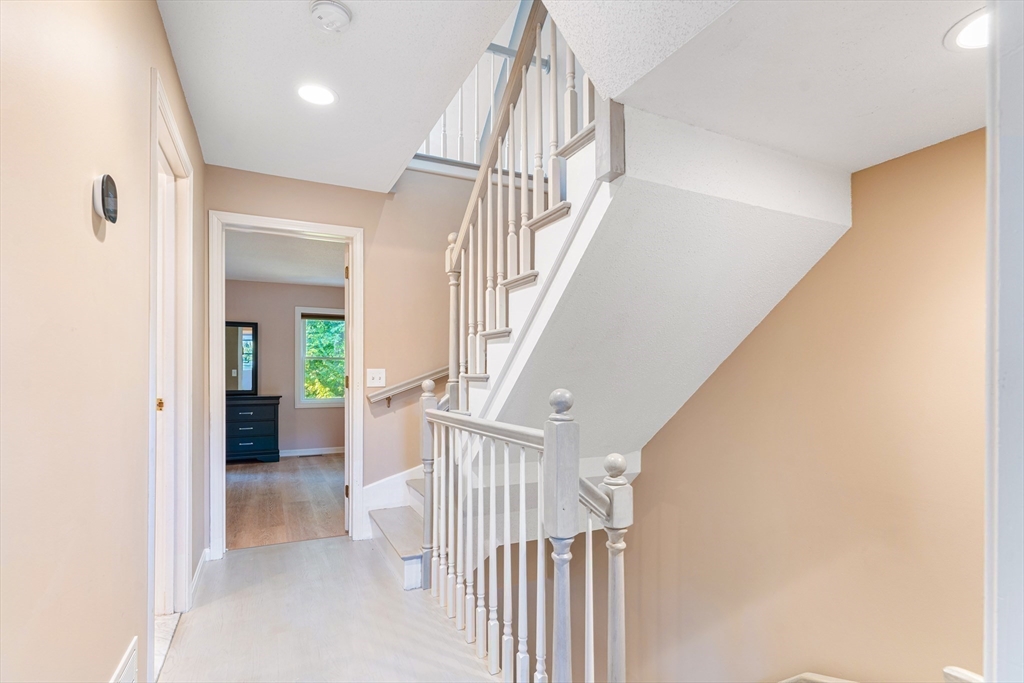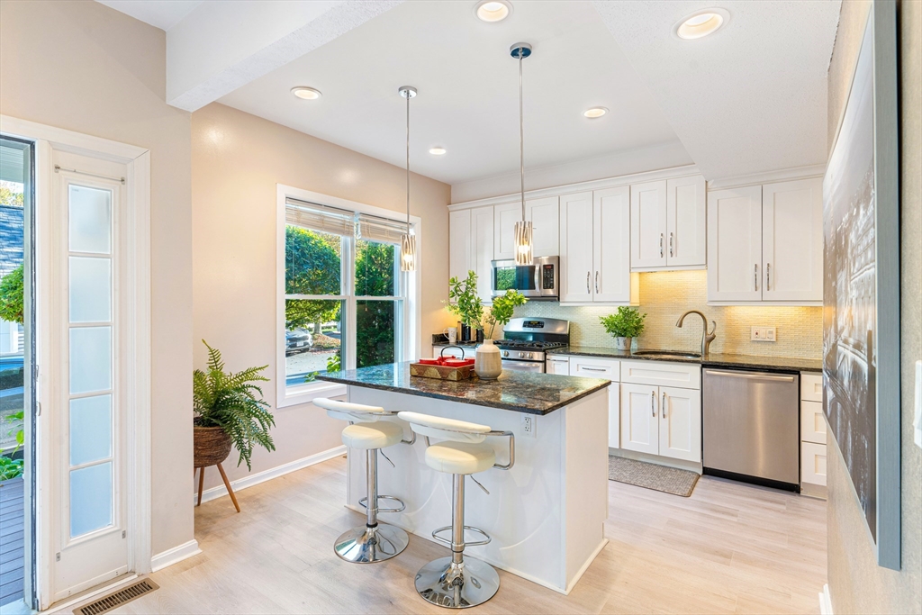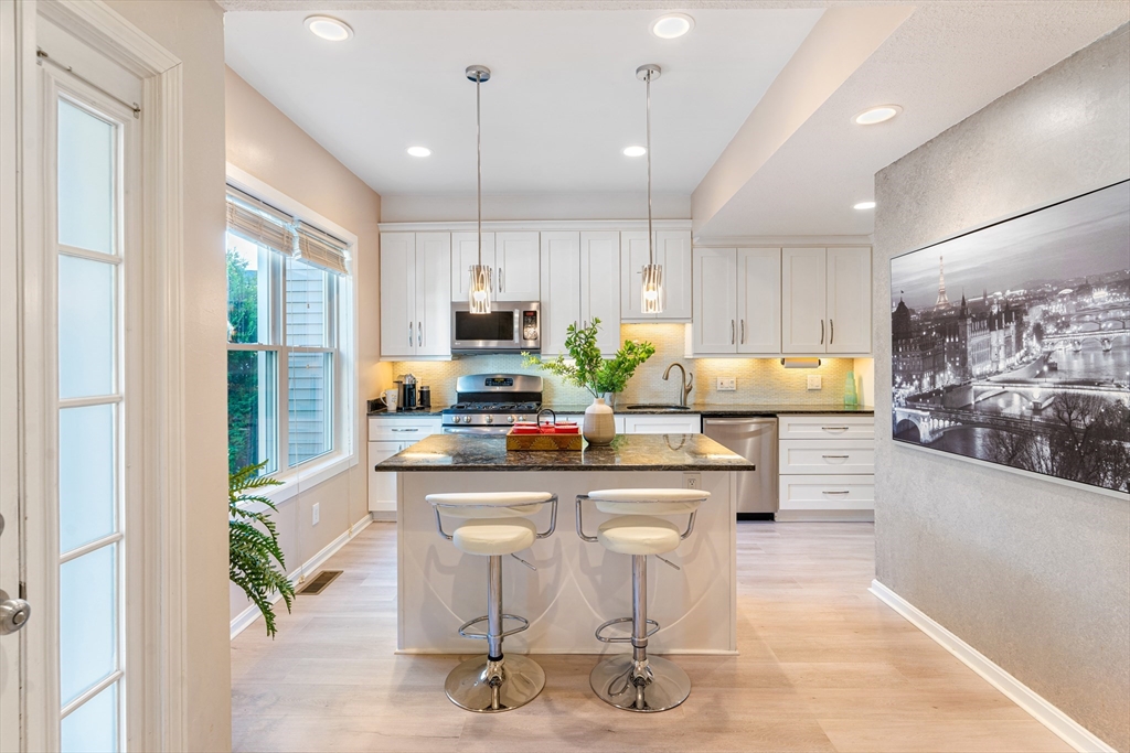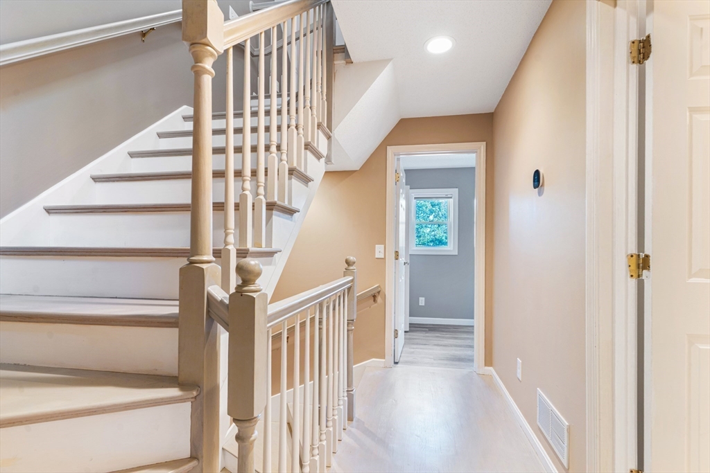 Fall in love with this stunning townhouse in Burlington's coveted Maple Ridge Village community. This pristine 3-bedroom 2.5 bath home has an open-concept living and dining area featuring gleaming wood floors, high ceilings, lots of natural light & a beautiful fireplace. The stylish kitchen with high end cabinets, countertops, island, SS appliances and a pantry. The upstairs features two spacious bedrooms with large walk-in wardrobes with built cabinets and a luxurious bathroom. Very Sophisticated color palette, lights and fixtures with tons of storage at all levels, fully finished walkout basement serves as a versatile family room, guest suite with a full bathroom. The huge fully finished high-vaulted ceiling attic presents an opportunity for an extra bedroom. Enjoy your Tranquil private deck with pond & wooded views, perfect for relaxing & entertaining. Additional features include two parking spots including one garage, Close proximity to shopping, malls, cafes, schools & highways!