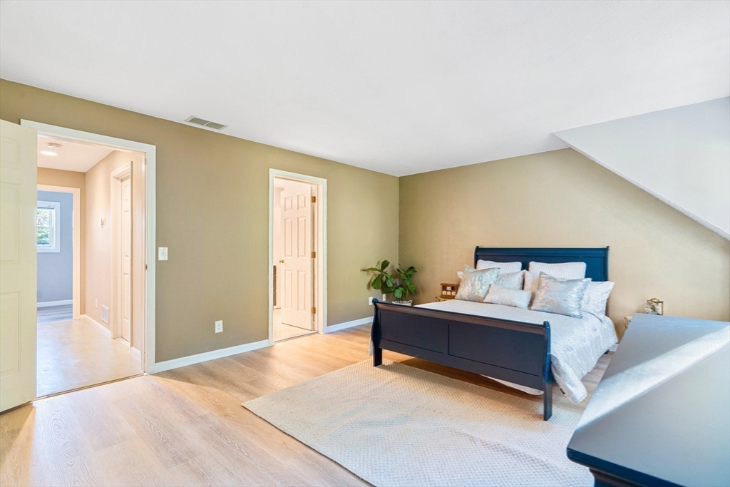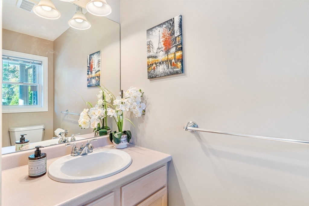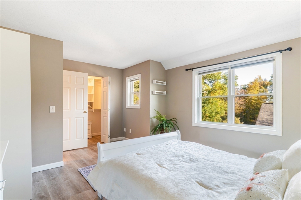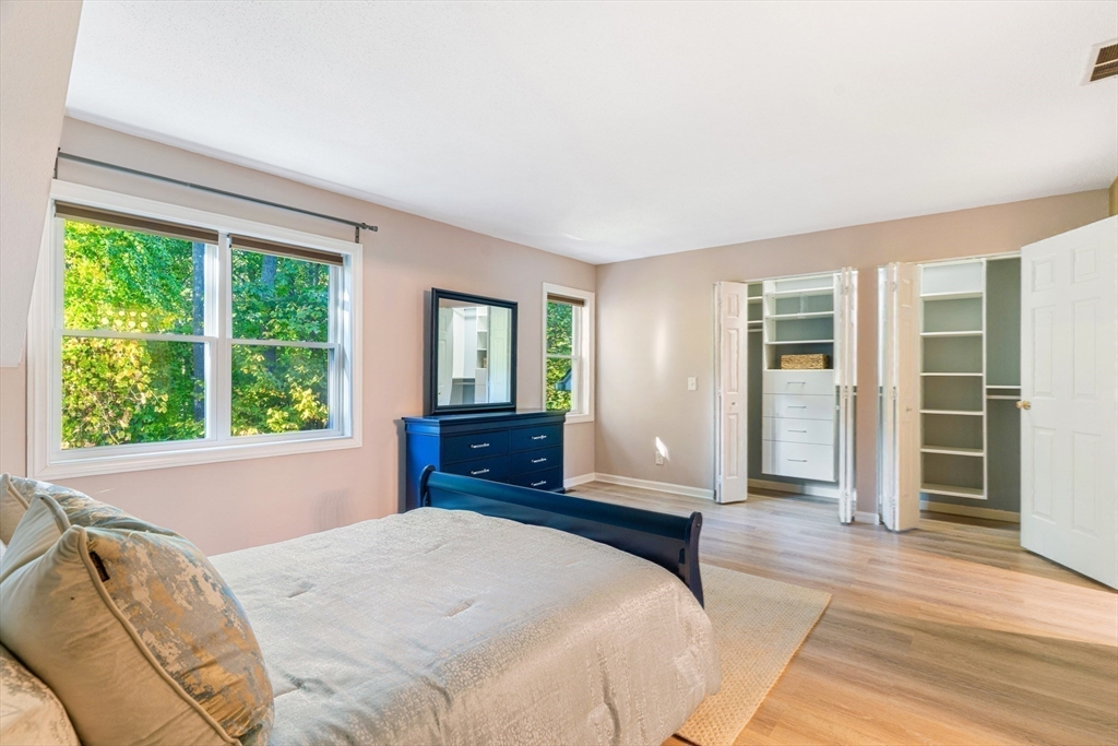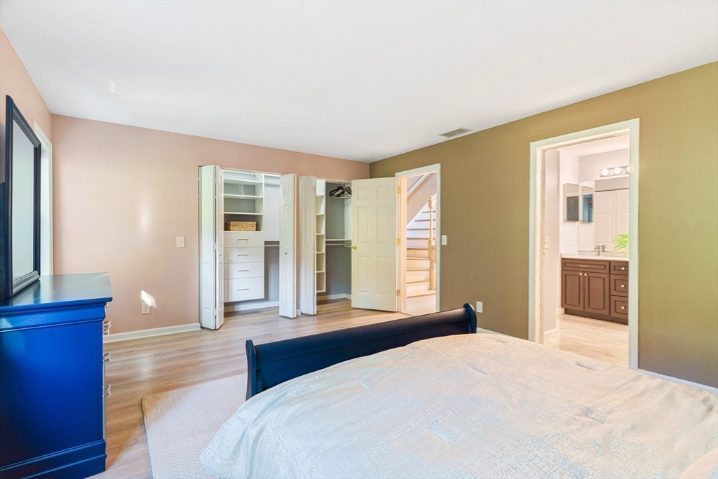 Fall in love with this stunning townhouse in Burlington's coveted Maple Ridge Village community. This pristine 3-bedroom 2.5 bath home has an open-concept living and dining area featuring gleaming wood floors, high ceilings, lots of natural light & a beautiful fireplace. The stylish kitchen with high end cabinets, countertops, island, SS appliances and a pantry. The upstairs features two spacious bedrooms with large walk-in wardrobes with built cabinets and a luxurious bathroom. Very Sophisticated color palette, lights and fixtures with tons of storage at all levels, fully finished walkout basement serves as a versatile family room, guest suite with a full bathroom. The huge fully finished high-vaulted ceiling attic presents an opportunity for an extra bedroom. Enjoy your Tranquil private deck with pond & wooded views, perfect for relaxing & entertaining. Additional features include two parking spots including one garage, Close proximity to shopping, malls, cafes, schools & highways!